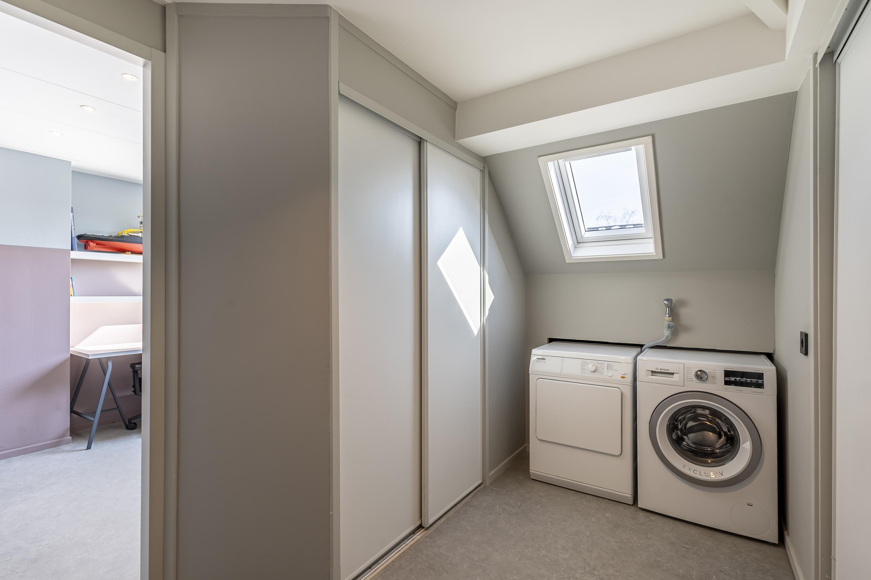De 2e verdieping is praktisch ingedeeld. Naast de royale 4e slaapkamer is er veel bergruimte en plaats voor de opstelling van het witgoed. In een kast met schuifdeuren is de cv-ketel geplaatst.