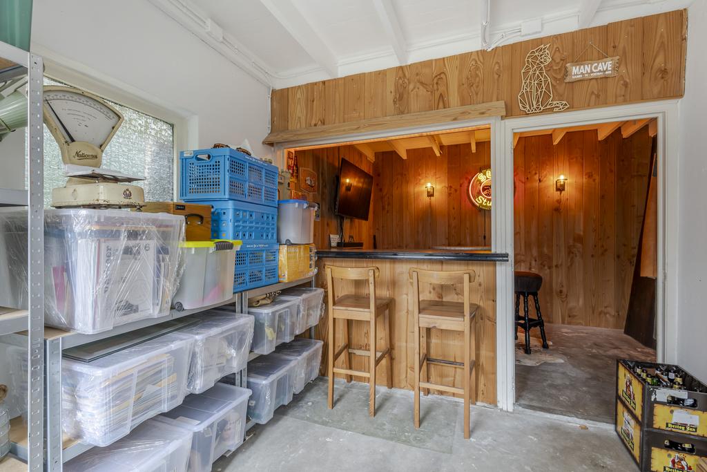 Wat deze woning écht uniek maakt, is de grote stenen schuur/garage achter de woning. Hier vindt u een praktische bijkeuken, een stoere mancave en volop bergruimte. Een perfecte plek voor hobby’s, ontspanning of opslag.
