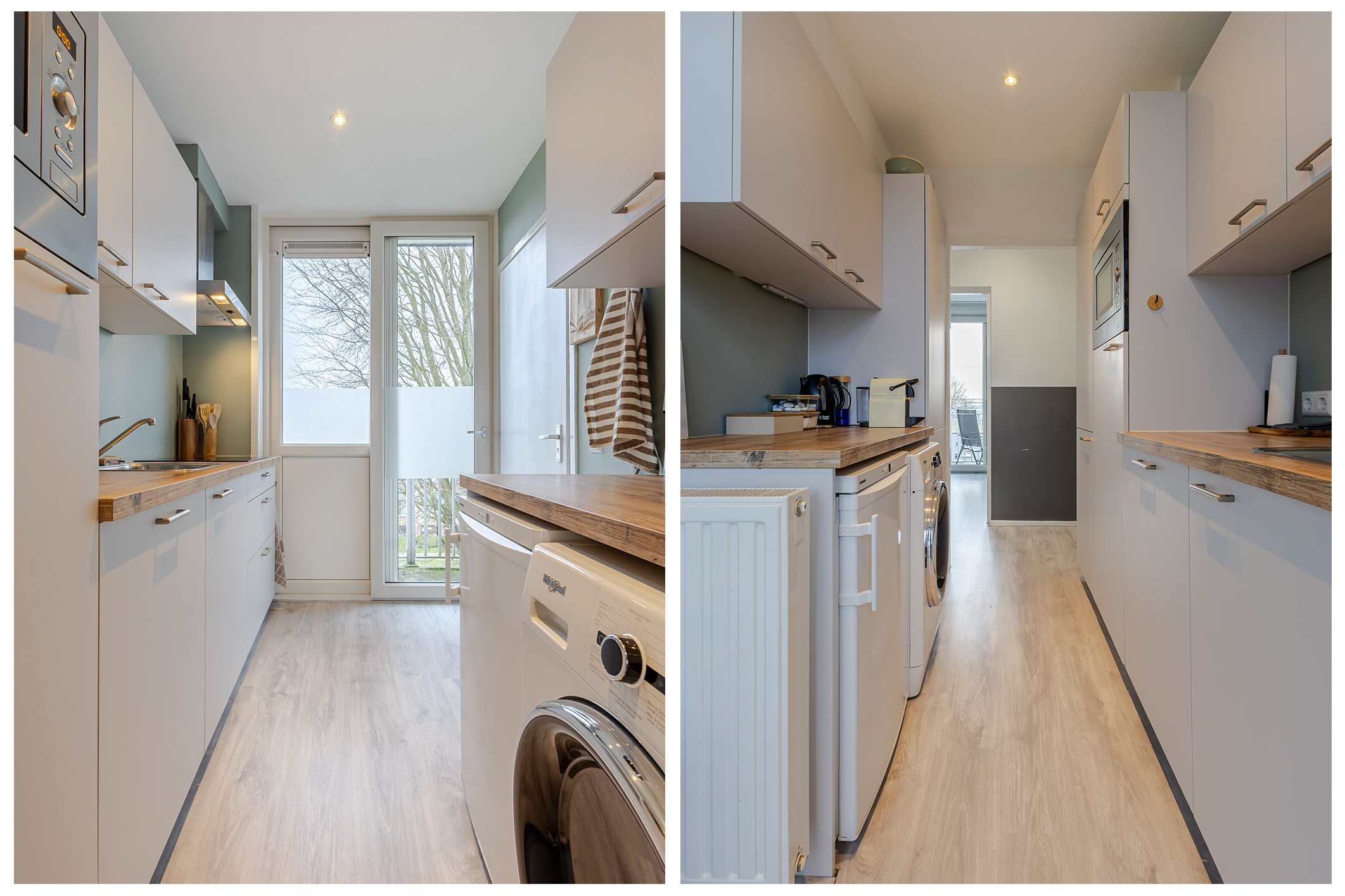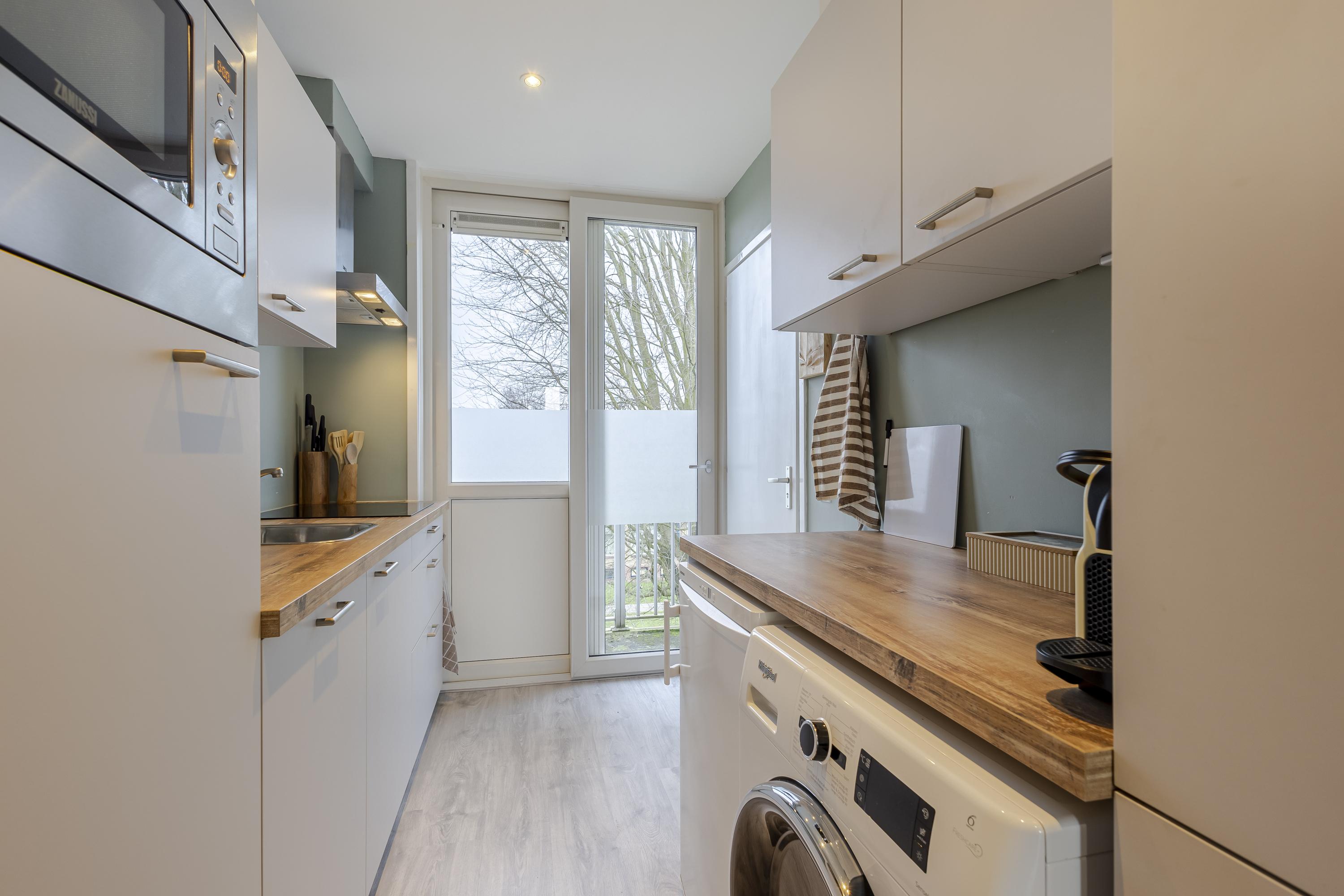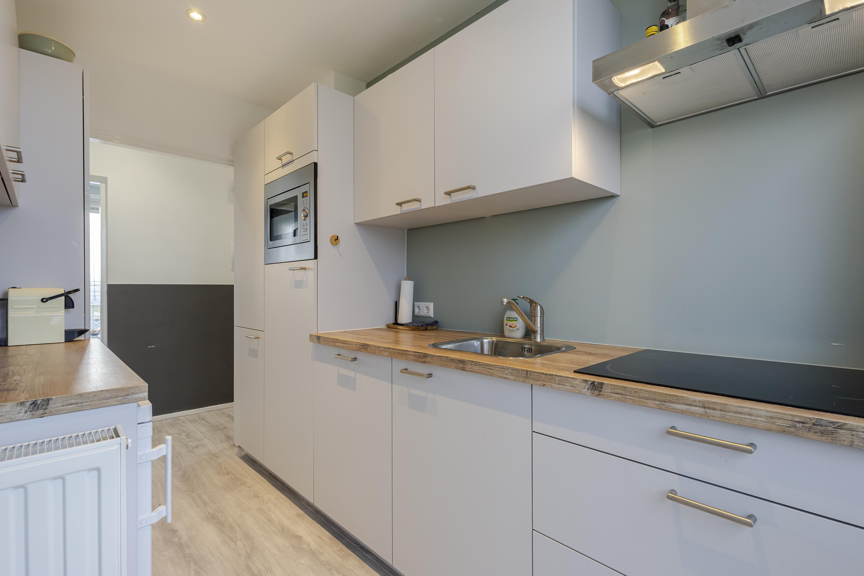 Het appartement beschikt over twee slaapkamers, waarvan één met directe toegang tot het balkon aan de voorzijde. De tweede slaapkamer is ideaal als werk-, logeer- of hobbykamer. De woonkamer heeft door de grote raampartij vrij uitzicht richting het zuiden. De keuken is enkele jaren geleden vernieuwd, voorzien van alle inbouwapparatuur en biedt toegang tot het balkon aan de achterzijde gelegen op het zuiden — een heerlijke plek om even buiten te zitten in het zonnetje.