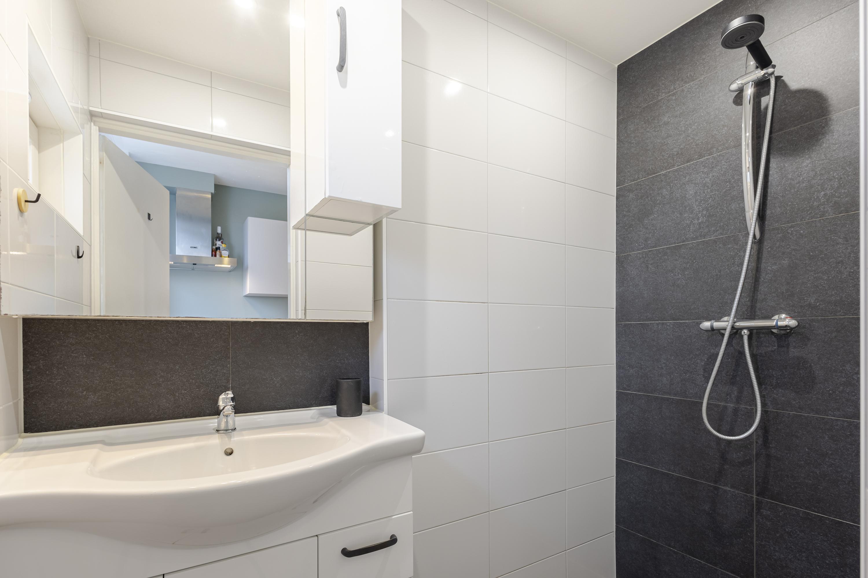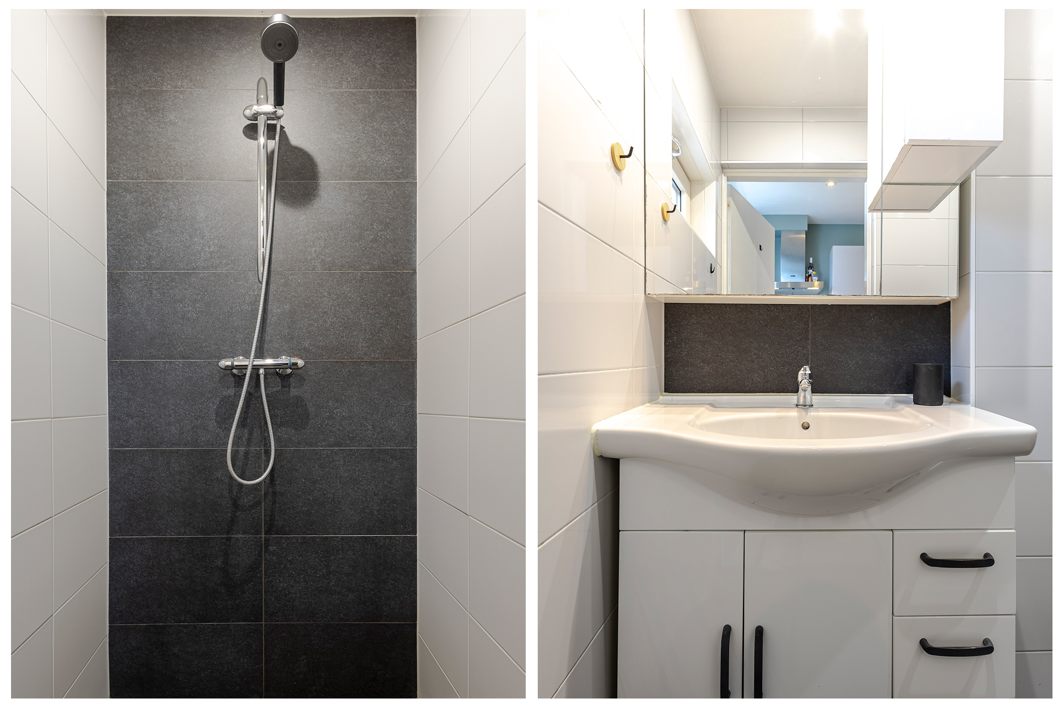De badkamer is praktisch en netjes ingericht met een douche en wastafelmeubel. Daarnaast is er een ruime berging onder in het appartementengebouw aanwezig, ideaal voor het stallen van fietsen en het opbergen van extra spullen. Dankzij de kunststof kozijnen is het onderhoud minimaal, wat dit appartement extra aantrekkelijk maakt.