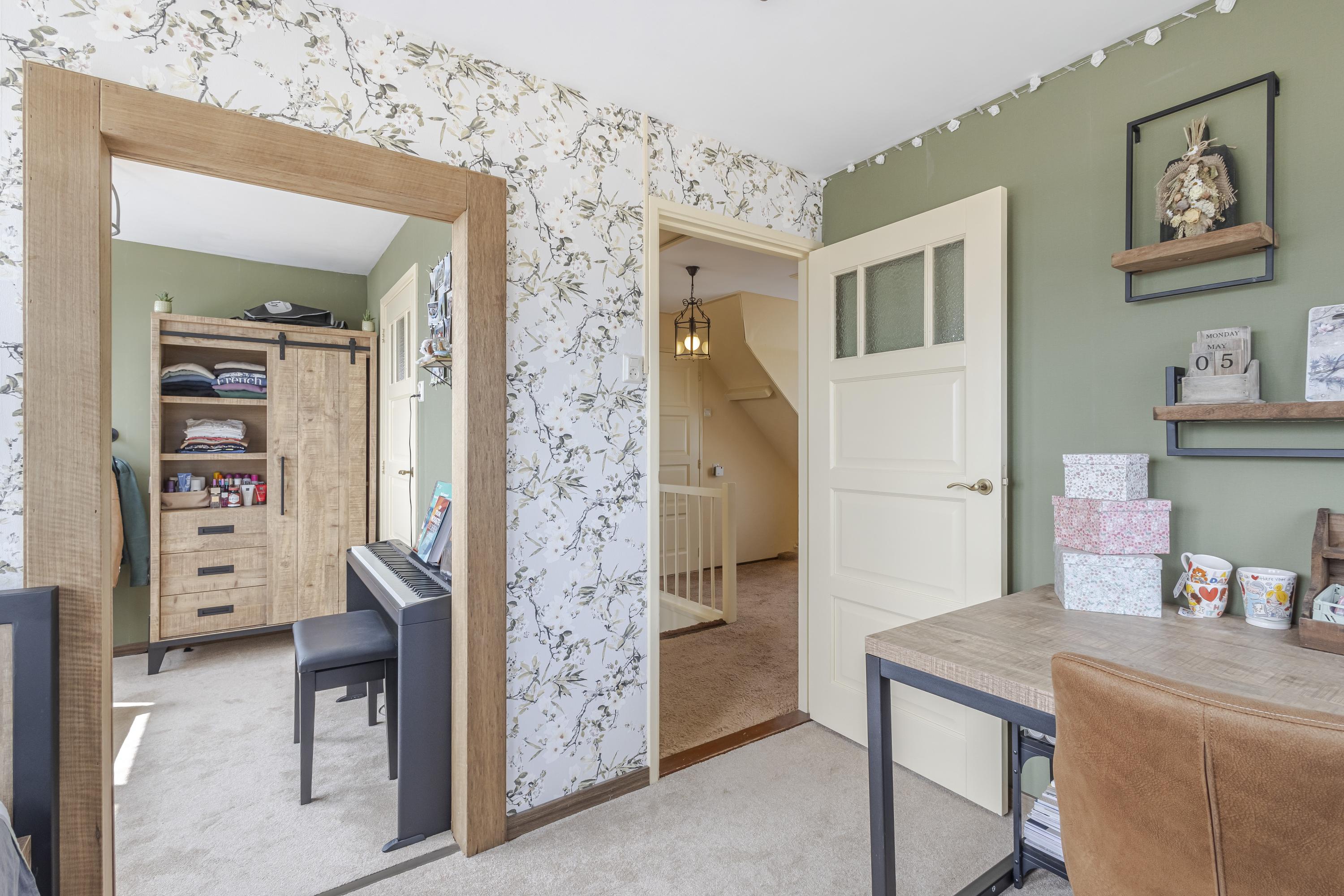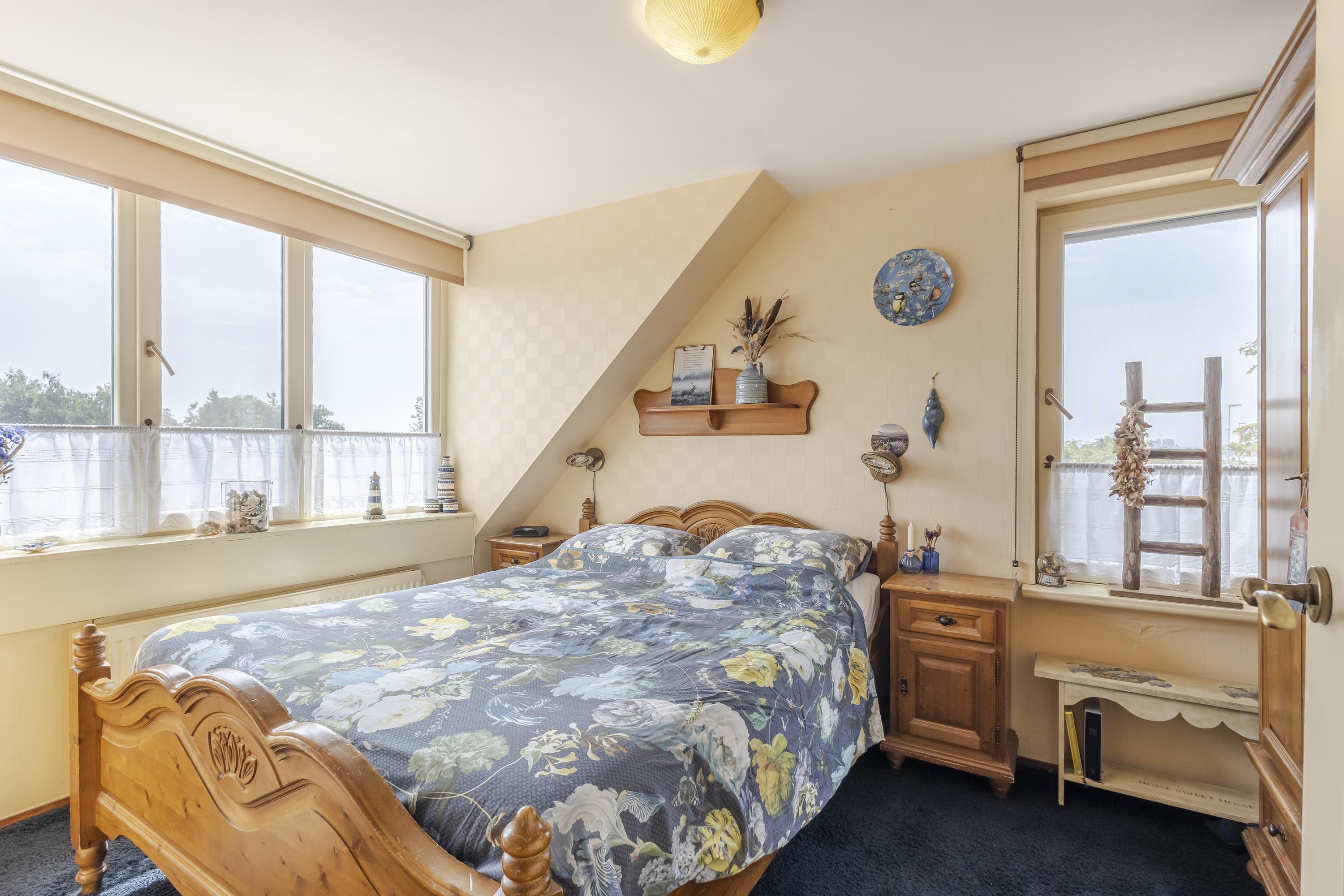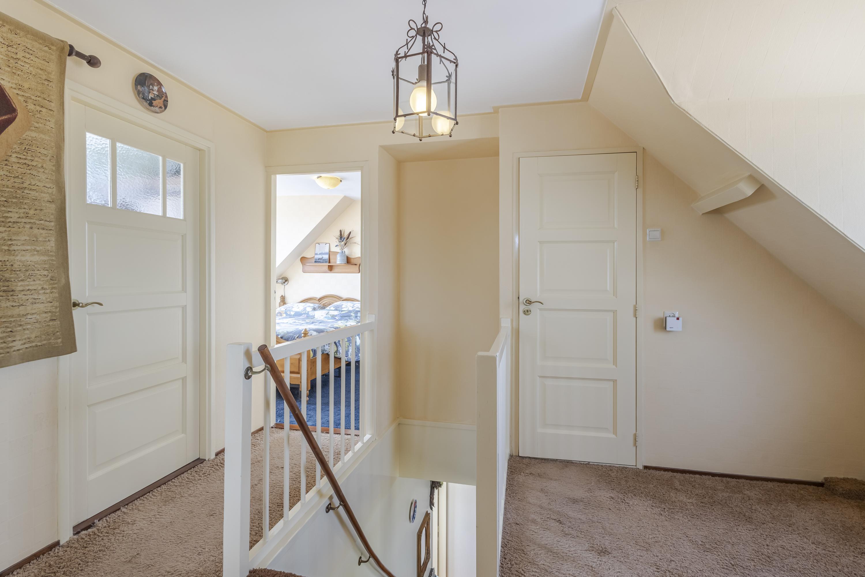 Op de verdieping bevinden zich 3 (voorheen 4) slaapkamers en de badkamer. De bergzolder (hoogte 1,25m) is vanaf de overloop bereikbaar. Hier ervaart u vrijheid in alle richtingen.