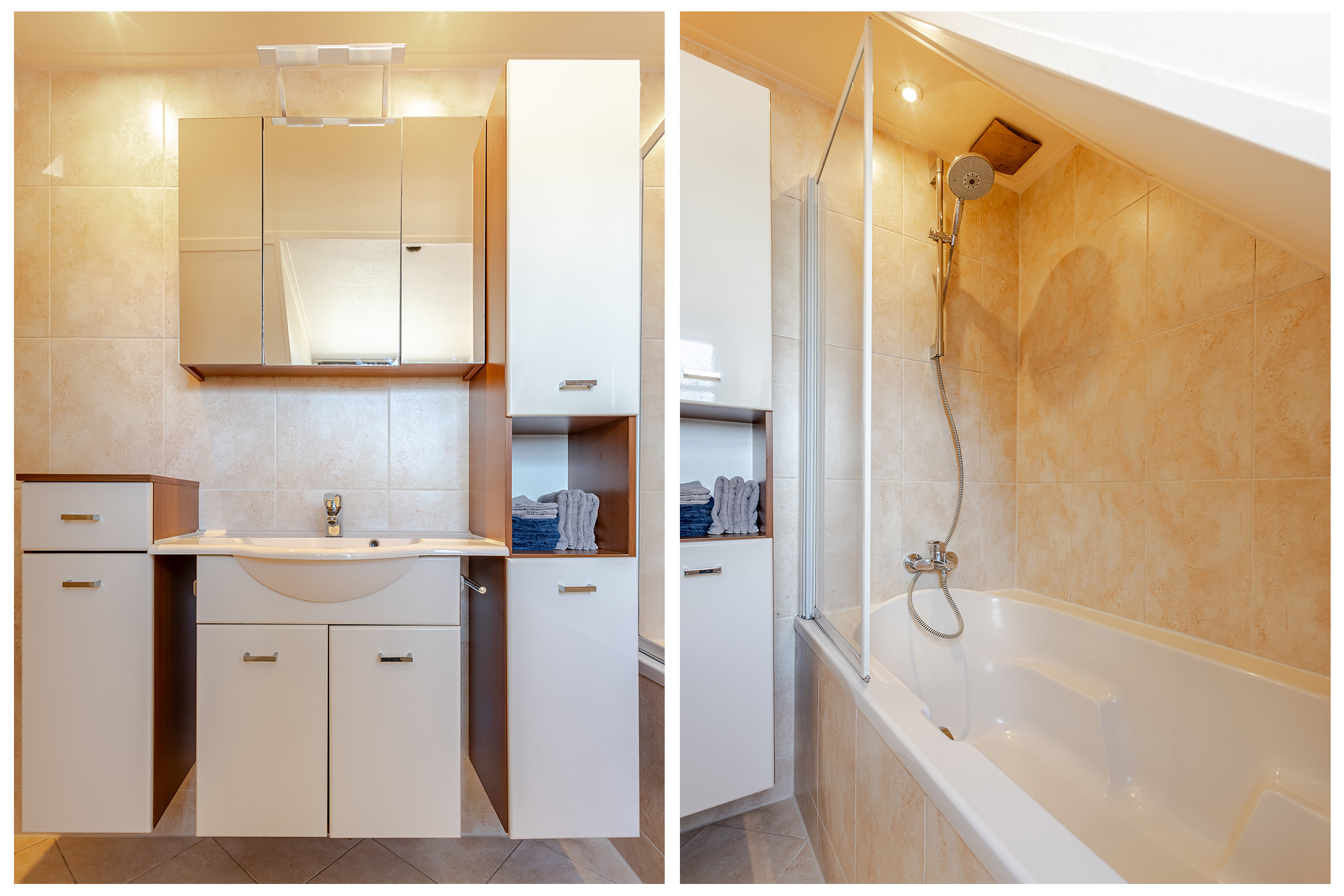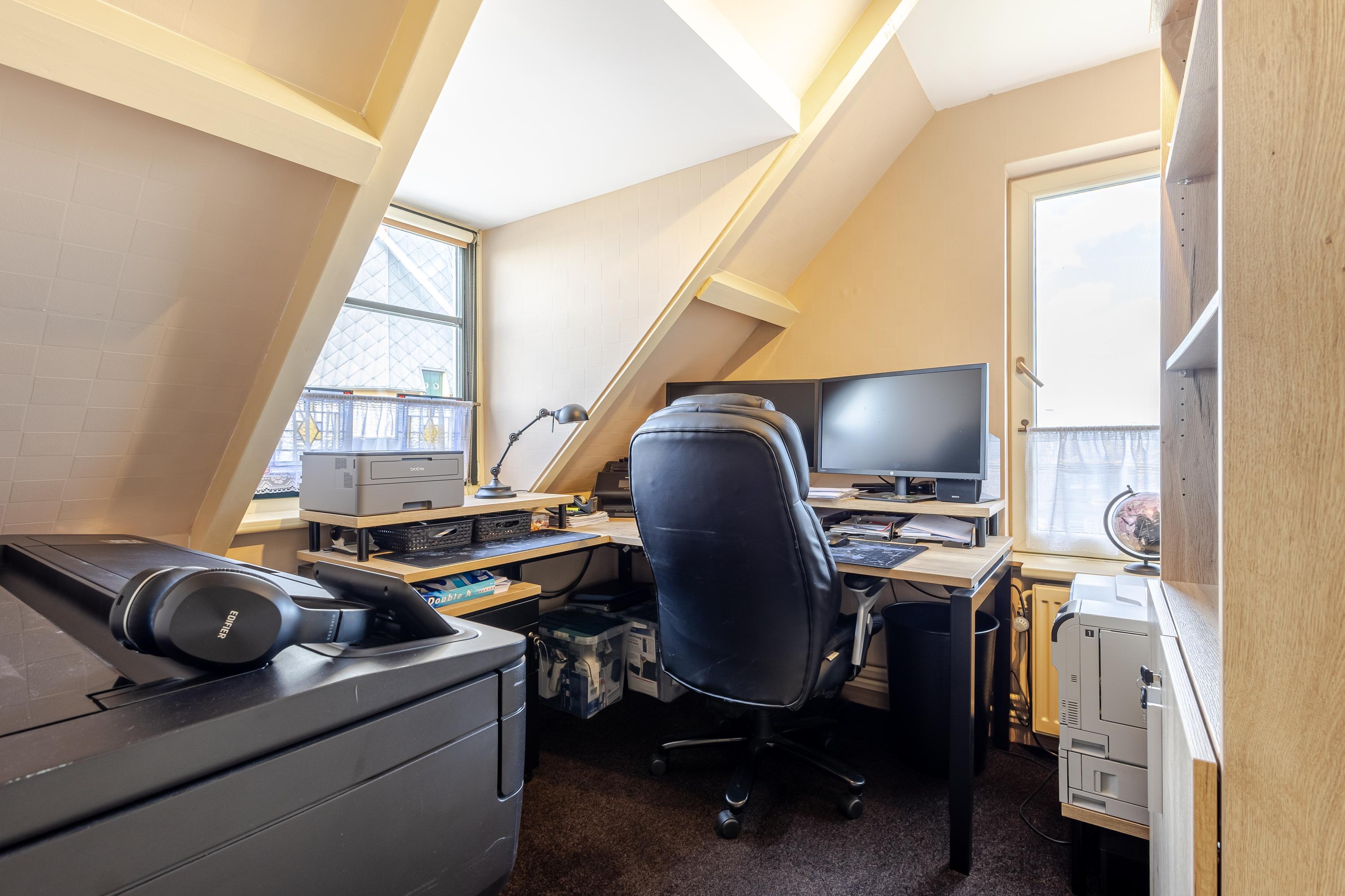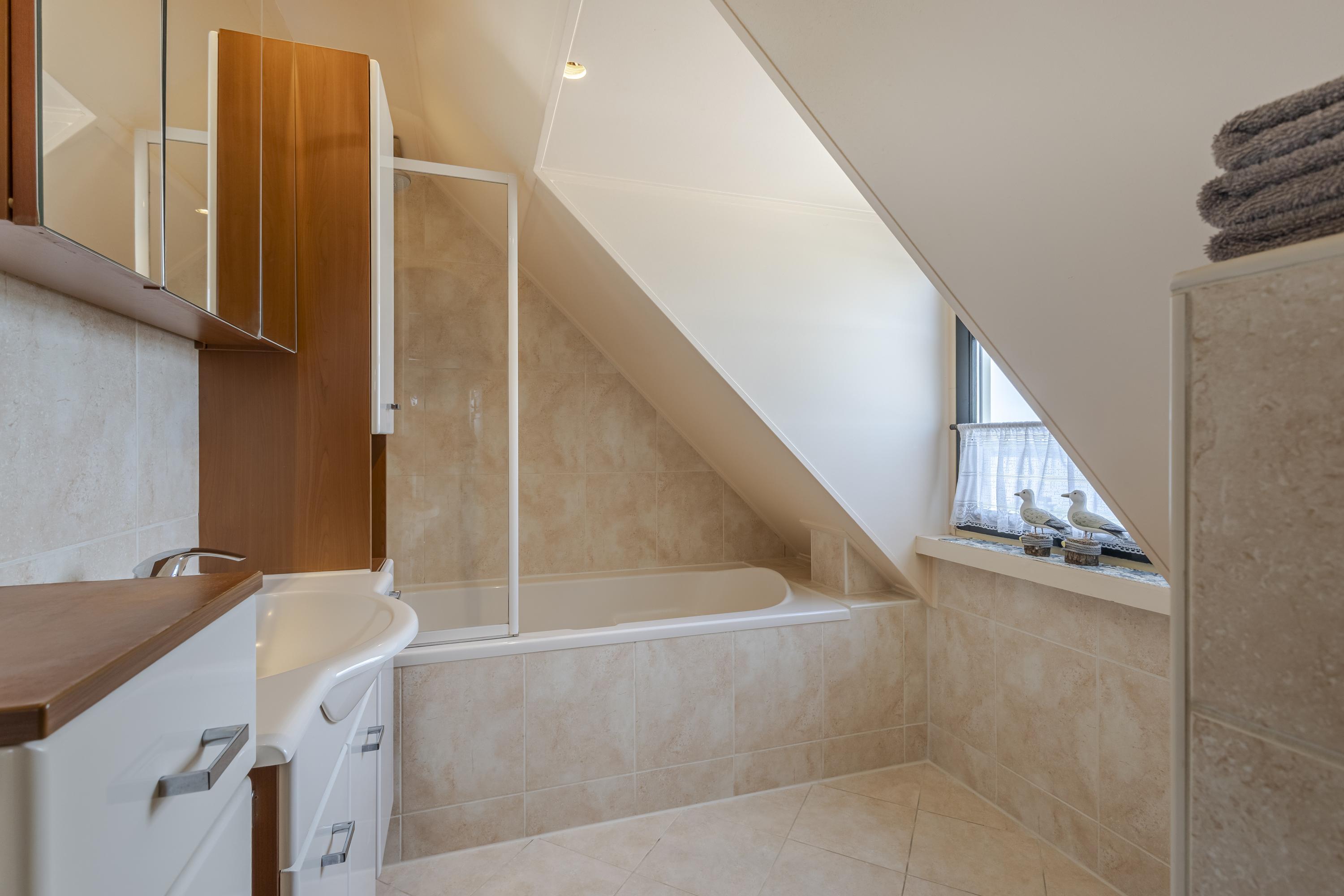 Op de verdieping bevinden zich 3 (voorheen 4) slaapkamers en de badkamer. De bergzolder (hoogte 1,25m) is vanaf de overloop bereikbaar. Hier ervaart u vrijheid in alle richtingen.