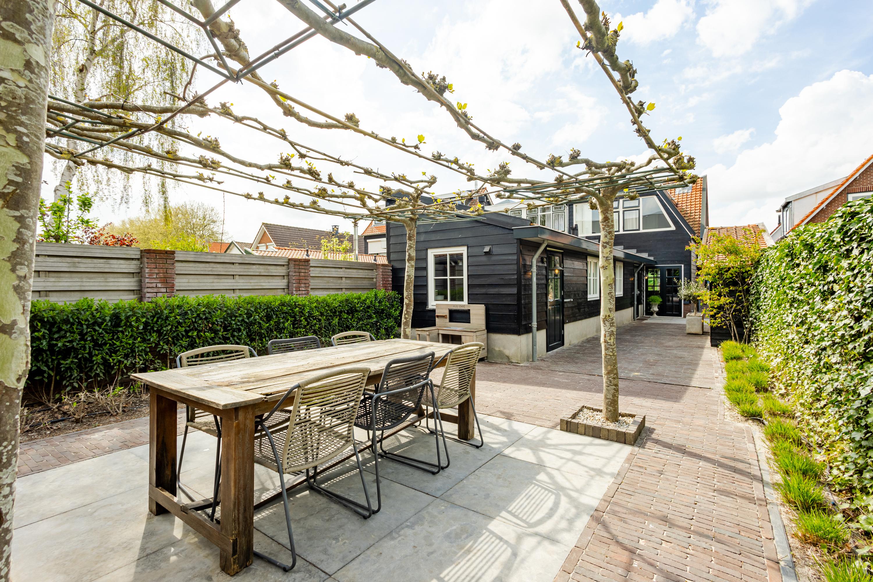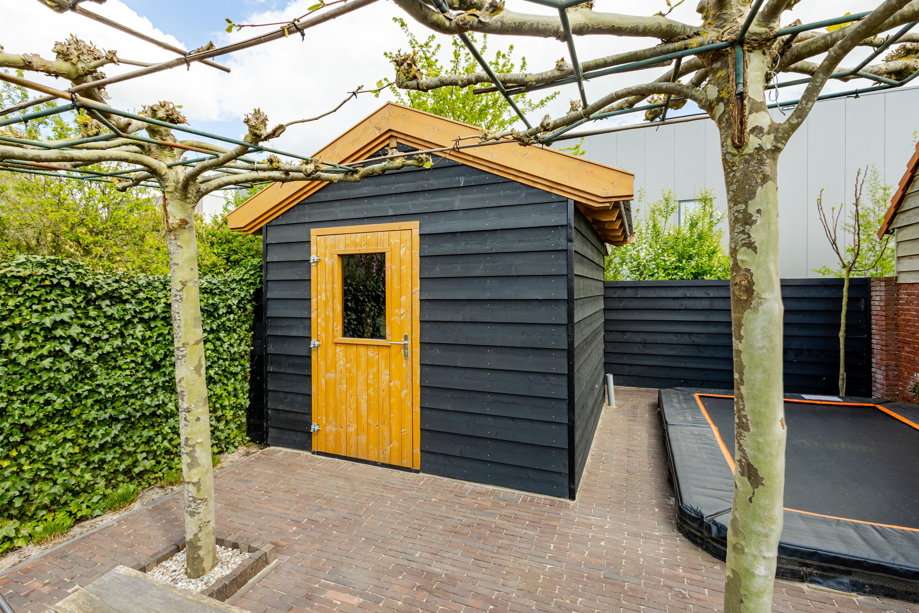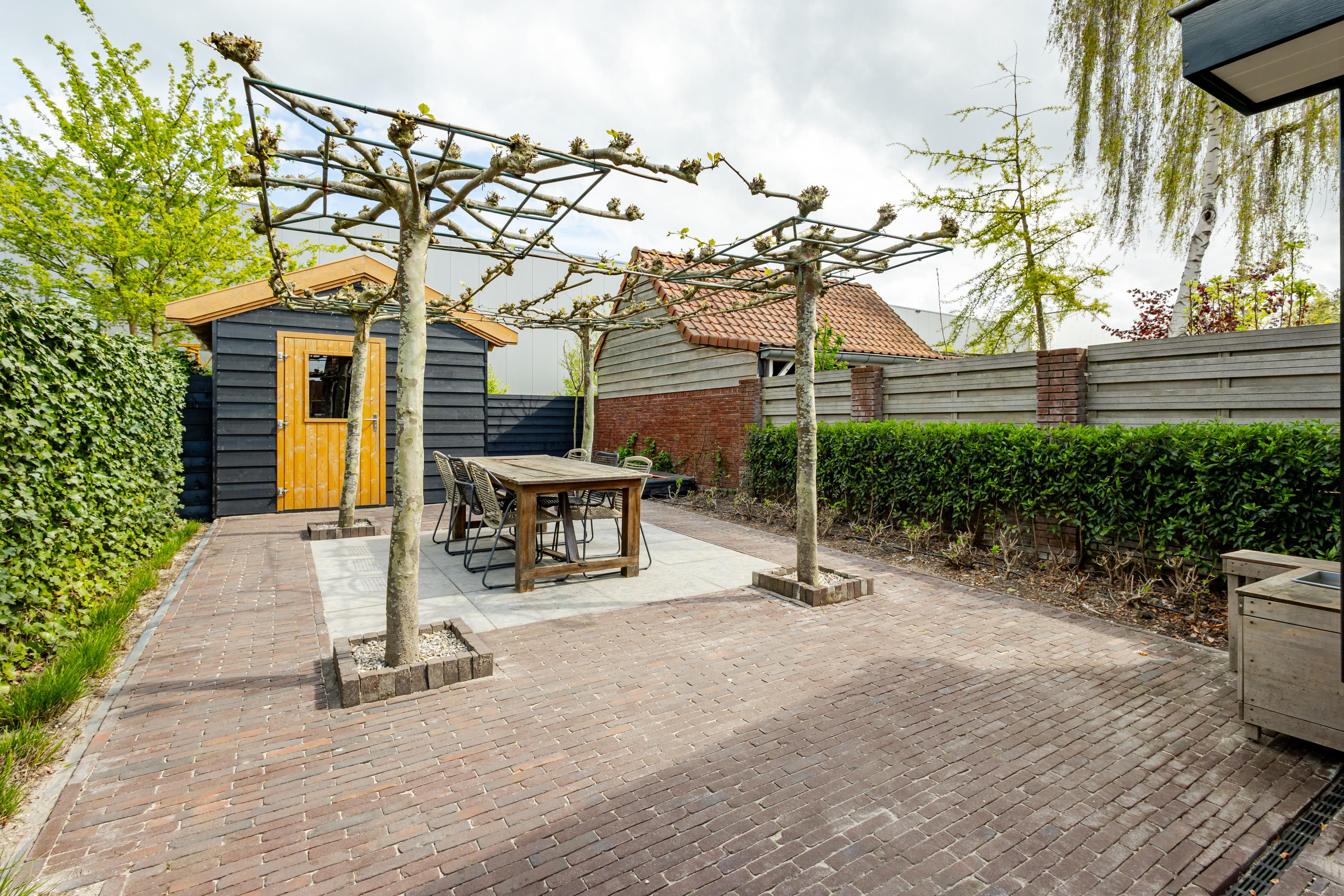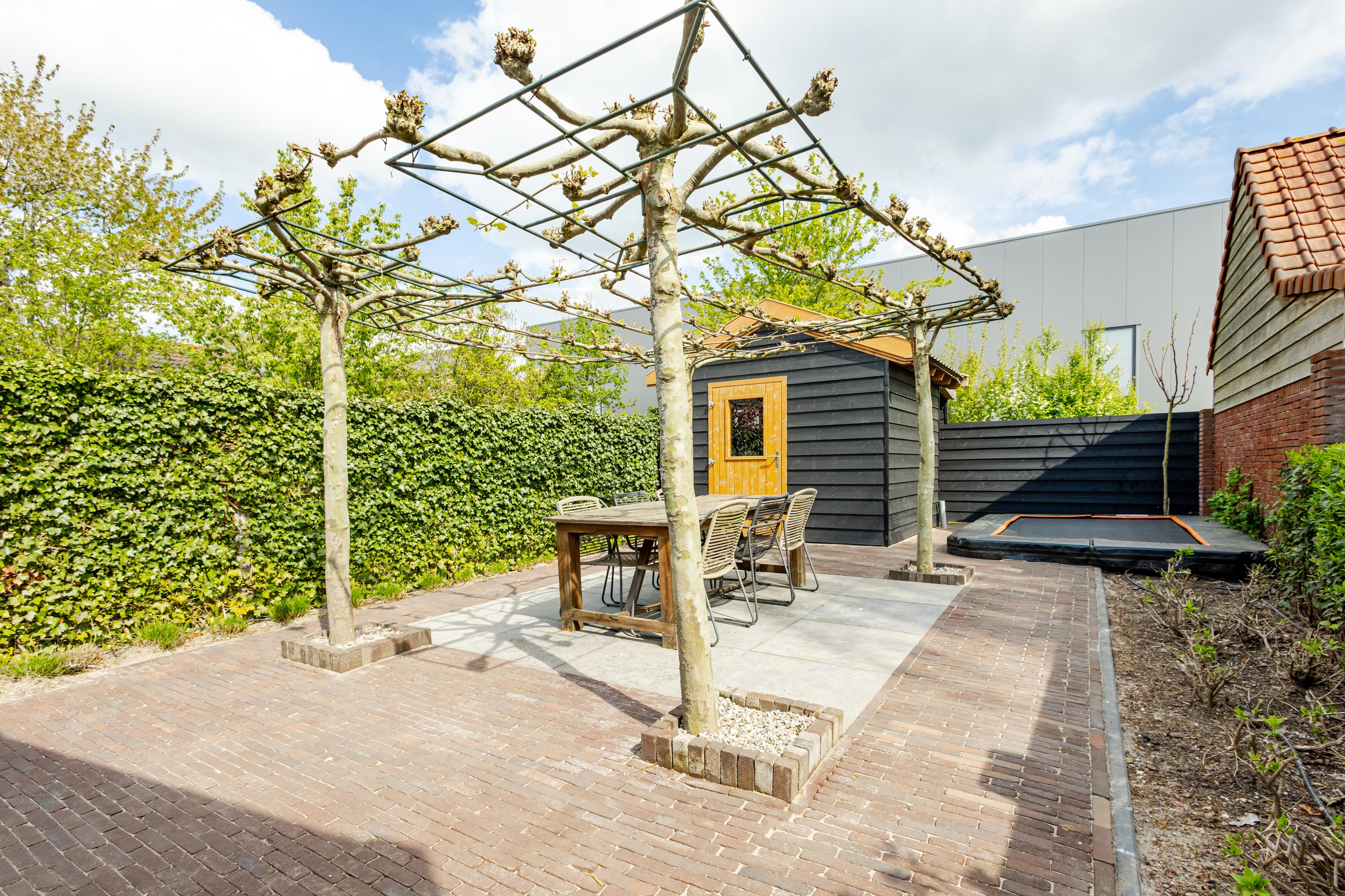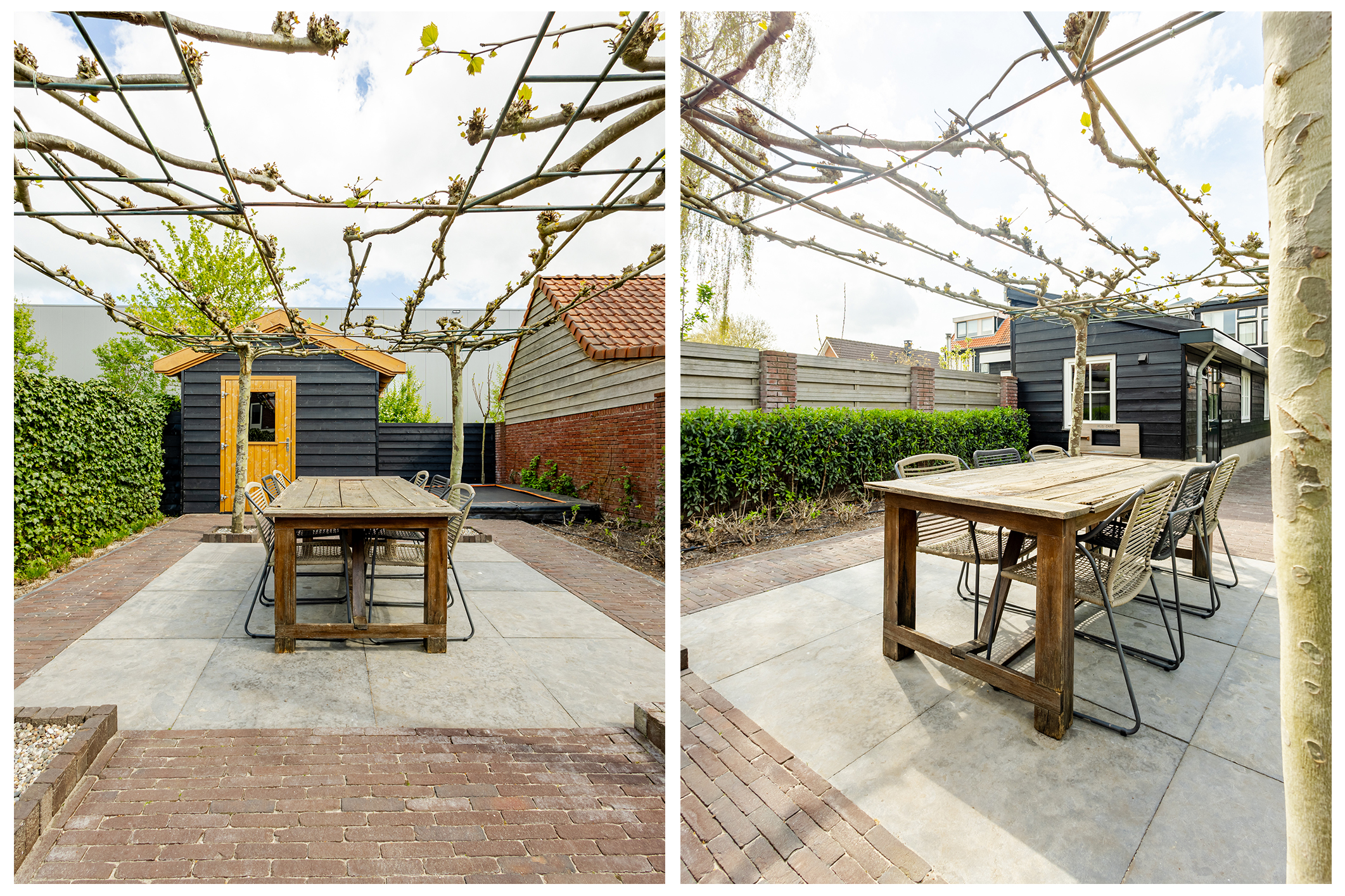 De circa 20 meter diepe achtertuin is een waar lusthof. Door de oostligging en de royale diepte vind je hier op elk moment van de dag wel een fijne plek in de zon of juist in de schaduw. De tuin is met zorg en smaak aangelegd: gebakken klinkers, Platanen als terrasbomen, Portugese laurierhagen, klimop erfafscheidingen en prachtige hortensiaperken zorgen voor een groene, sfeervolle setting. Met een beregeningssysteem, een fraaie houten berging en meerdere houthokken is ook aan praktisch gemak gedacht. Aan de voorzijde beschik je over een eigen oprit/parkeerplaats – wel zo prettig.