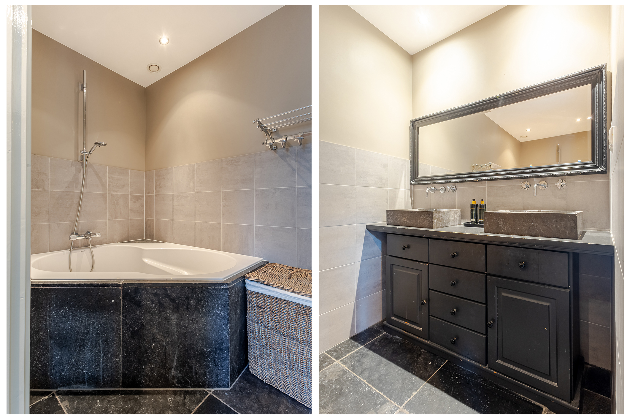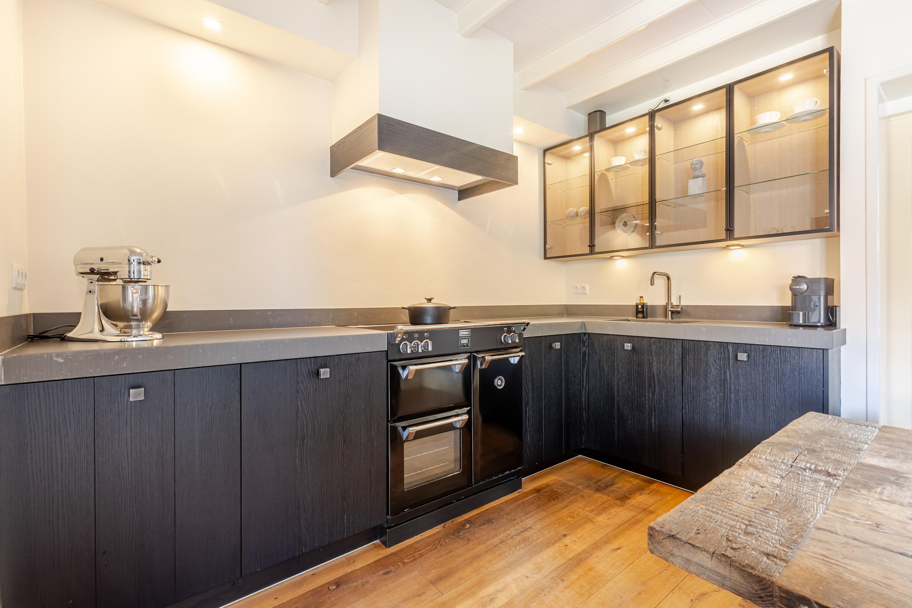De woonkamer en keuken worden van elkaar gescheiden door schitterende glas-in-lood en-suitedeuren als een stijlvolle knipoog naar het verleden. De keuken zelf is een absolute eyecatcher, met als pronkstuk het imposante Stoves inductiefornuis met maar liefst drie ovens. Hier kook je niet alleen, hier beleef je het.