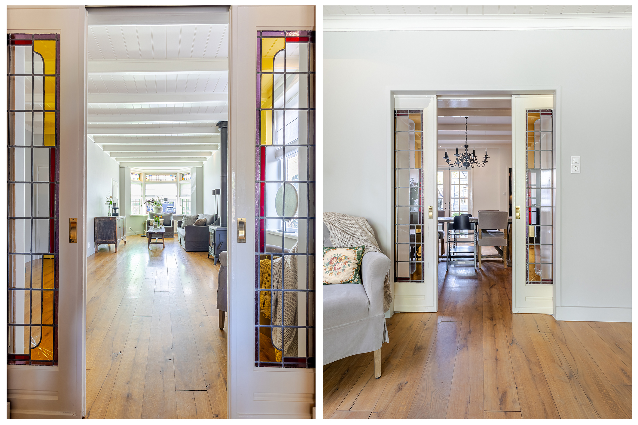 Vanaf het eerste moment voel je het: dit is zo’n huis dat je raakt. Glas-in-loodramen, balkenplafonds, kraaldelen en fraai hoogglans schilderwerk zorgen voor een verbluffend sfeervolle uitstraling waarin authentieke details prachtig samenkomen. De houtkachel maakt het plaatje compleet en zorgt voor knusse avonden in de woonkamer.