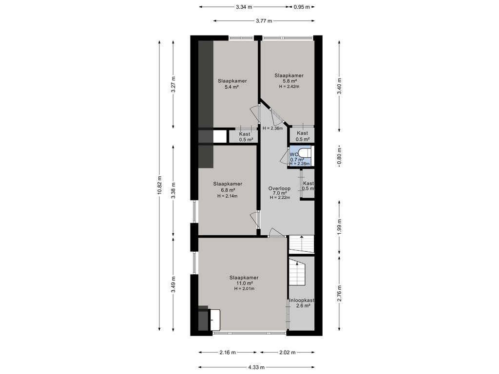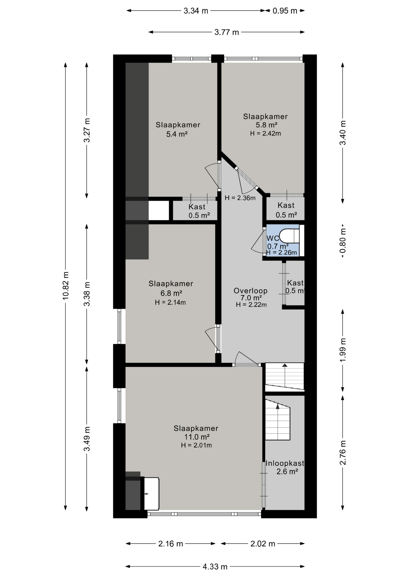 Met vier slaapkamers op de verdieping én een extra werk-/studeerkamer op de begane grond is er ruimte in overvloed. Ideaal voor gezinnen, thuiswerkers of hobbyisten. Dankzij de goede isolatie en praktische indeling is deze woning niet alleen sfeervol, maar ook comfortabel en prettig in gebruik.