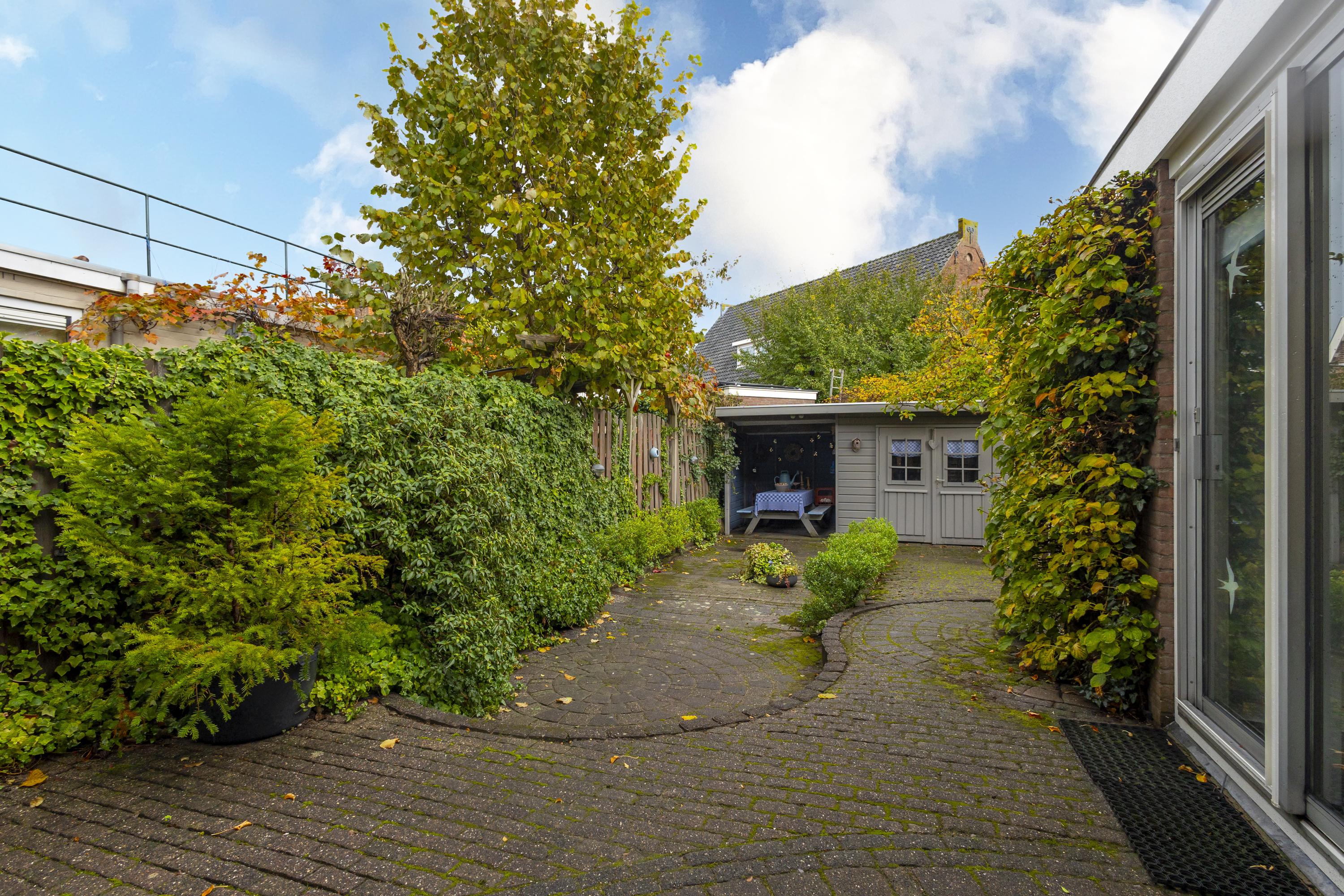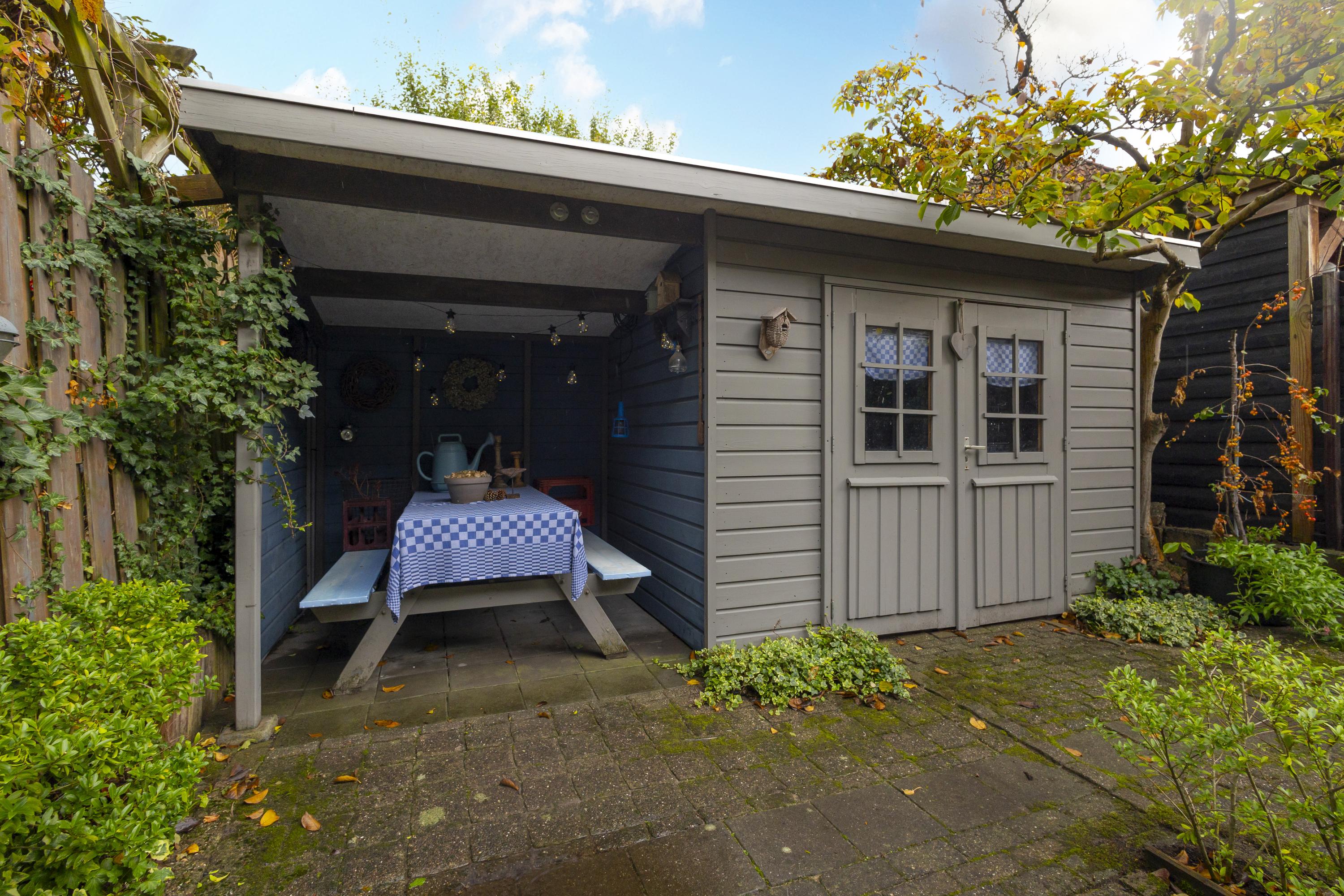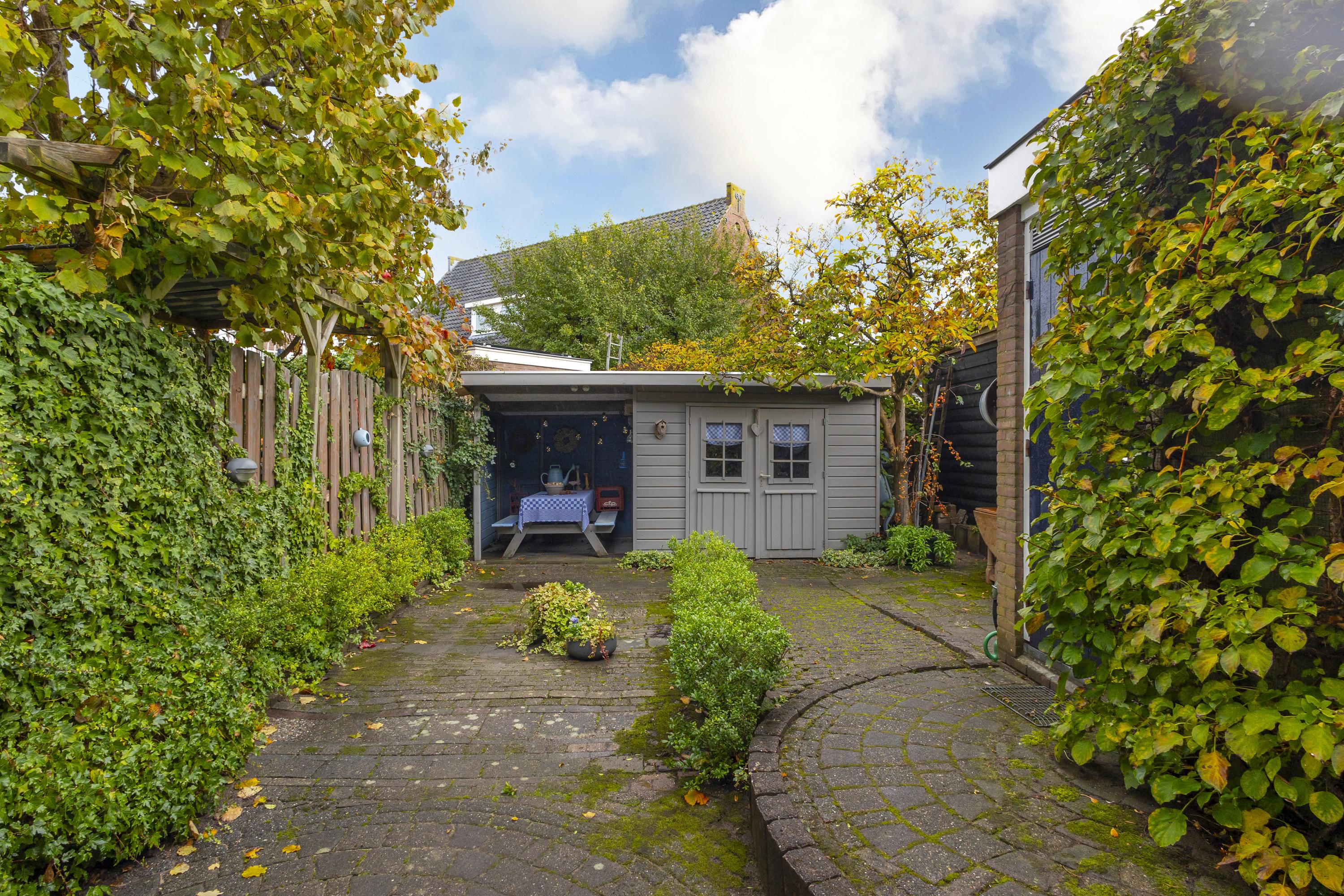 De achtertuin is een echte blikvanger! Een fijne plek met genoeg ruimte om met familie/vrienden gezellig te ontspannen. De sierbestrating wordt afgewisseld met 2 bergingen, waarvan 1 aangebouwd, een overkapping en verschillende bomen. Naast de woning is er toegang naar de voorzijde.