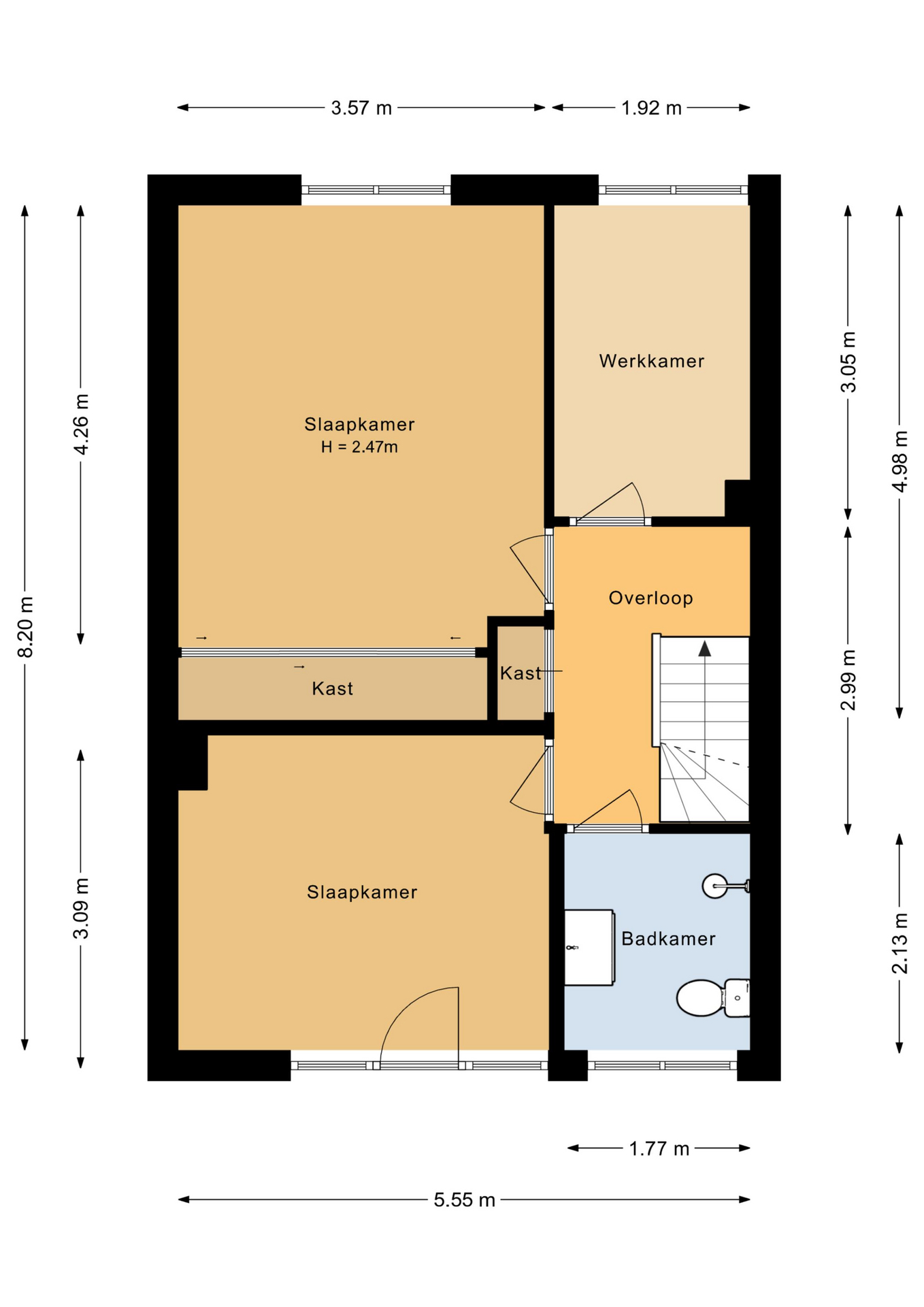 De indeling is praktisch en biedt volop gebruiksgemak. Bij het betreden van de woonkamer valt direct de erker op die zorgt voor extra daglicht en een gezellige zitplek. Vanuit de erker kijk je leuk de Oranjestraat in. De woonkamer loopt op natuurlijke wijze over in de open keuken, waardoor wonen en koken perfect samen gaan! Vanuit hier heb je toegang tot de achtertuin. Vanuit de hal is er naast het toilet ook toegang tot de kelder (h 1,94m). Op de eerste verdieping bevinden zich 3 slaapkamers en een badkamer. De badkamer met een douchehoek, wastafel en een 2e toilet. Op de 2e verdieping tref je slaapkamer 4, de ideale plek voor een tiener, werkruimte of logeerkamer. Op de voorzolder is er ruimte voor de wasapparatuur en een achter deuren weggewerkte cv-opstelling.