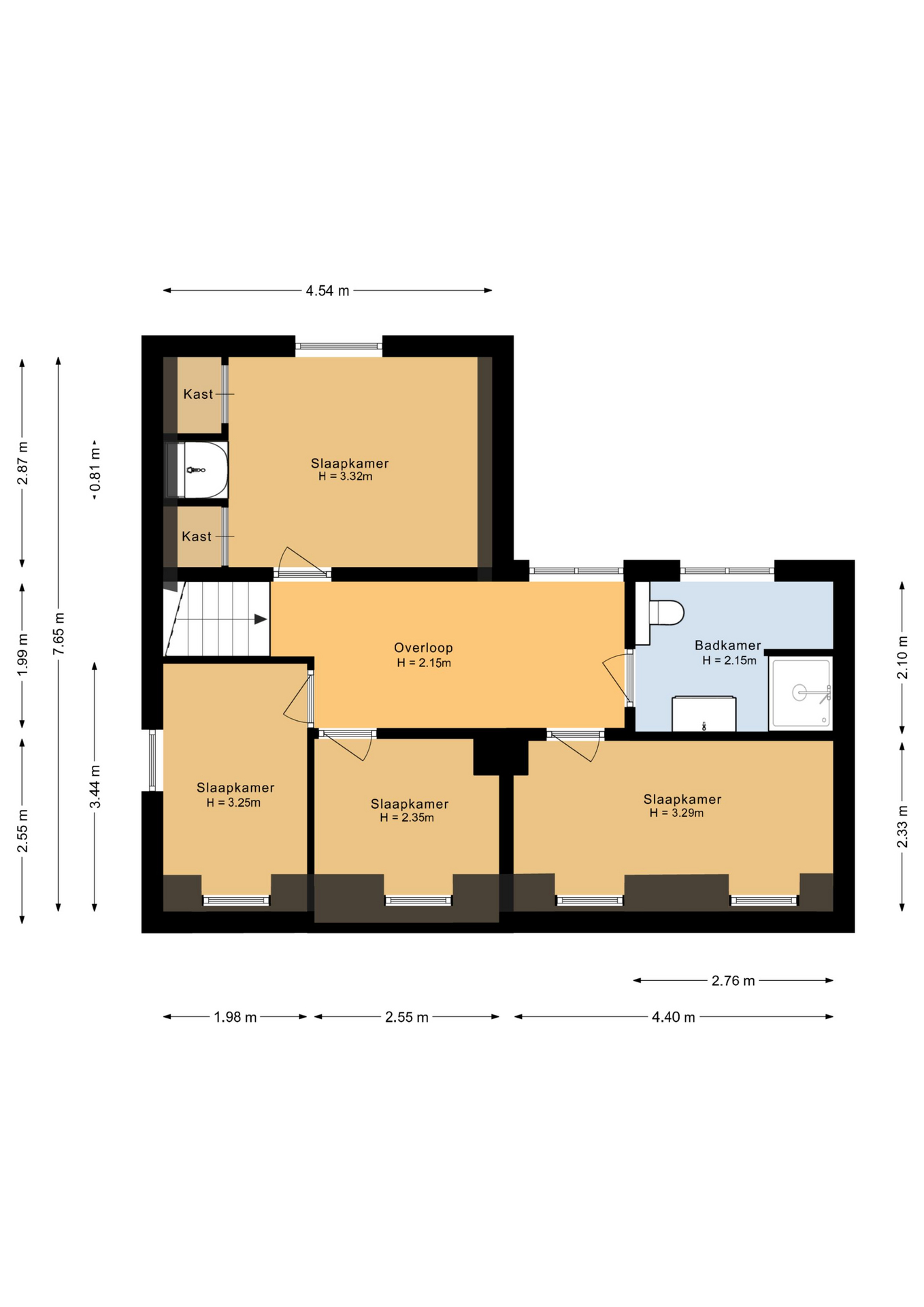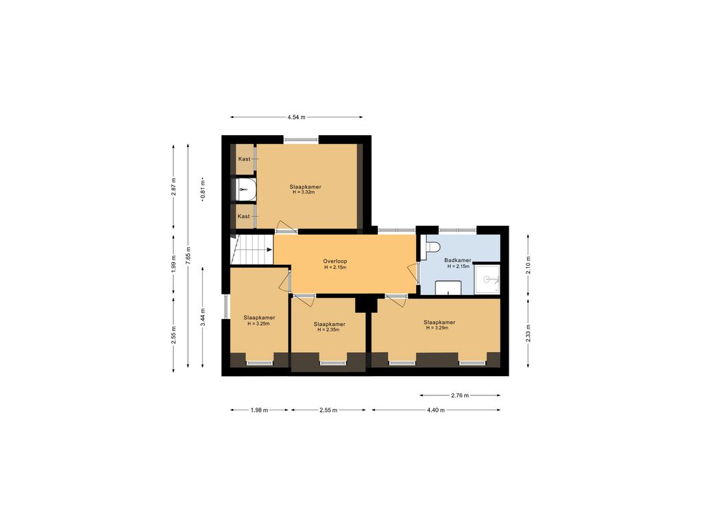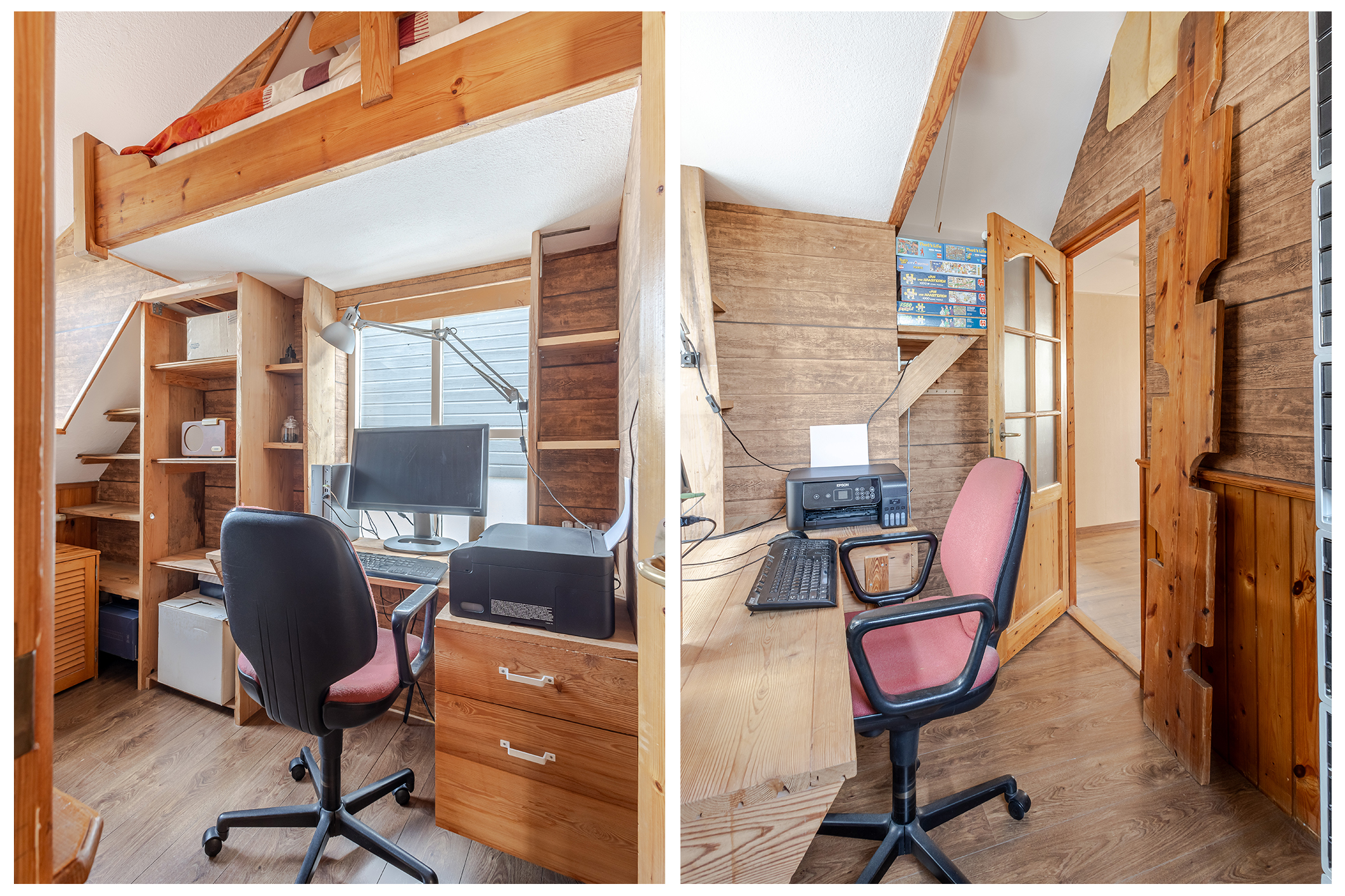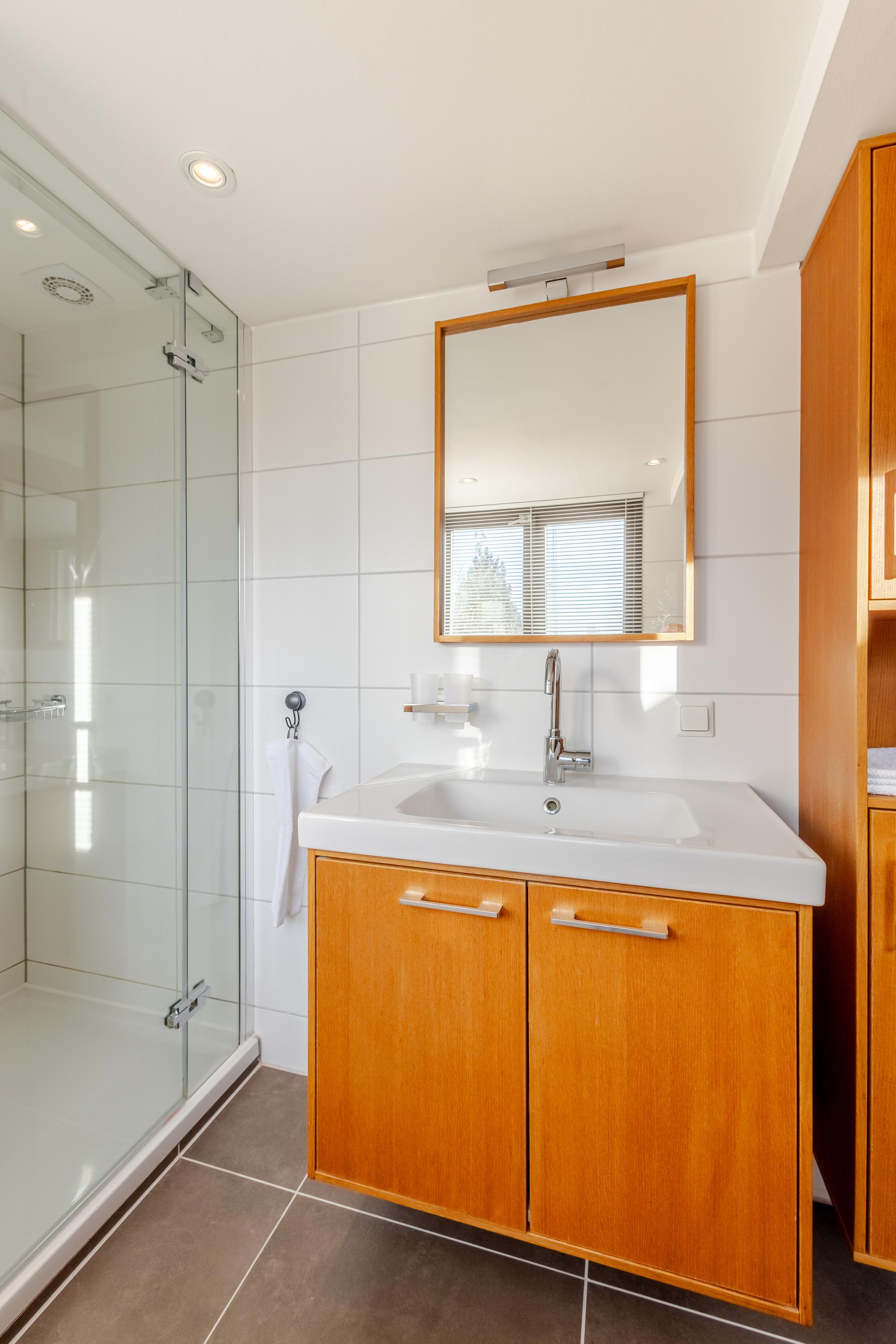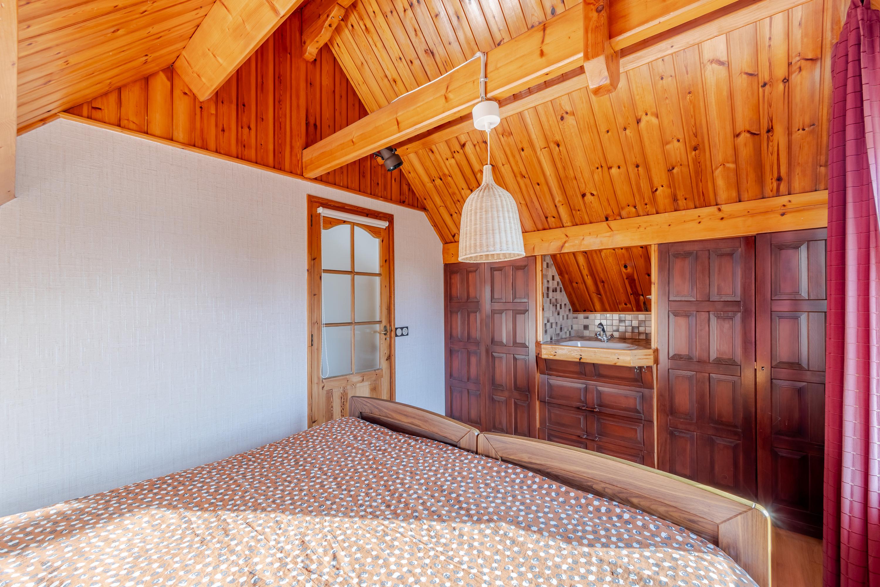 Op de eerste verdieping bevinden zich maar liefst vier slaapkamers en een comfortabele badkamer met ruime douche, tweede toilet en eikenhouten maatwerk wastafelmeubel. De gedeeltelijk hoge plafonds tot in de nok, zichtbare spanten en mooi houtwerk zorgen voor een warme, landelijke sfeer op deze verdieping.
