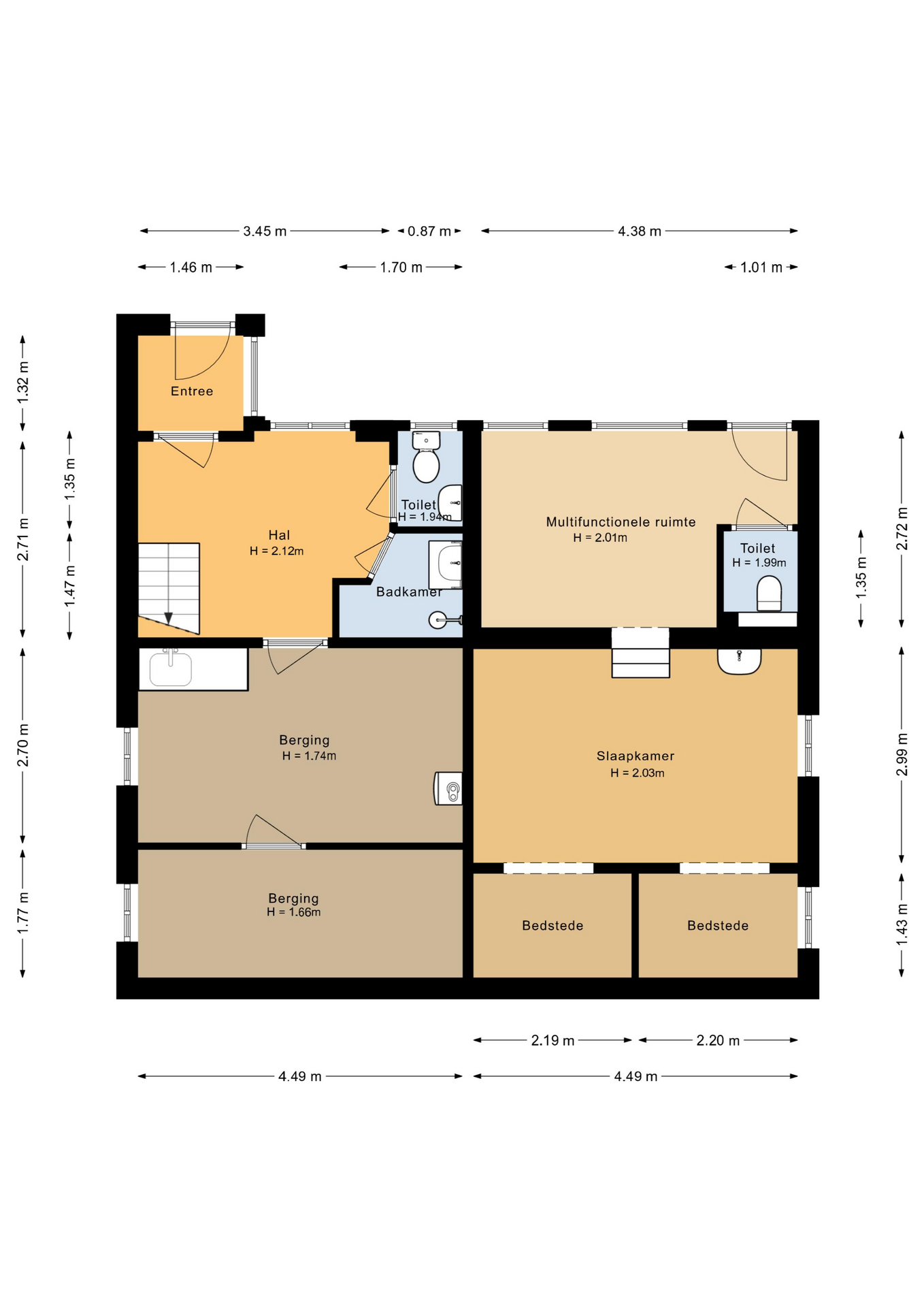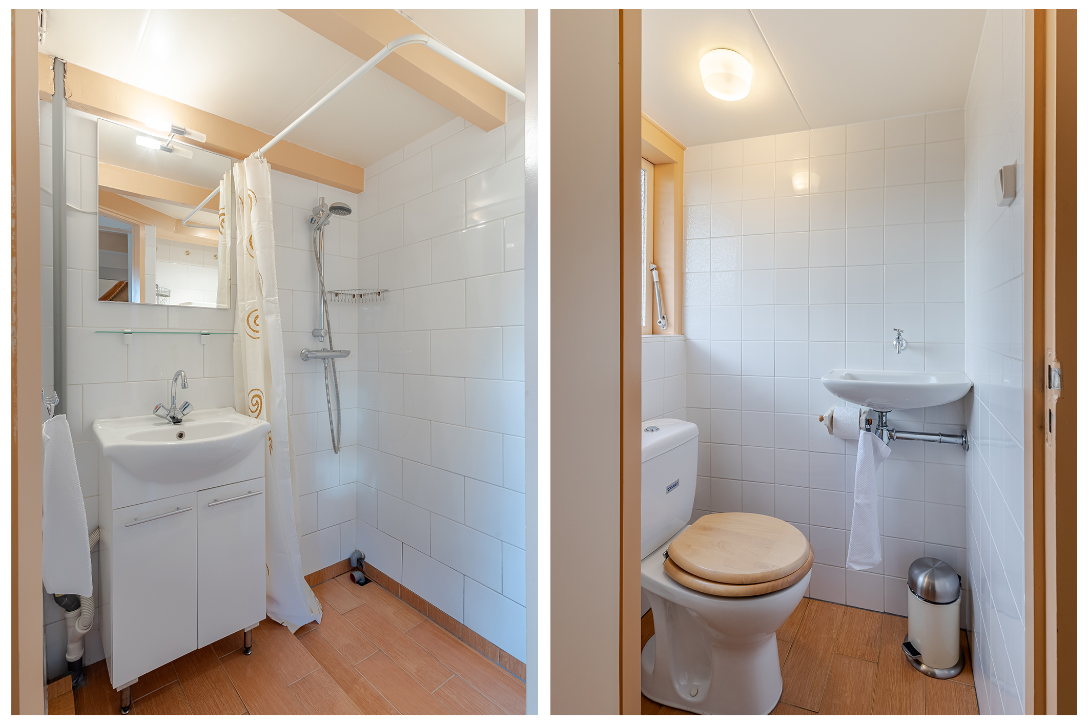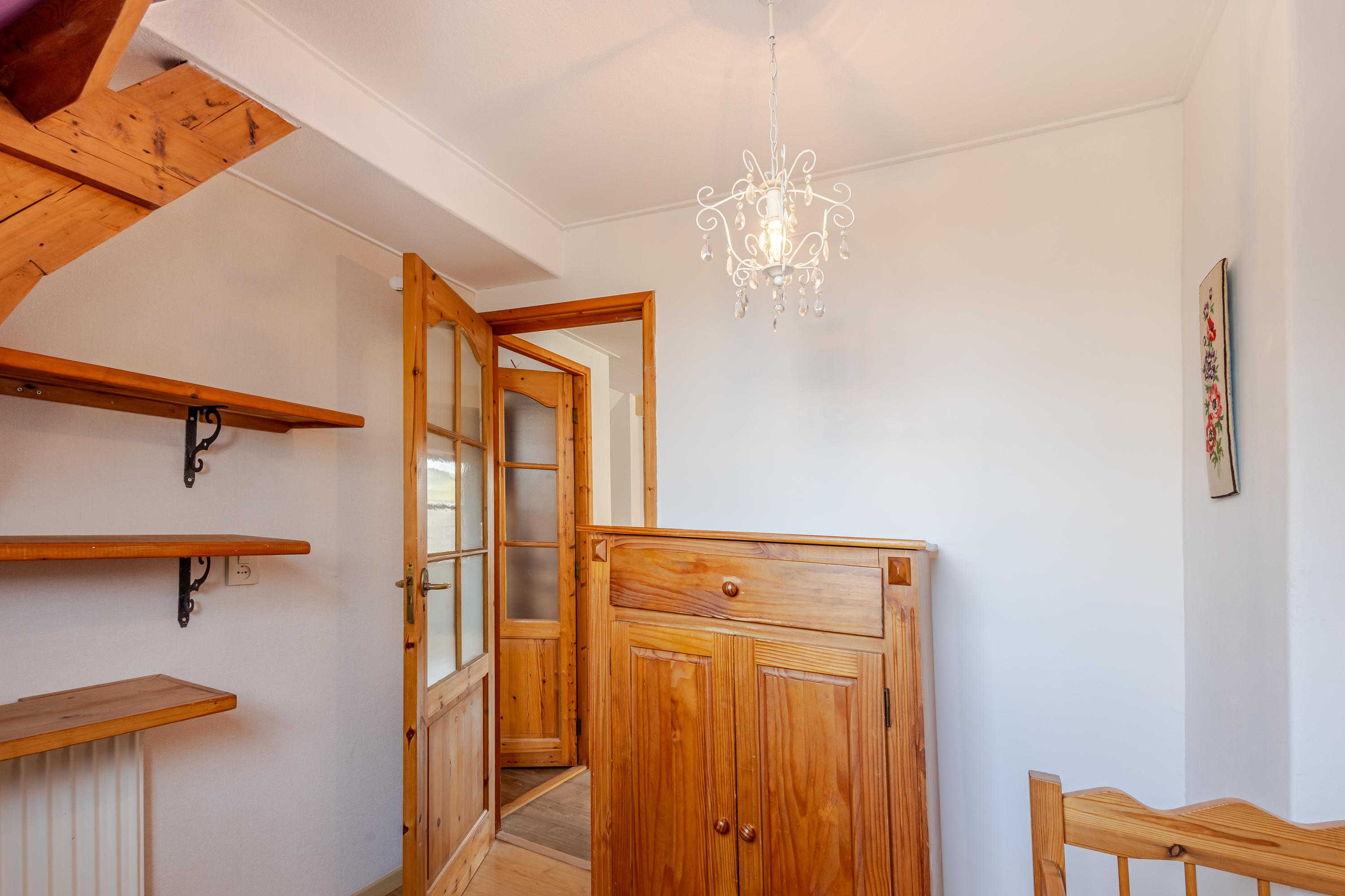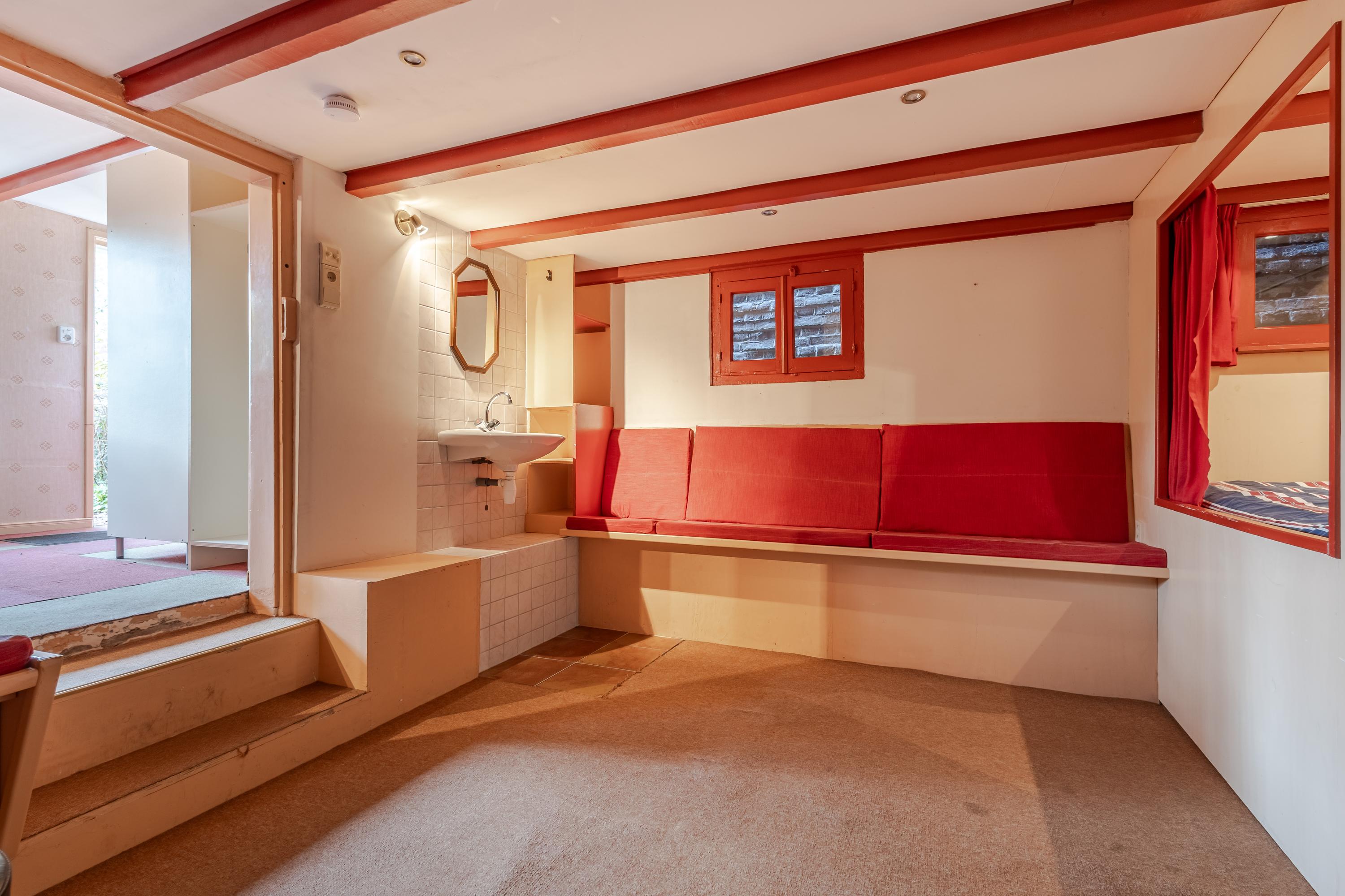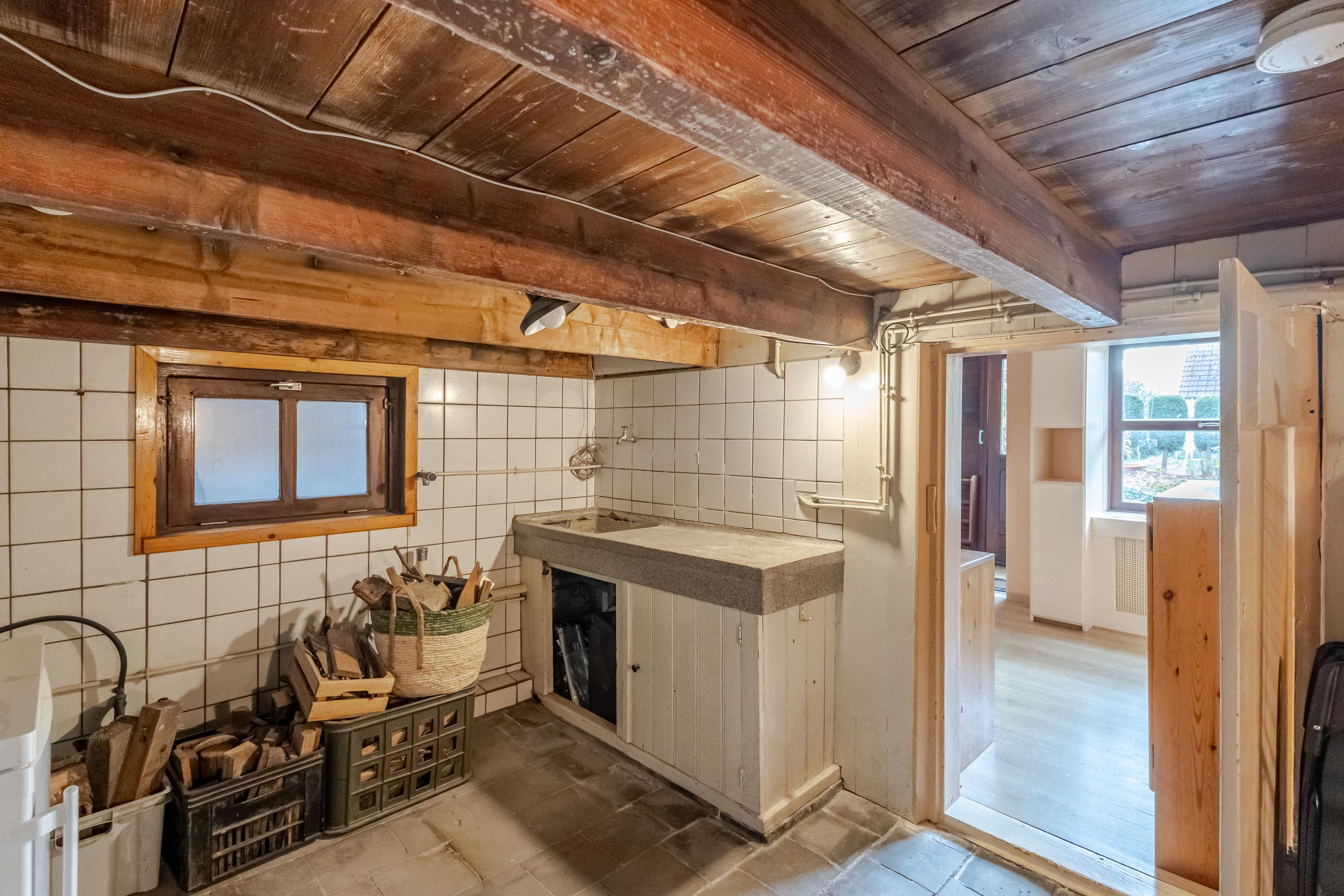 Het onderhuis is verdeeld in twee compartimenten. Het eerste deel, intern bereikbaar, biedt een portaal met toegang tot de tuin, een extra badkamer met douche, een separaat toilet en veel praktische kelder- en opbergruimte. Het tweede deel bestaat uit een sfeervolle tuinkamer met toilet én een iets lagergelegen slaapkamer voorzien van twee bedsteden. Een unieke en verrassende toevoeging aan het geheel.