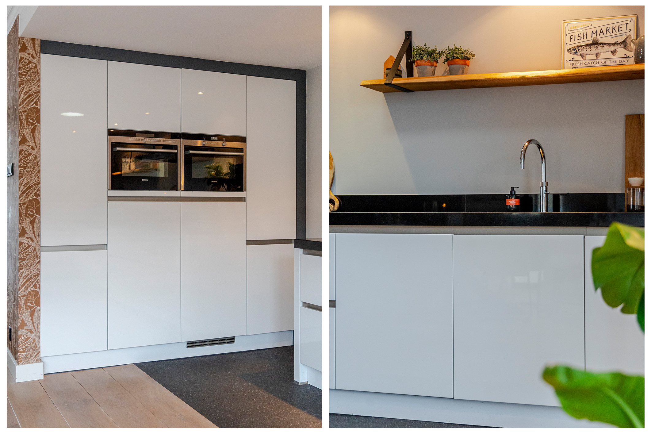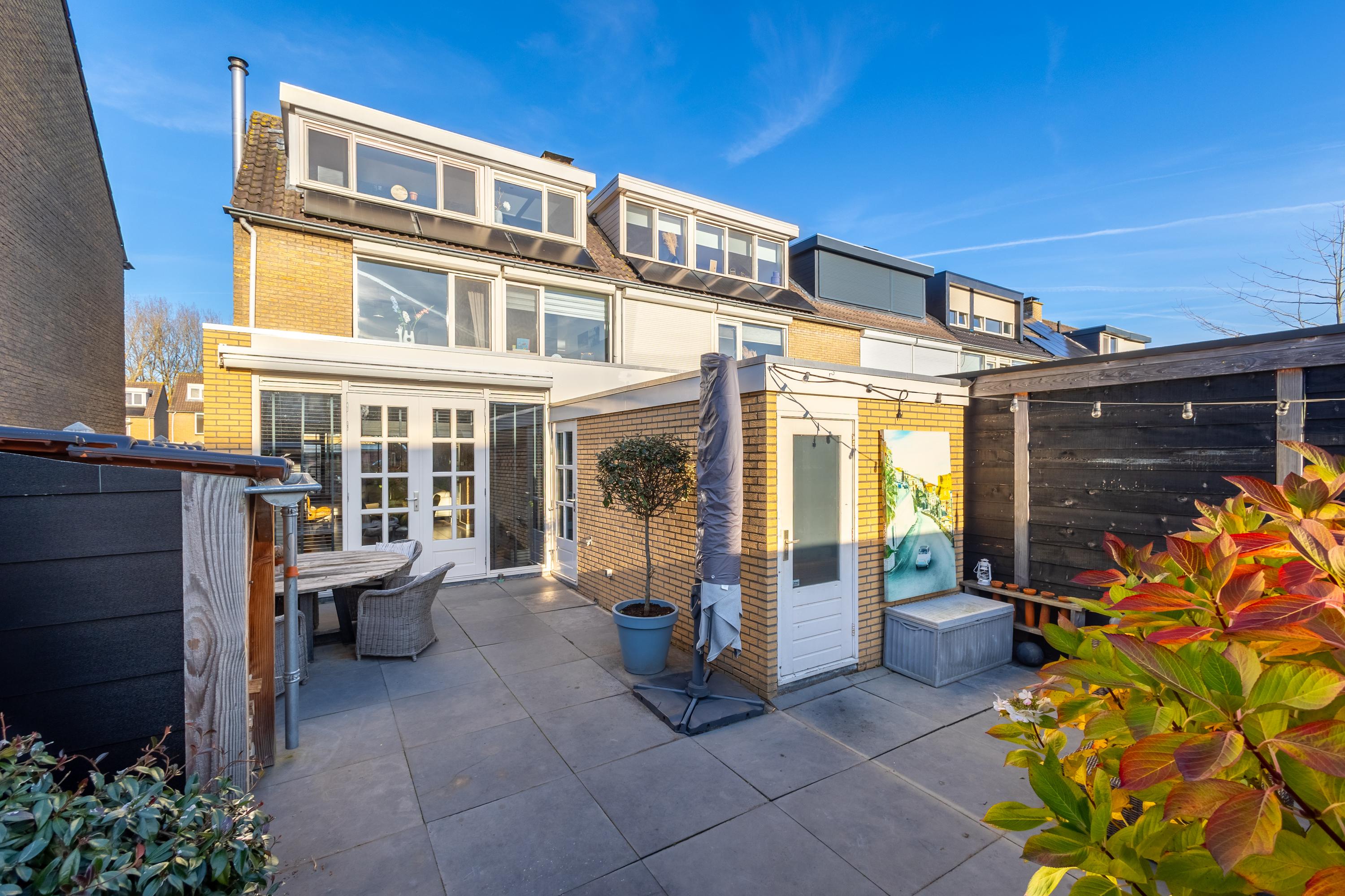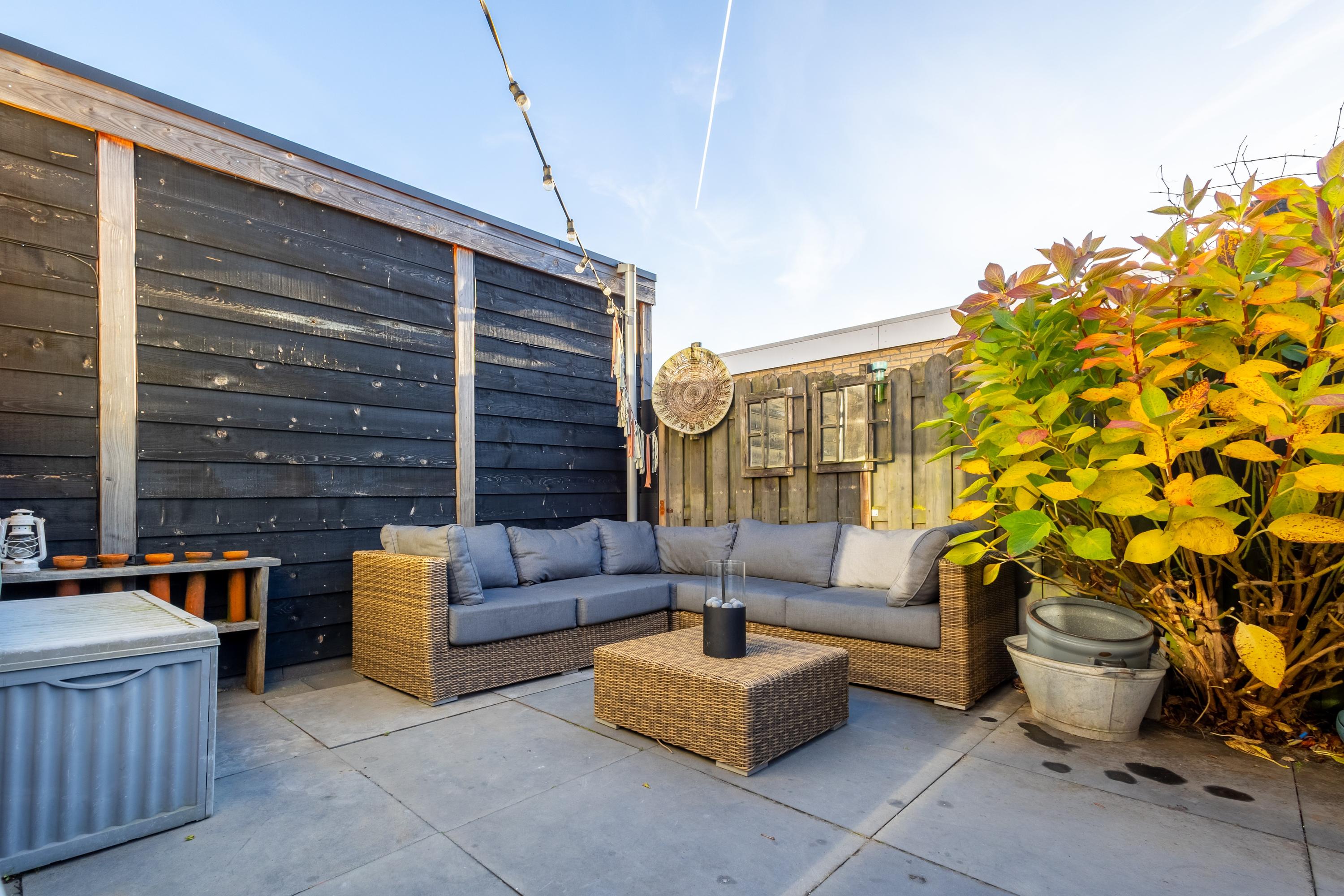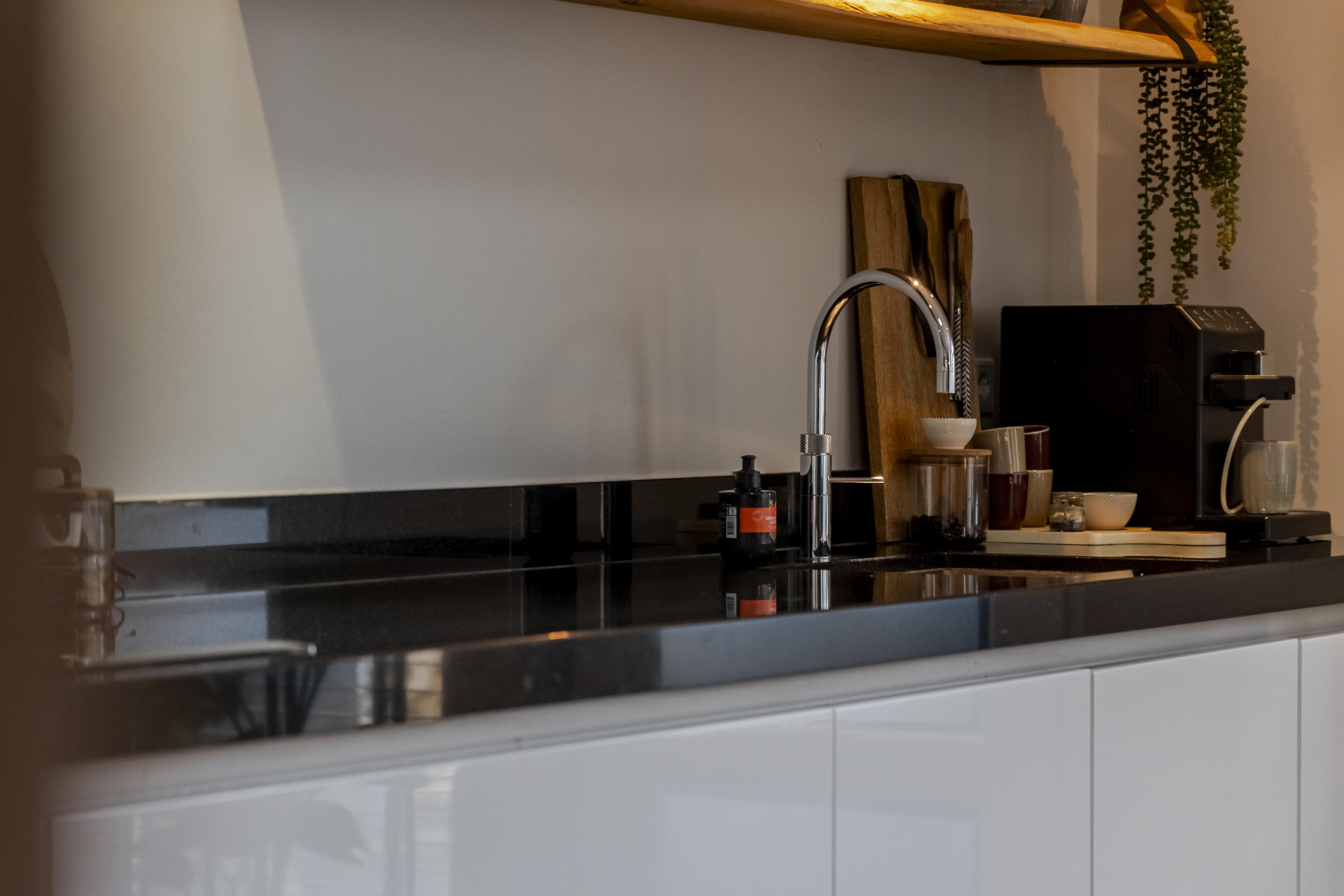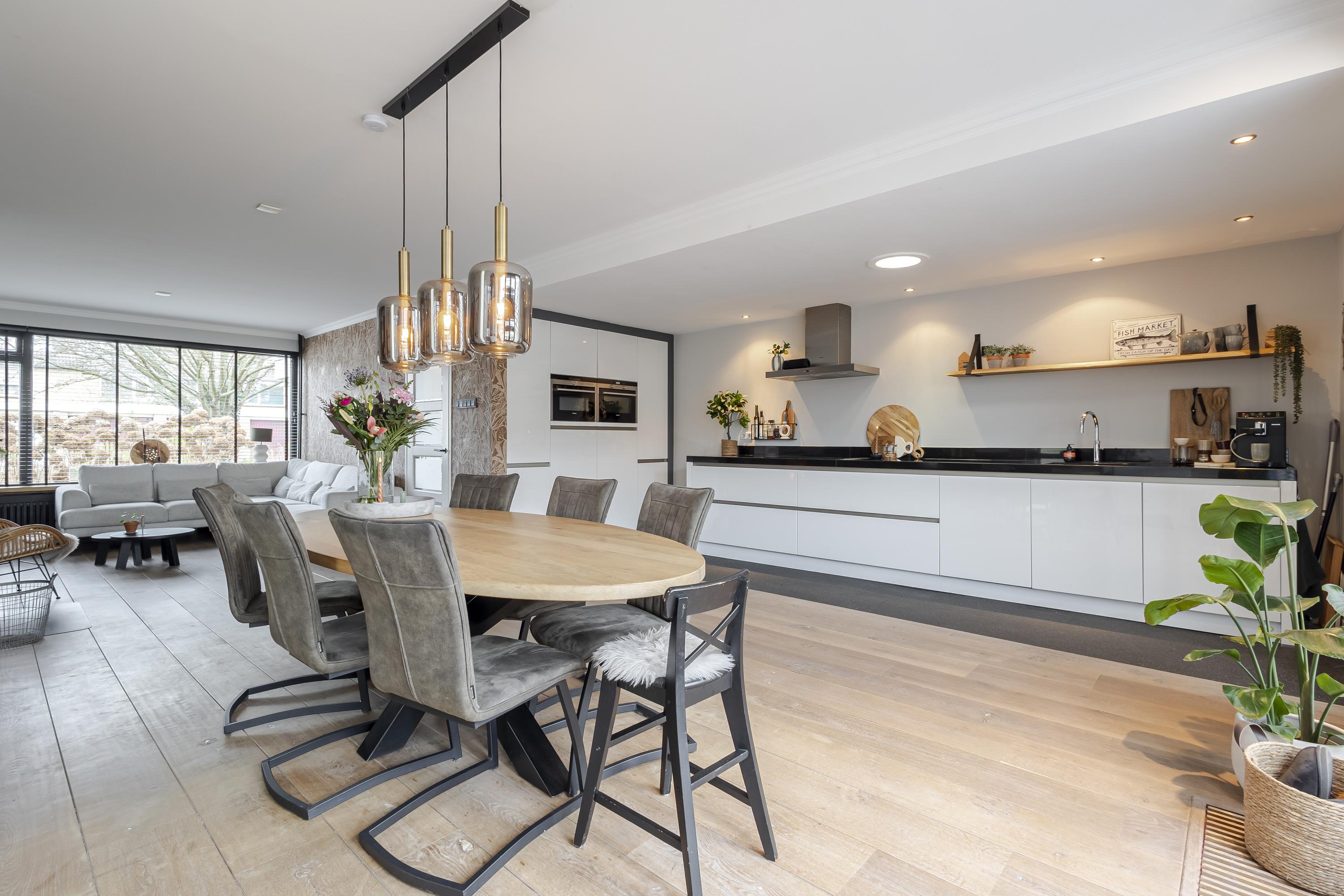 De royale aanbouw aan de achterzijde vormt het hart van de woning: een heerlijk ruime woonkamer met open keuken waar leven en genieten samenkomen. De strak vormgegeven keuken, de fraaie houten vloer, dubbele tuindeuren en de rijke daglichttoetreding zorgen voor een lichte en prettige leefruimte. Het brede straatbeeld draagt bij aan het gevoel van ruimte, terwijl een houtkachel op koude dagen zorgt voor extra warmte en gezelligheid.