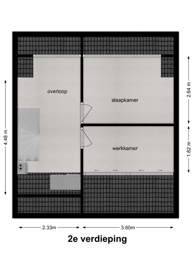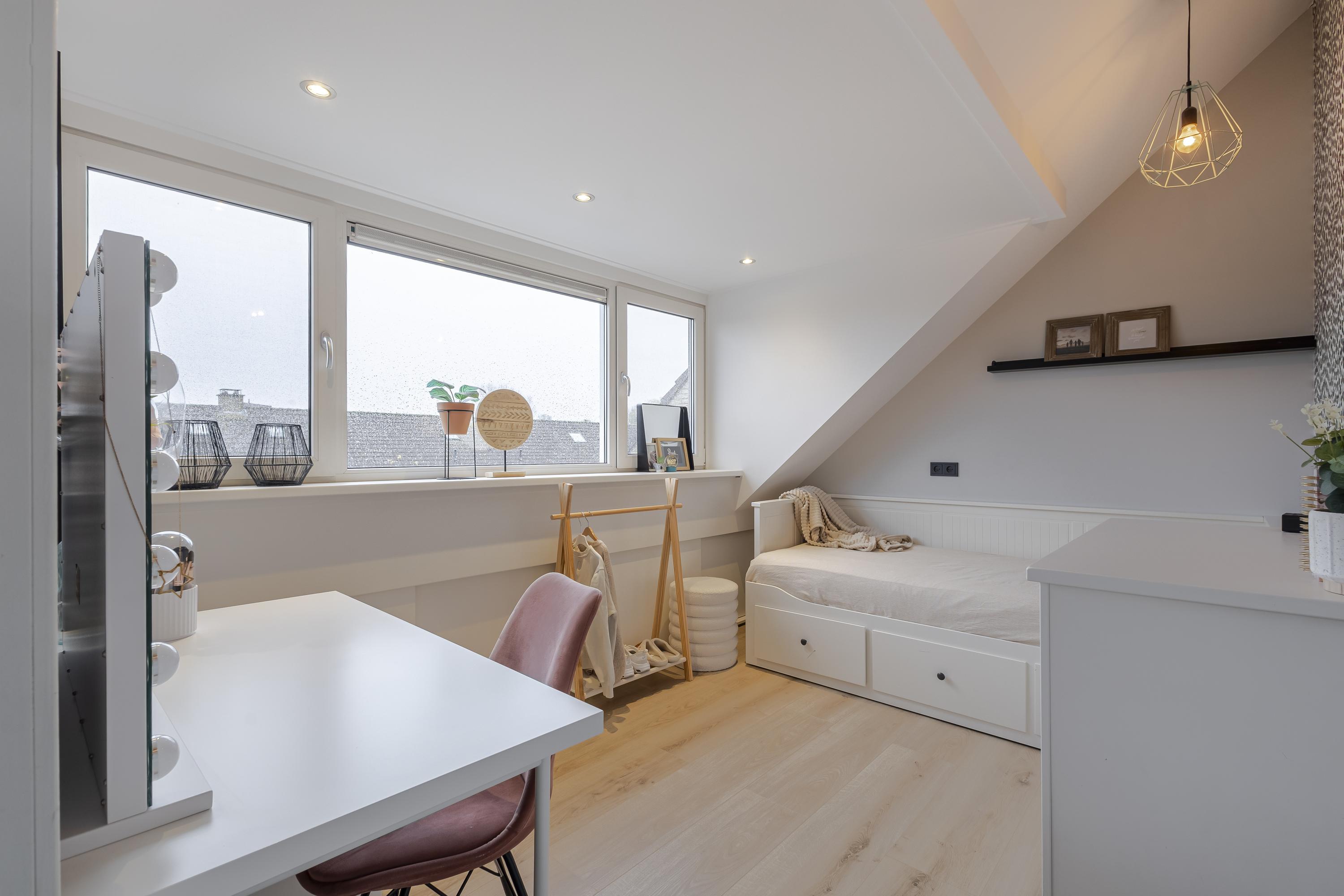 De tweede verdieping verrast met een woningbrede dakkapel aan de achterzijde, waardoor zowel de vierde slaapkamer als de overloop heerlijk ruim aanvoelen. Aan de voorzijde bevindt zich een werk- of bergkamer; met het plaatsen van een dakraam is ook hier eenvoudig een volwaardige slaapkamer van te maken. Ideaal voor een groter gezin, thuiswerken of logees.