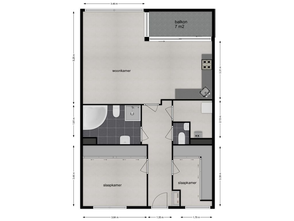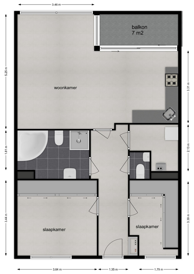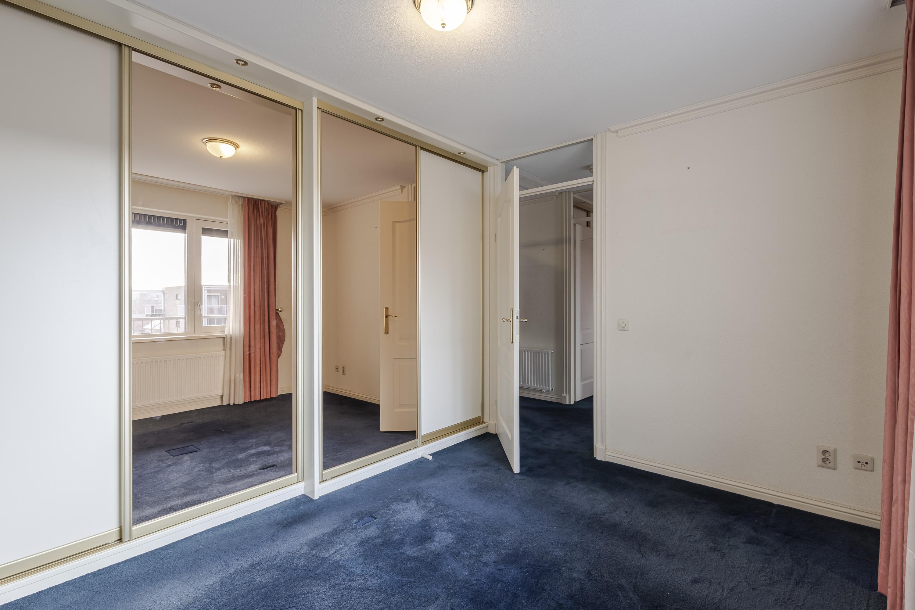 Dankzij de grote raampartijen in de woonkamer en open keuken geniet u hier van veel daglicht en een prettige, lichte leefruimte. De twee slaapkamers zijn gelegen aan de rustige galerijzijde en beide voorzien van praktische schuifwandkasten.