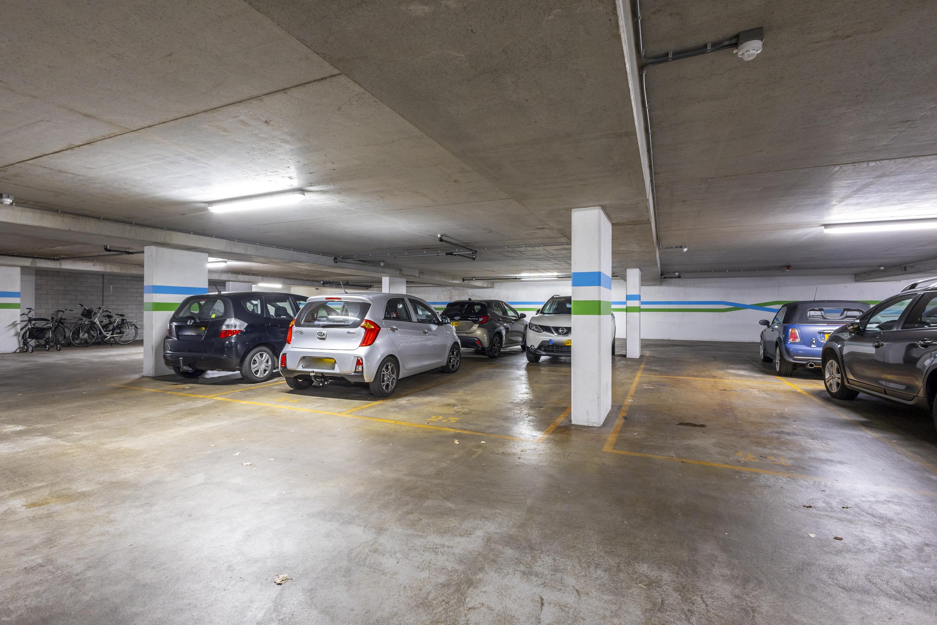 De royale badkamer is uitgevoerd in een klassiek luxueuze stijl en beschikt over een hoekligbad, douchecabine, tweede toilet en een wastafelmeubel. Het separate toilet is in dezelfde stijl afgewerkt. Daarnaast is er een handige inpandige berging met vaste kast, waarin de cv-ketel is geplaatst (vernieuwd in 2019). Naast de entree van het complex is een gezamenlijke fietsenberging waar ook de containers zijn geplaatst.