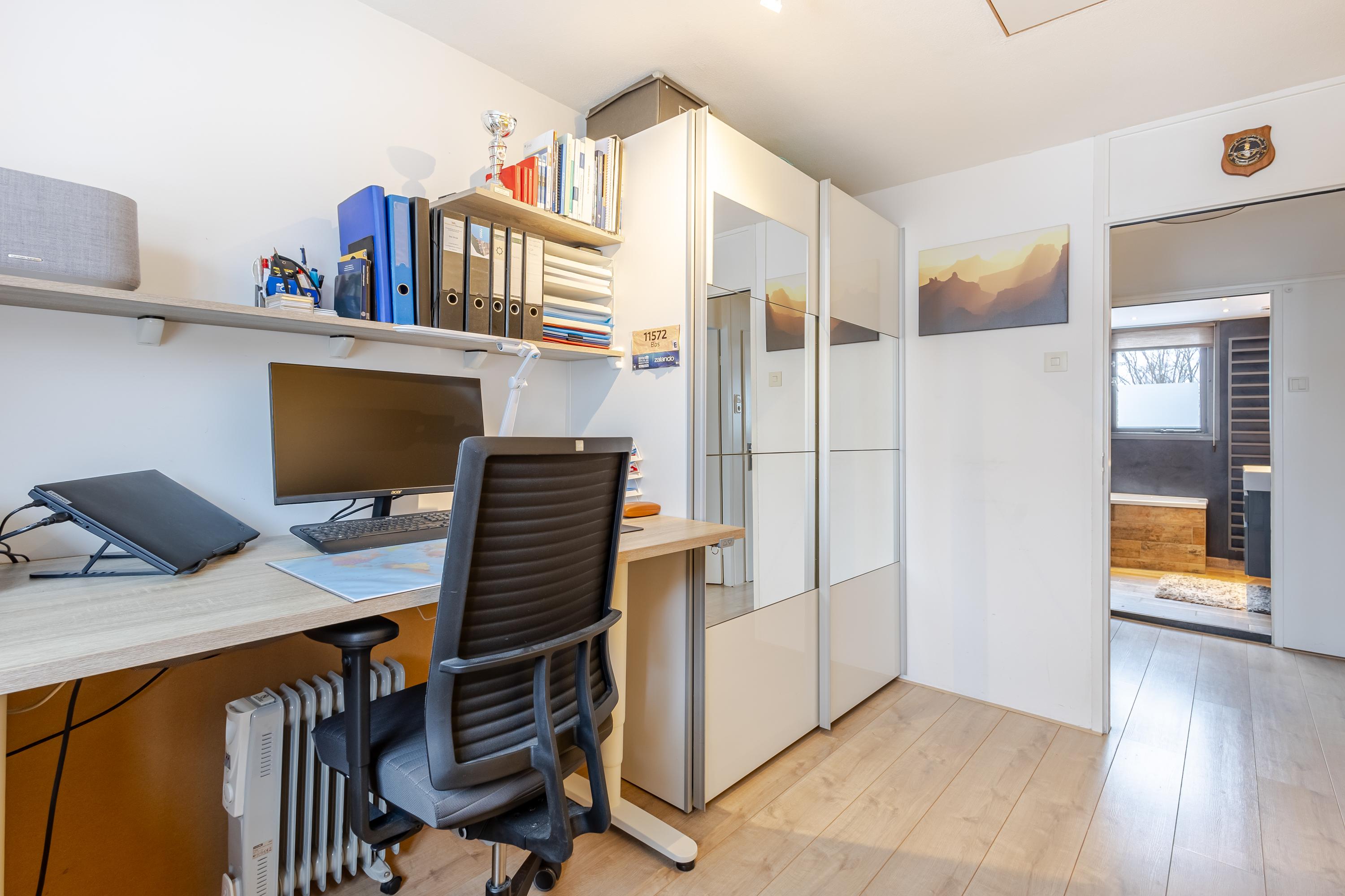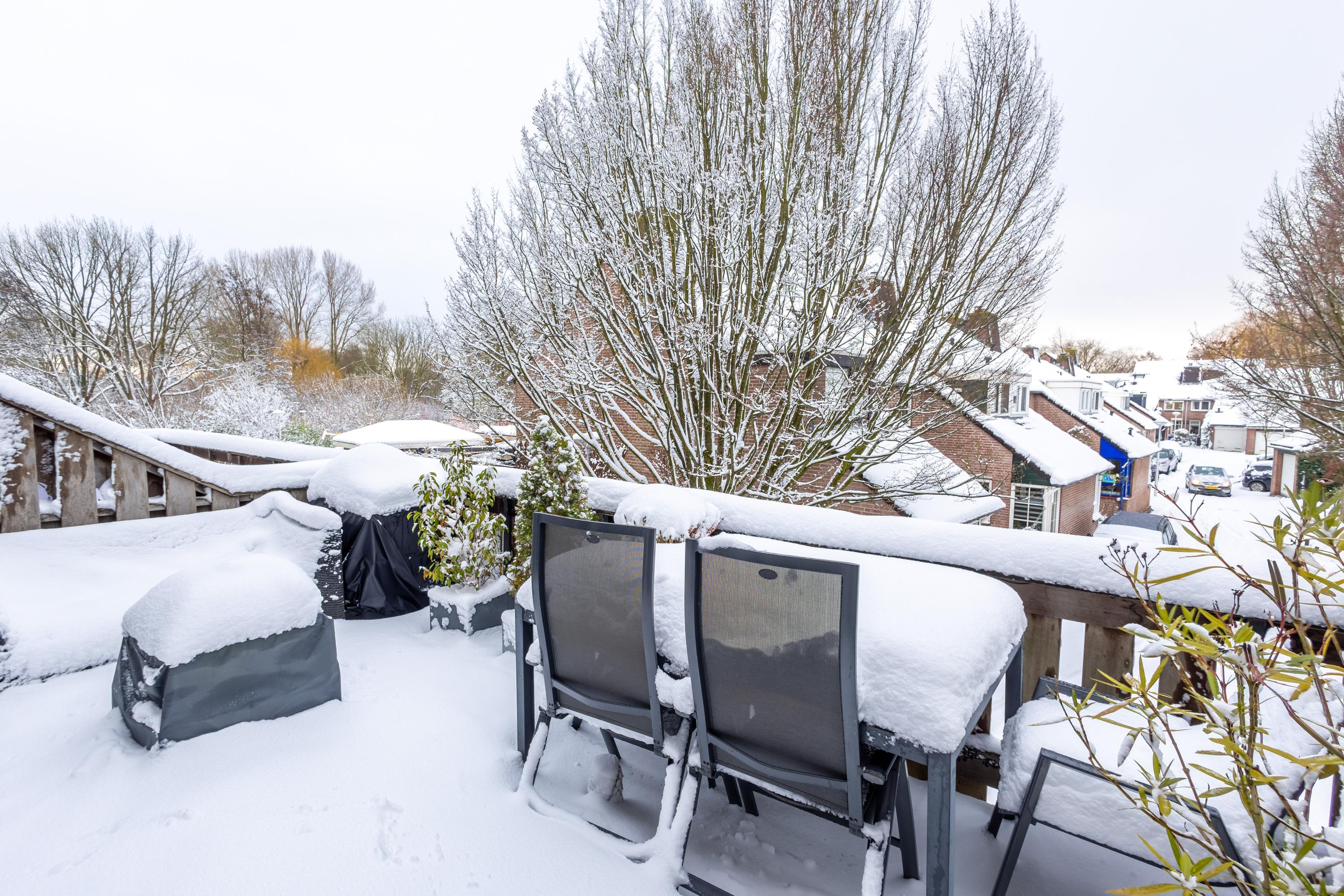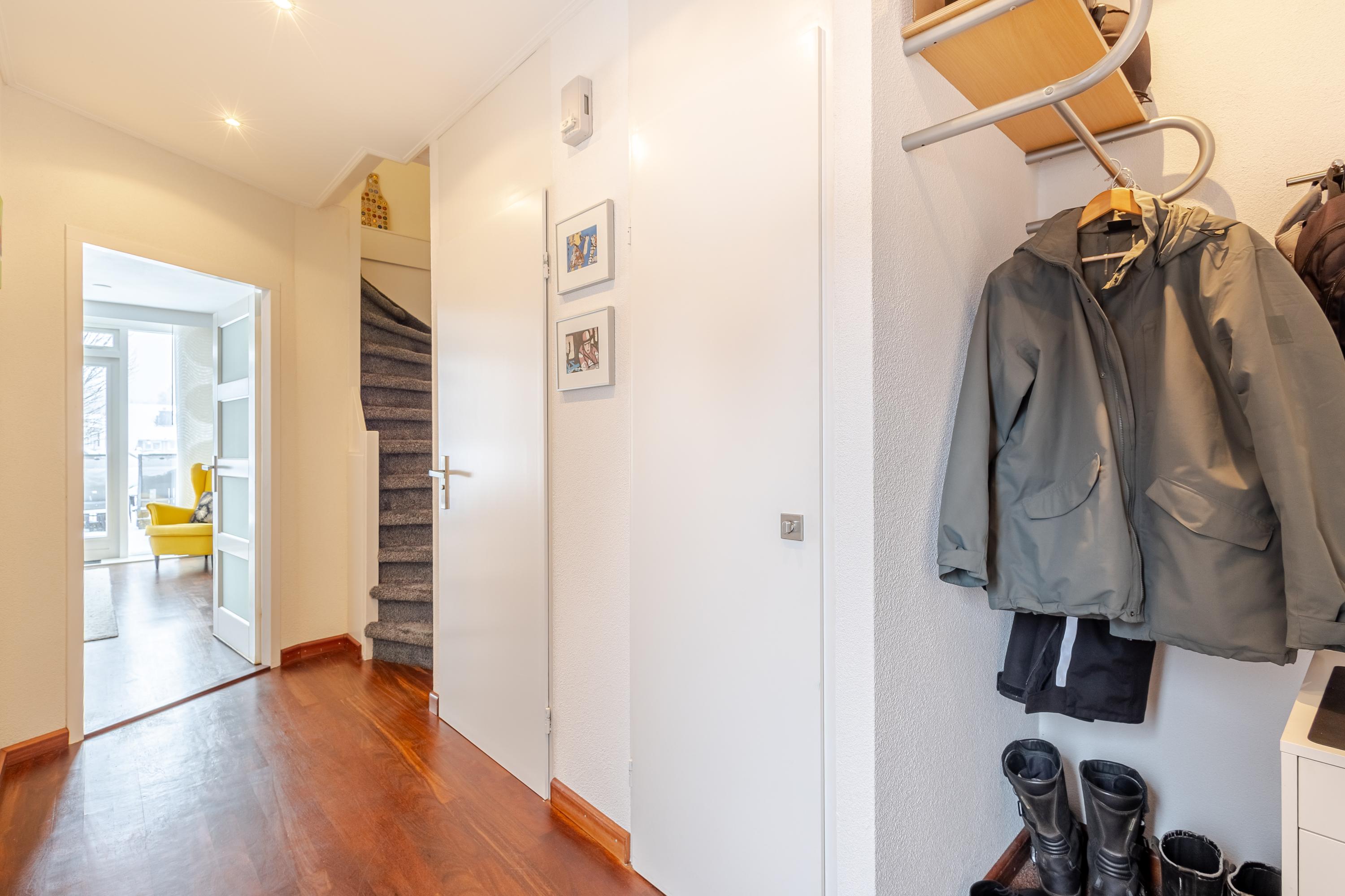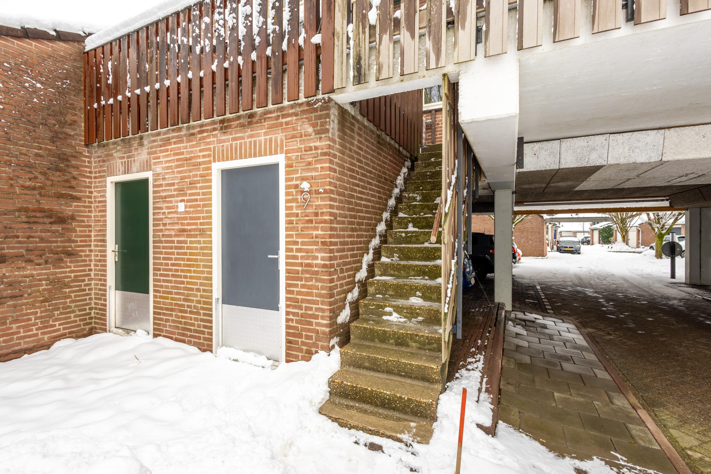 De eigen berging is praktisch gelegen aan de voorzijde van de woning, direct naast de trapopgang. Parkeren doe je op je eigen, overdekte parkeerplaats onder de woning – comfortabel en altijd dichtbij.