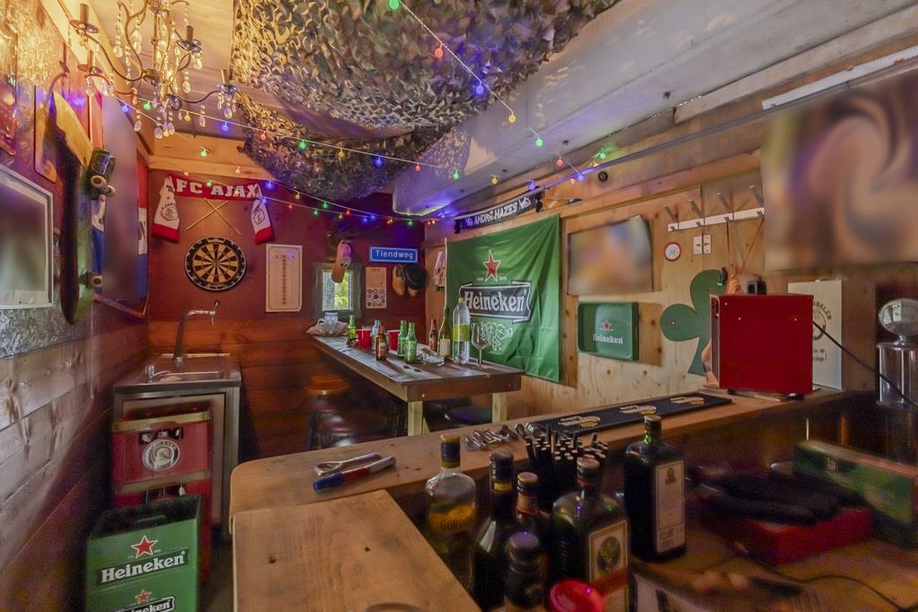 • Een separate afsluitbare berging met toilet en ook nog een eigen bar.