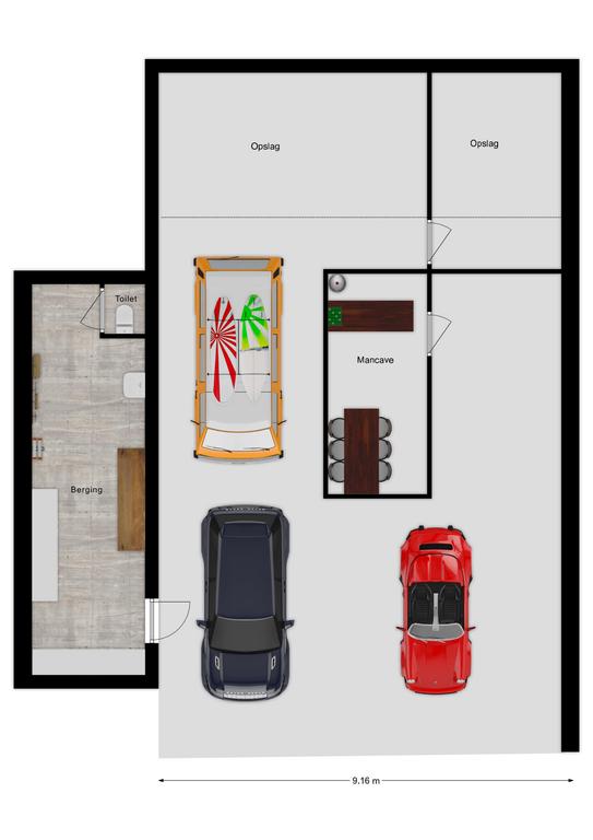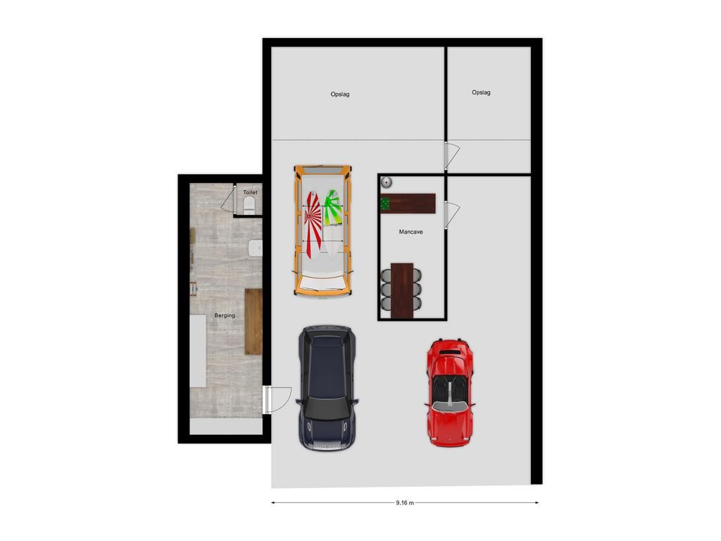 • Een afrit naar het buitenom bereikbare souterrain met plaats voor diverse auto’s en of boten. Ook het stallen van een camper is geen probleem.