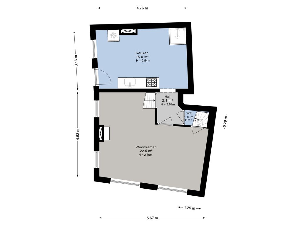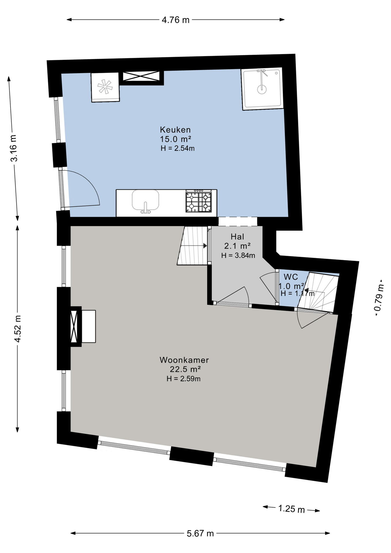 Goed om te weten: deze woning beschikt niet over een tuin of externe bergruimte. Daar staat tegenover dat je een unieke kans krijgt om op een centrale locatie een woning geheel naar eigen inzicht te moderniseren.