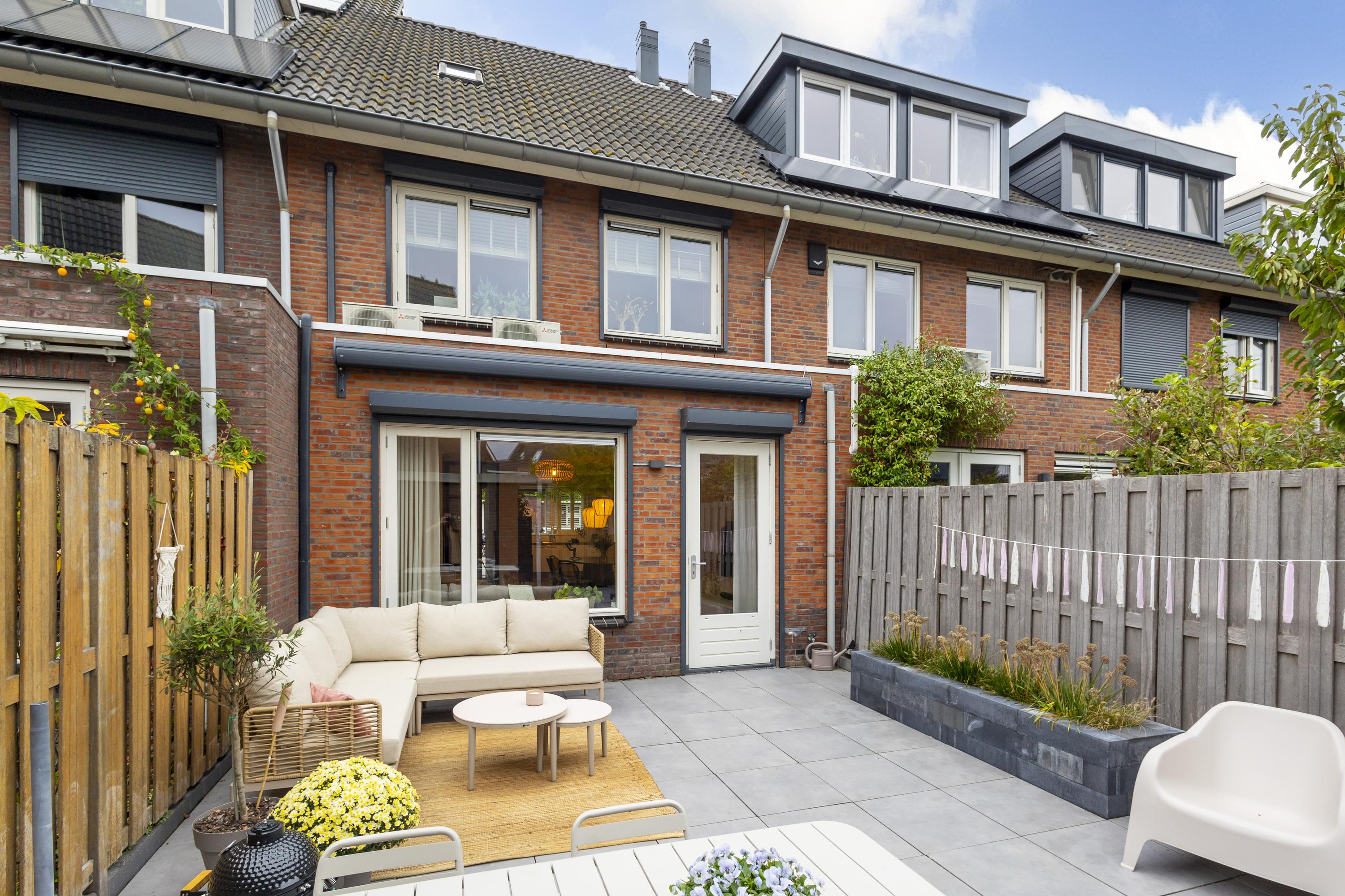 Achter het huis ligt een prachtige tuin op het zonnige zuiden. De tuin is smaakvol aangelegd en is een heerlijke plek voor lange zomeravonden met familie en vrienden. Uiteraard is er een berging aanwezig en een achterom.