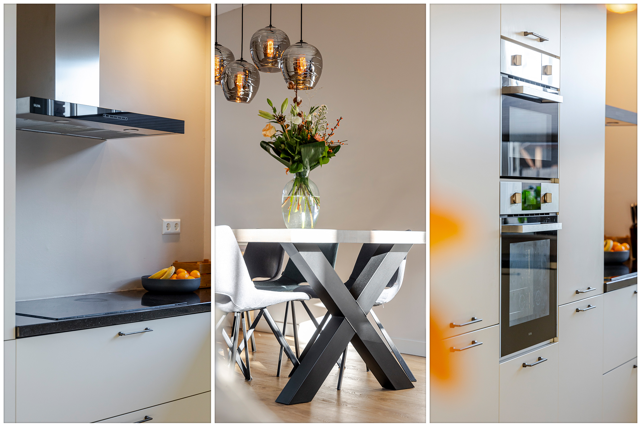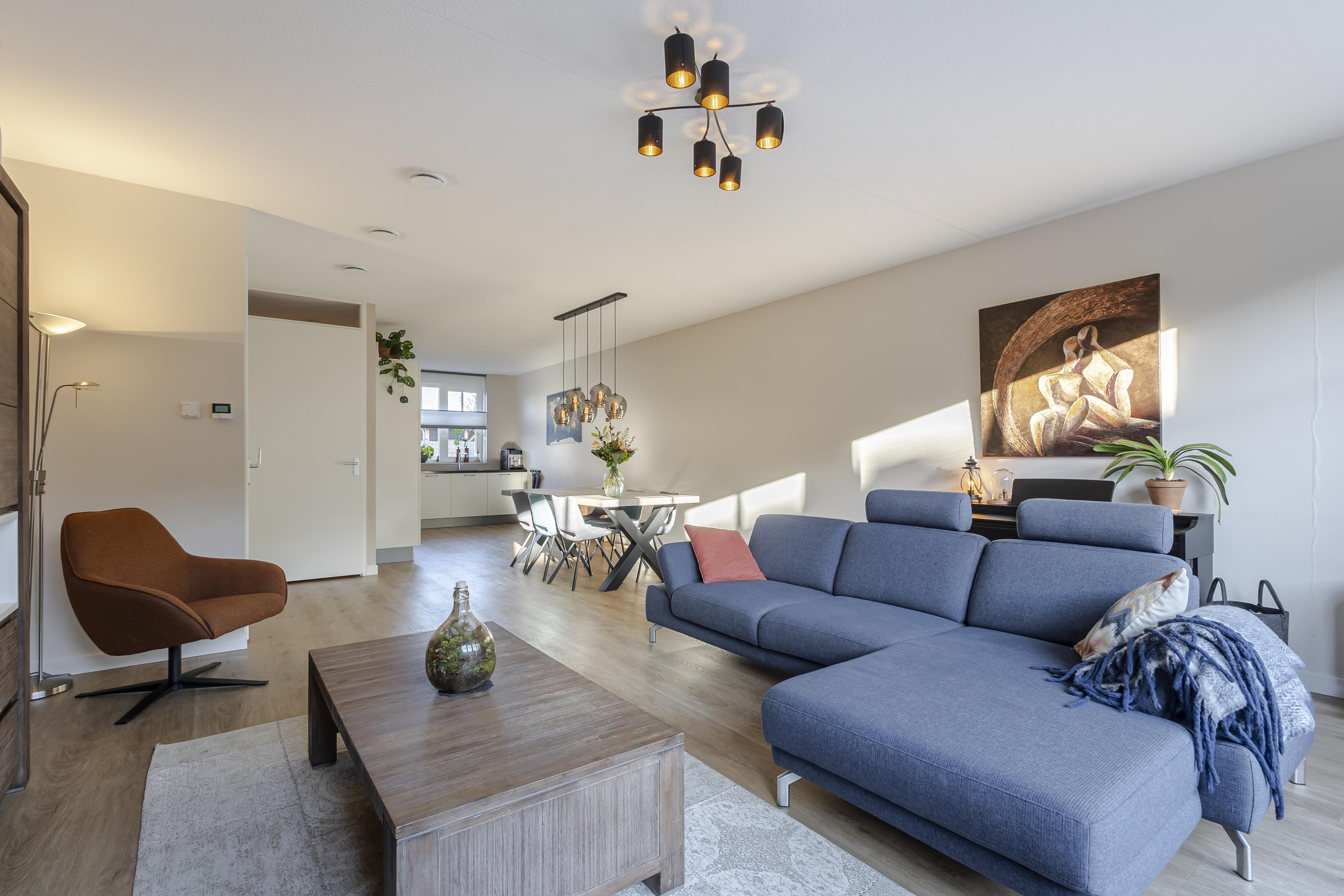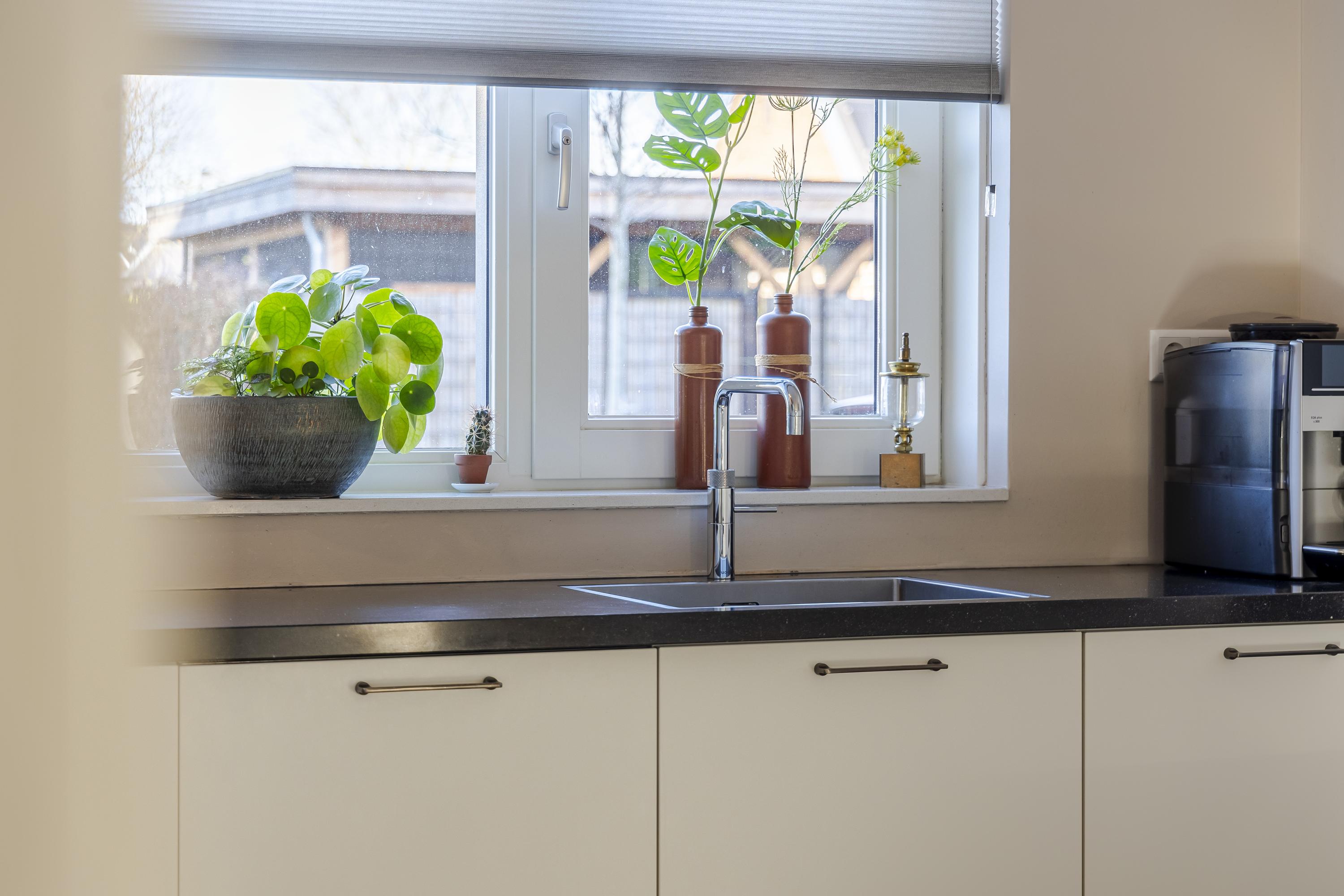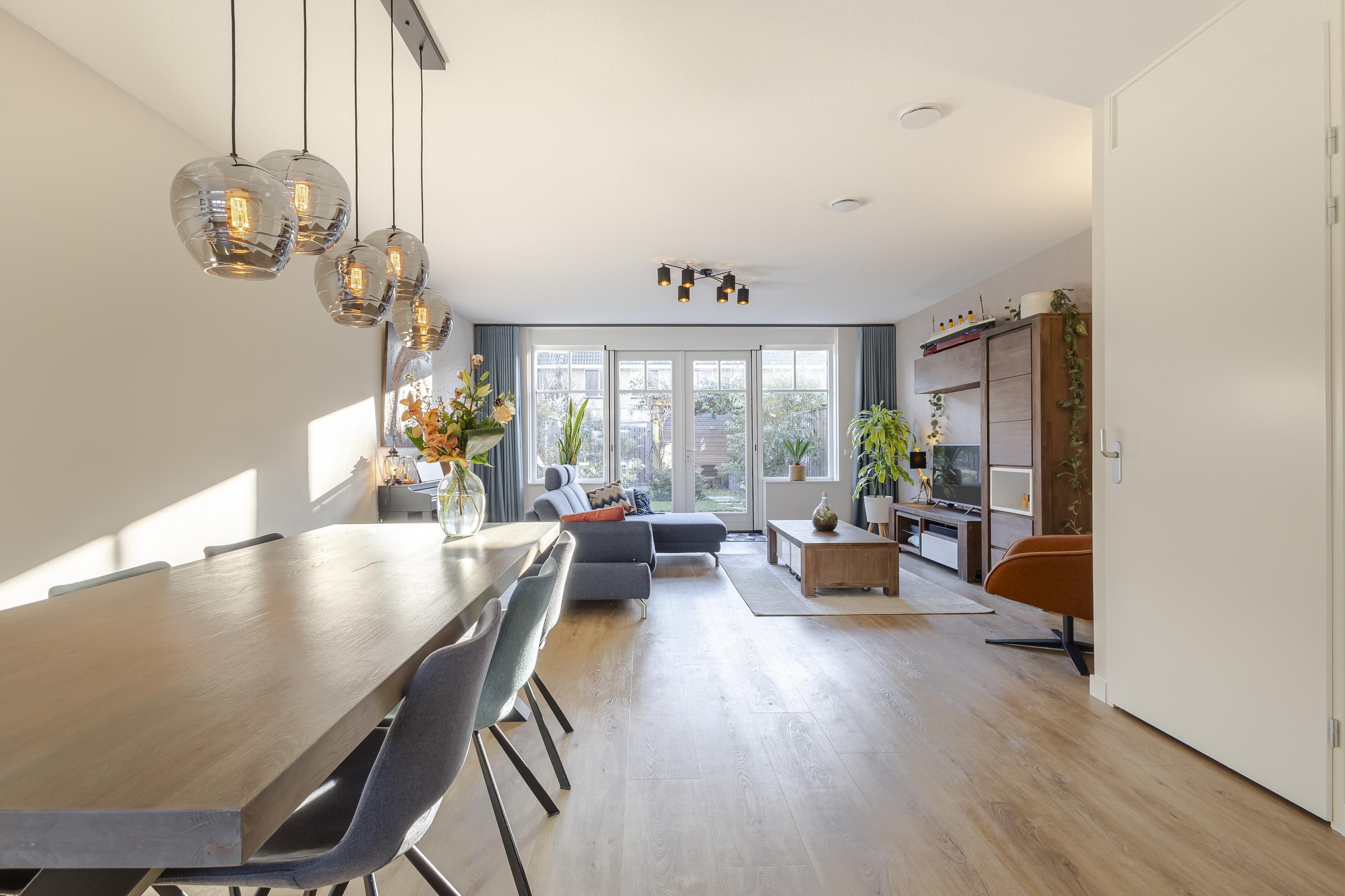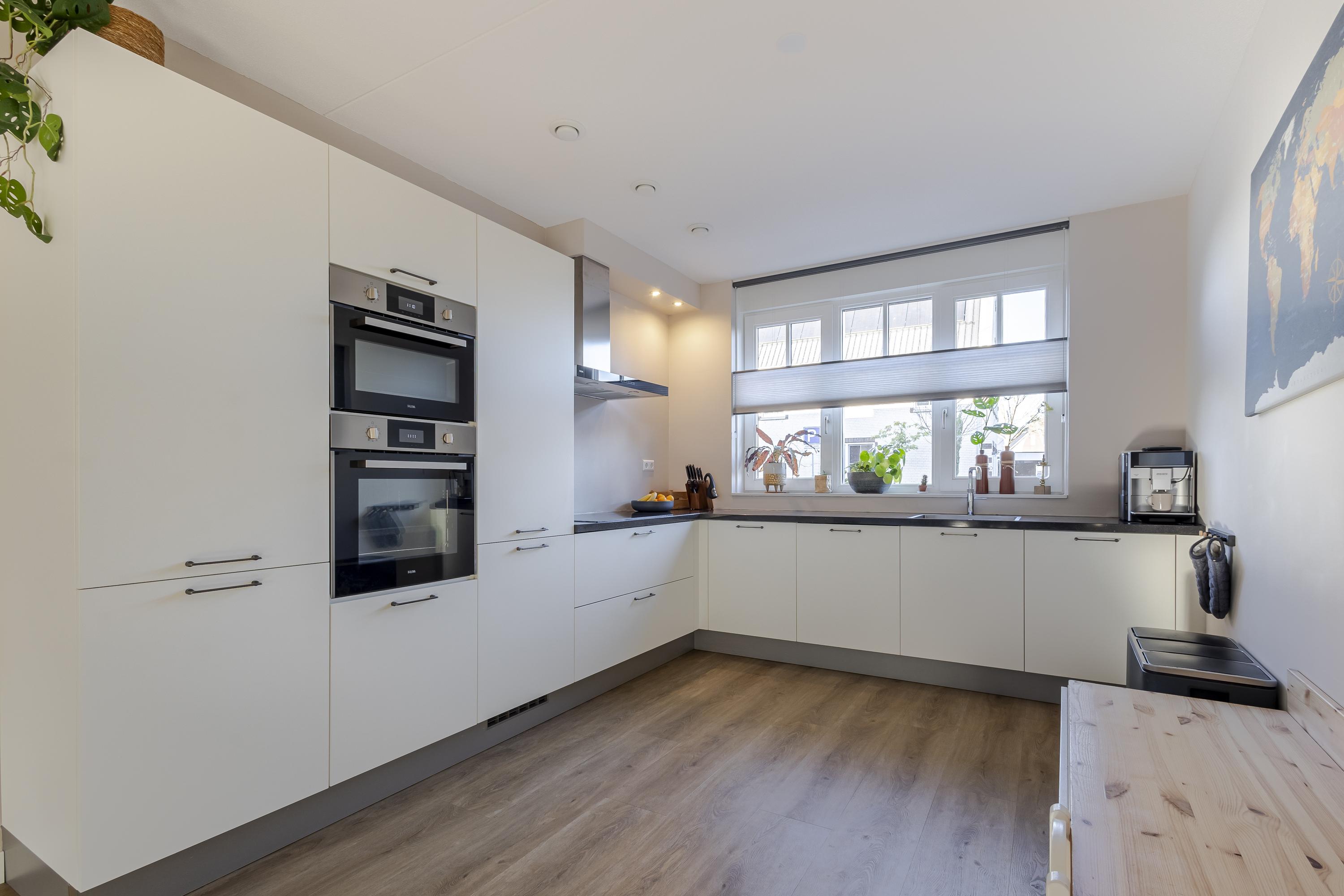 Binnen ervaar je direct de ruimte. De uitgebouwde woonkamer biedt volop mogelijkheden: een speelhoek, piano of grote eettafel past hier moeiteloos. Aan de voorzijde bevindt zich de moderne keuken met hoekopstelling; compleet uitgerust met inbouwapparatuur – koken wordt hier vanzelf een plezier.