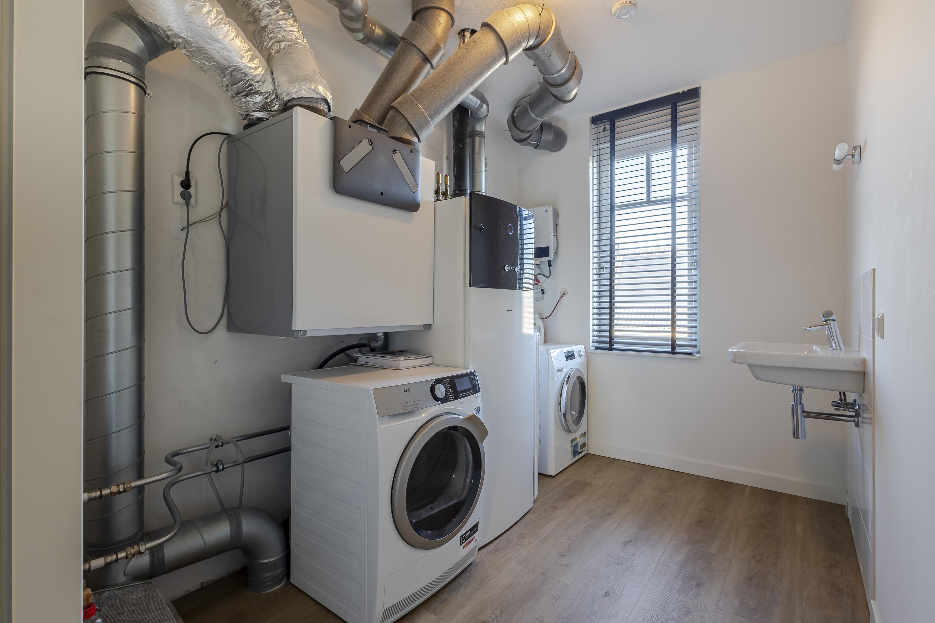De verrassend ruime tweede verdieping beschikt over drie extra kamers en een grote technische ruimte met witgoedaansluitingen en de volledig elektrische Daikin lucht-water warmtepomp. Op het dak liggen 11 zonnepanelen, wat het duurzame plaatje compleet maakt.