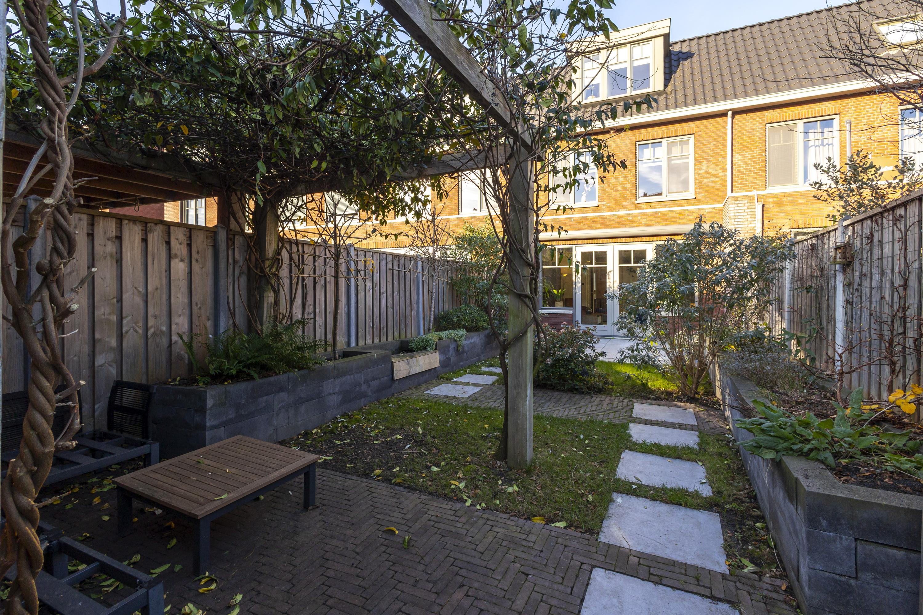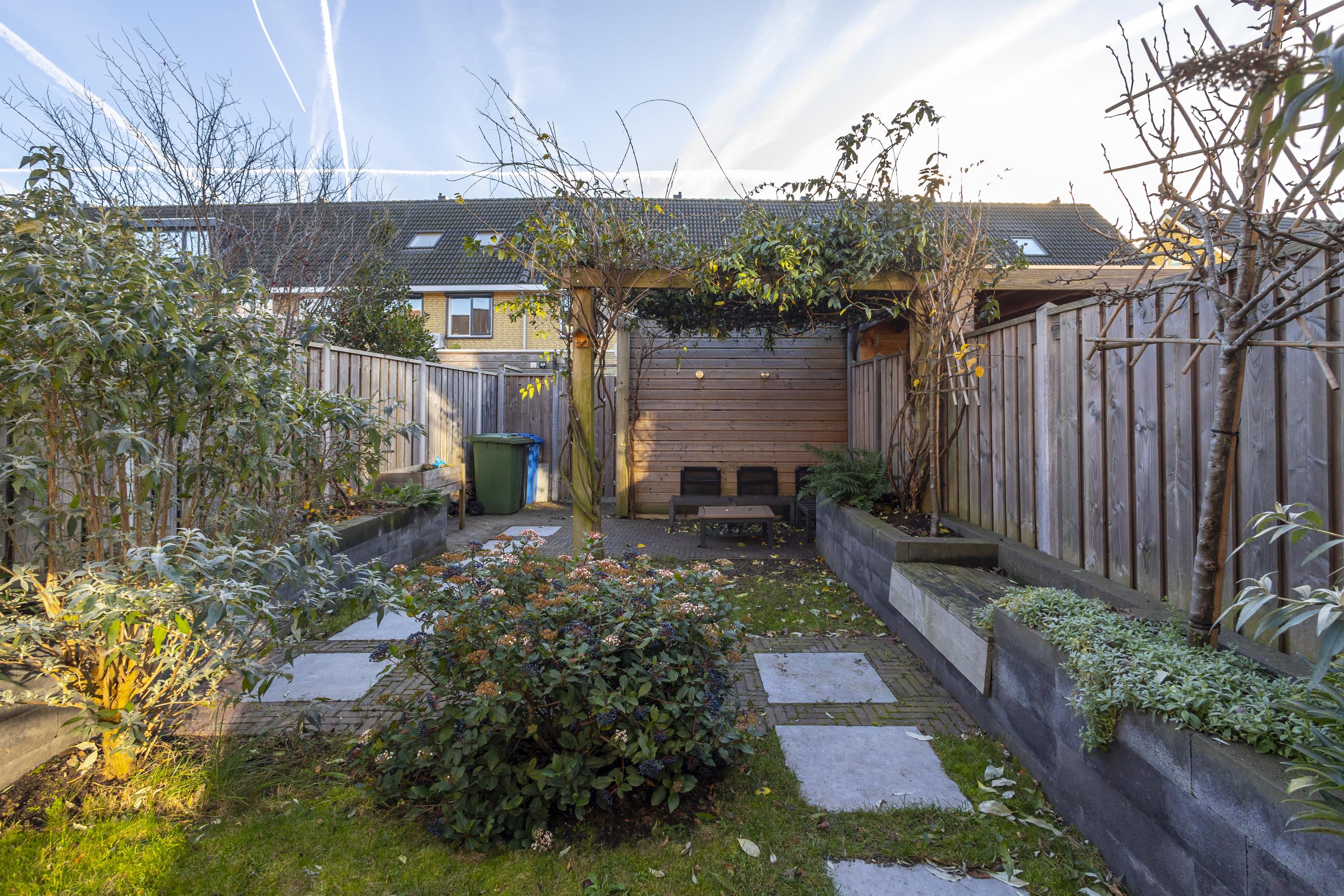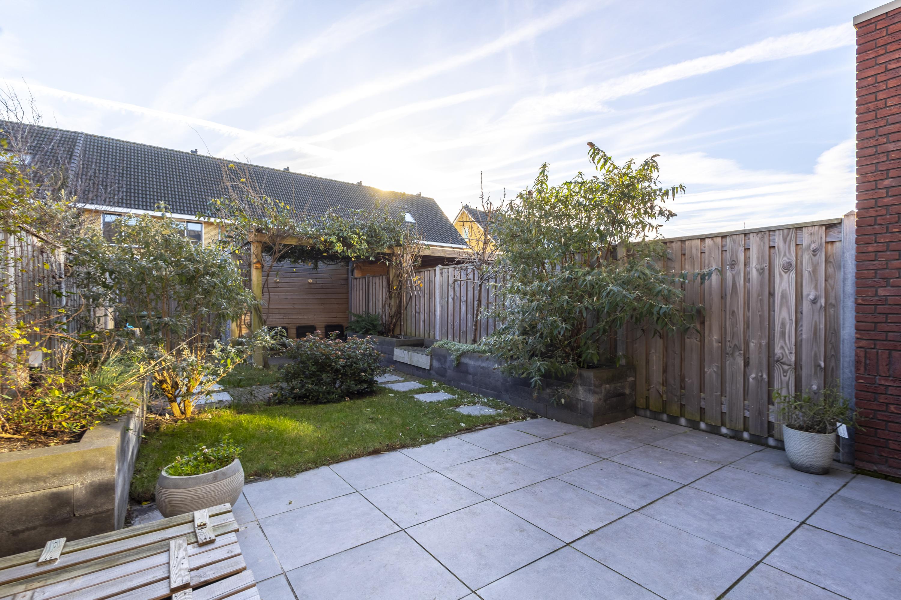 Ook buiten is het genieten. De achtertuin van ruim 13 meter diep is sfeervol aangelegd met sierbestrating, groen gazon, plantenborders en een pergola: een heerlijke plek om te ontspannen, spelen of samen lange zomeravonden door te brengen.