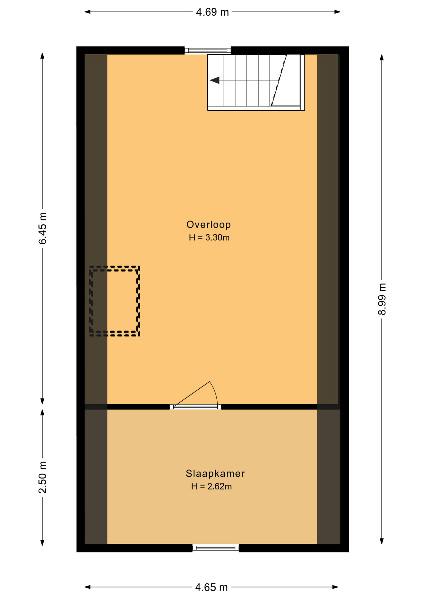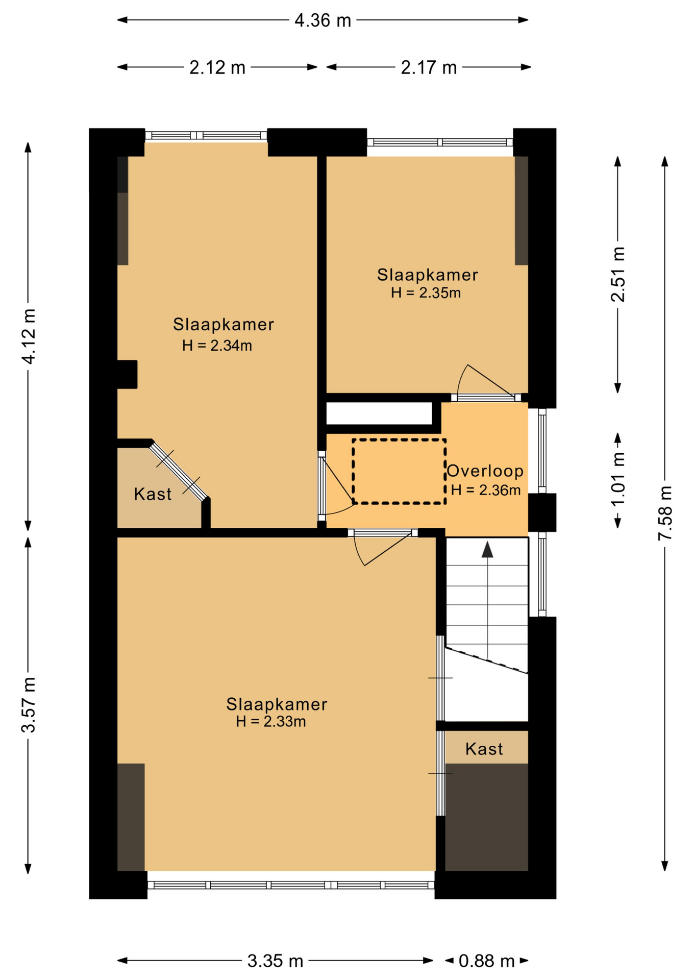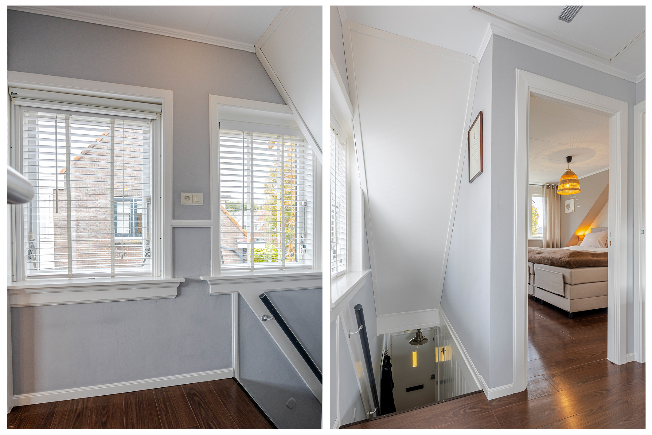 Op de eerste verdieping bevinden zich 3 slaapkamers, waarvan 1 aan de voorzijde en 2 aan de achterzijde. Vanaf de overloop is de vliering (hoogte 2,07m) bereikbaar. De vliering beschikt over een dakraam wat mogelijkheden schept, bijvoorbeeld voor een extra slaapkamer of werkruimte.