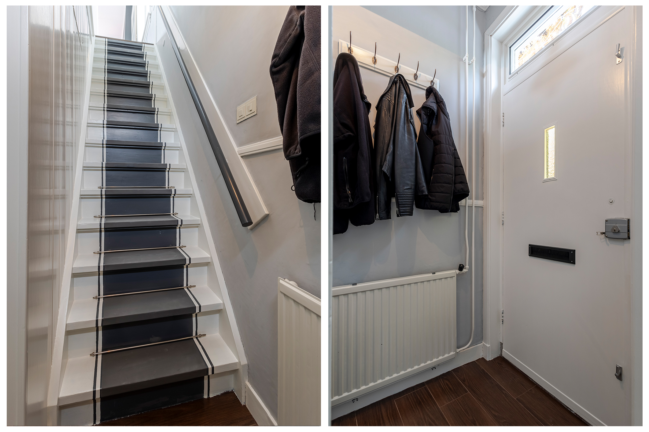 De begane grond is een heerlijke leefruimte: voorzien van een gezellige woonkamer met houtkachel en een verdiepte kelderkast. De, via schuifdeur bereikbare, keuken is een echte leefkeuken, in een hoek opgesteld met extra lichtinval door de lichtkoepel. Hier wil je toch lunchen/dineren met het gezin? De nieuwe badkamer (2025), het toilet, cv-kast en toegang tot de achtertuin maken het geheel compleet.