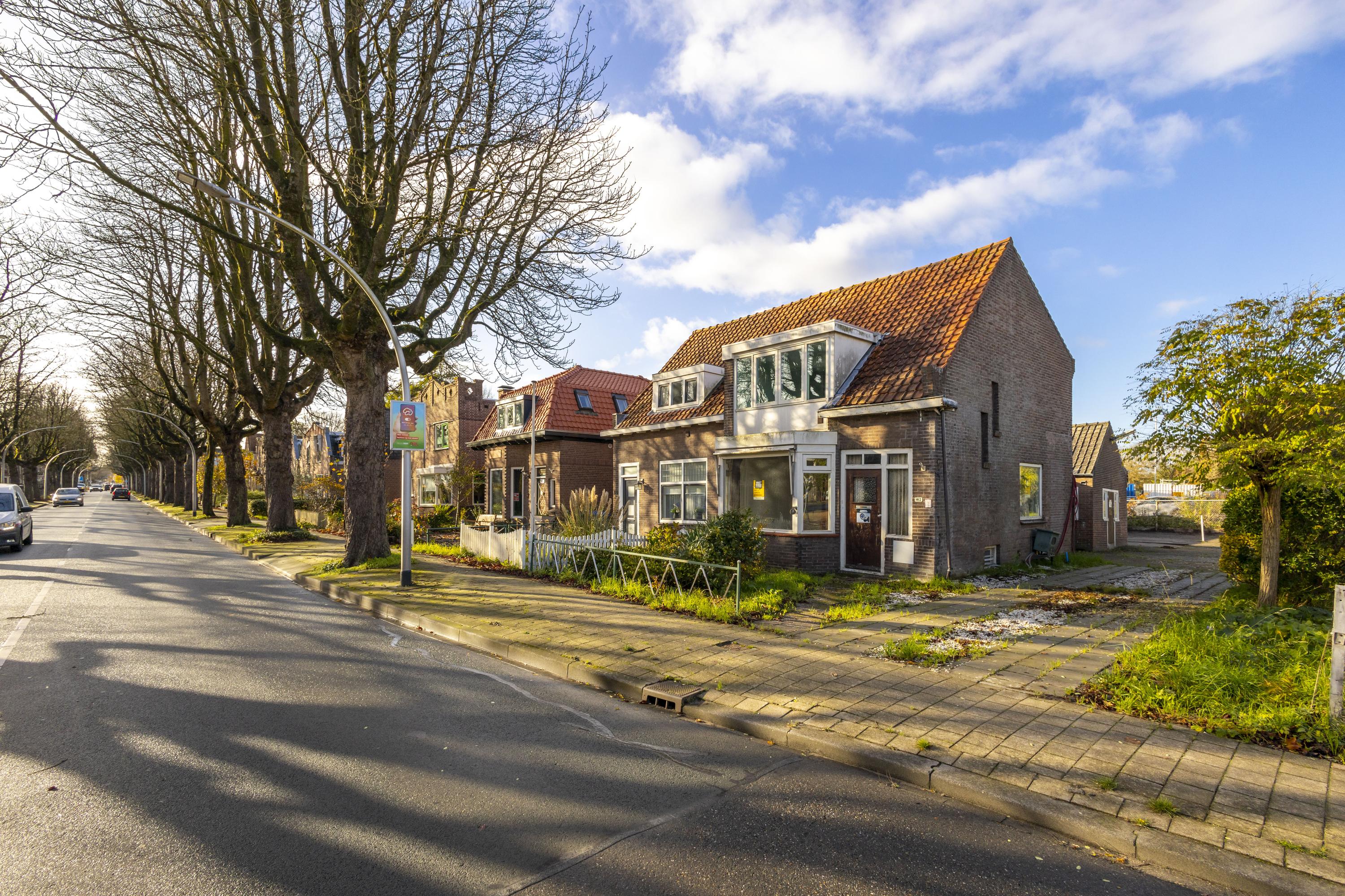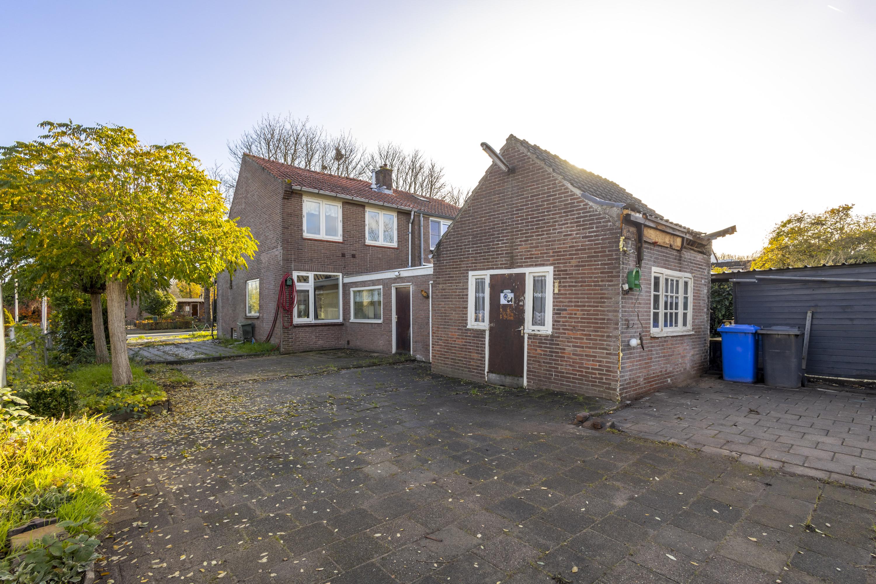 Kluspand/ potentiële 2-onder-1-kapwoning na renovatie op 222 m2 eigen grond aan boomrijke straat.