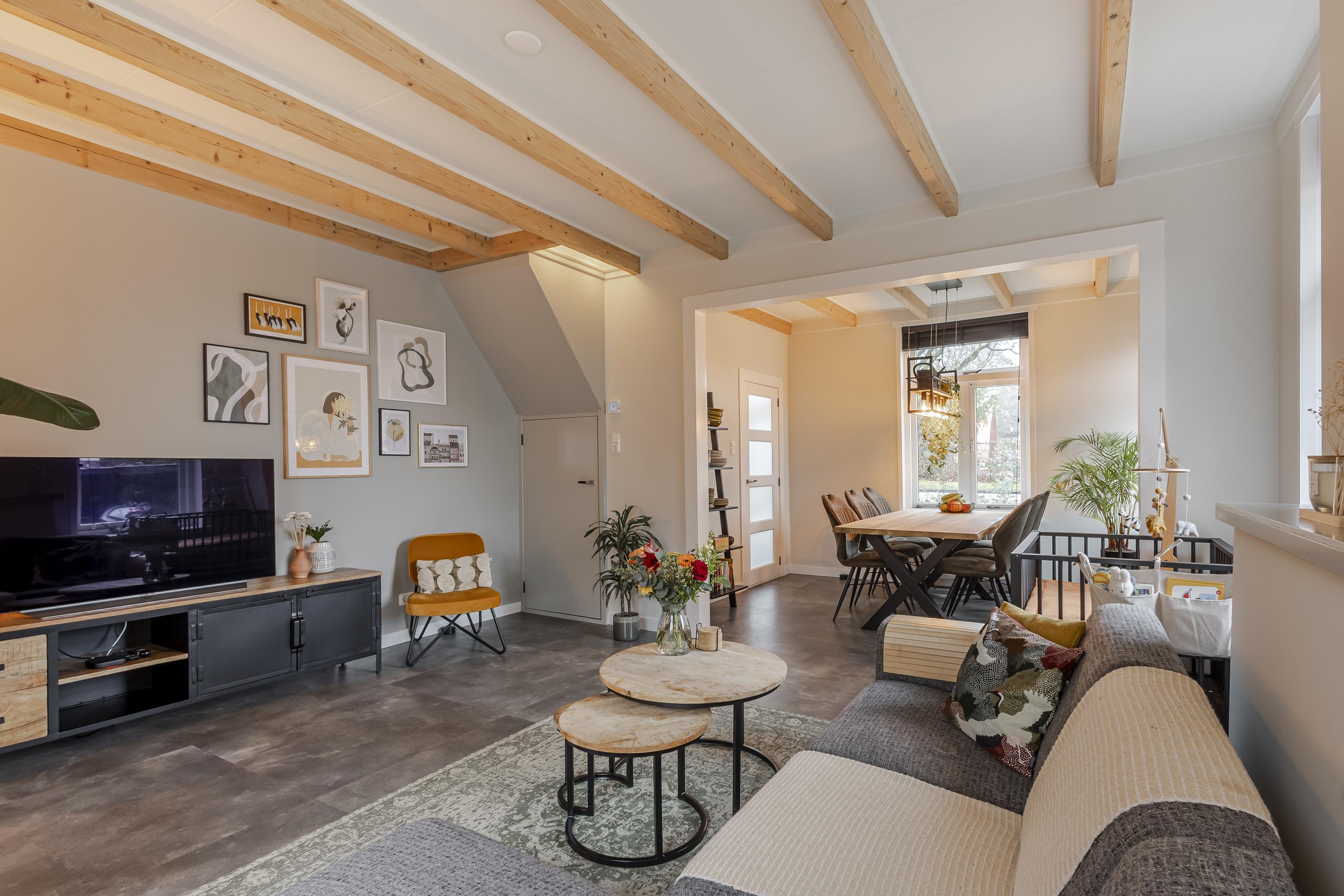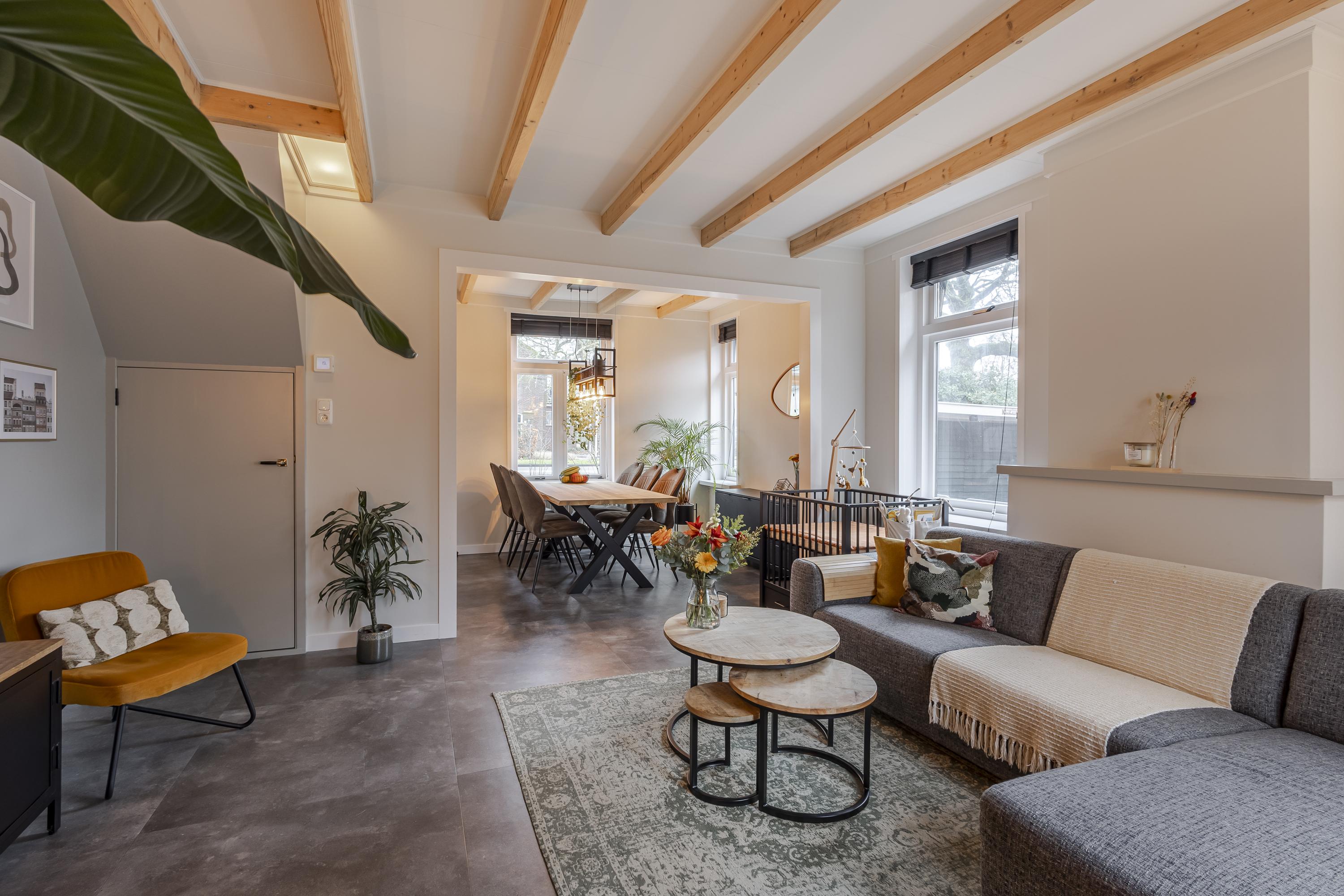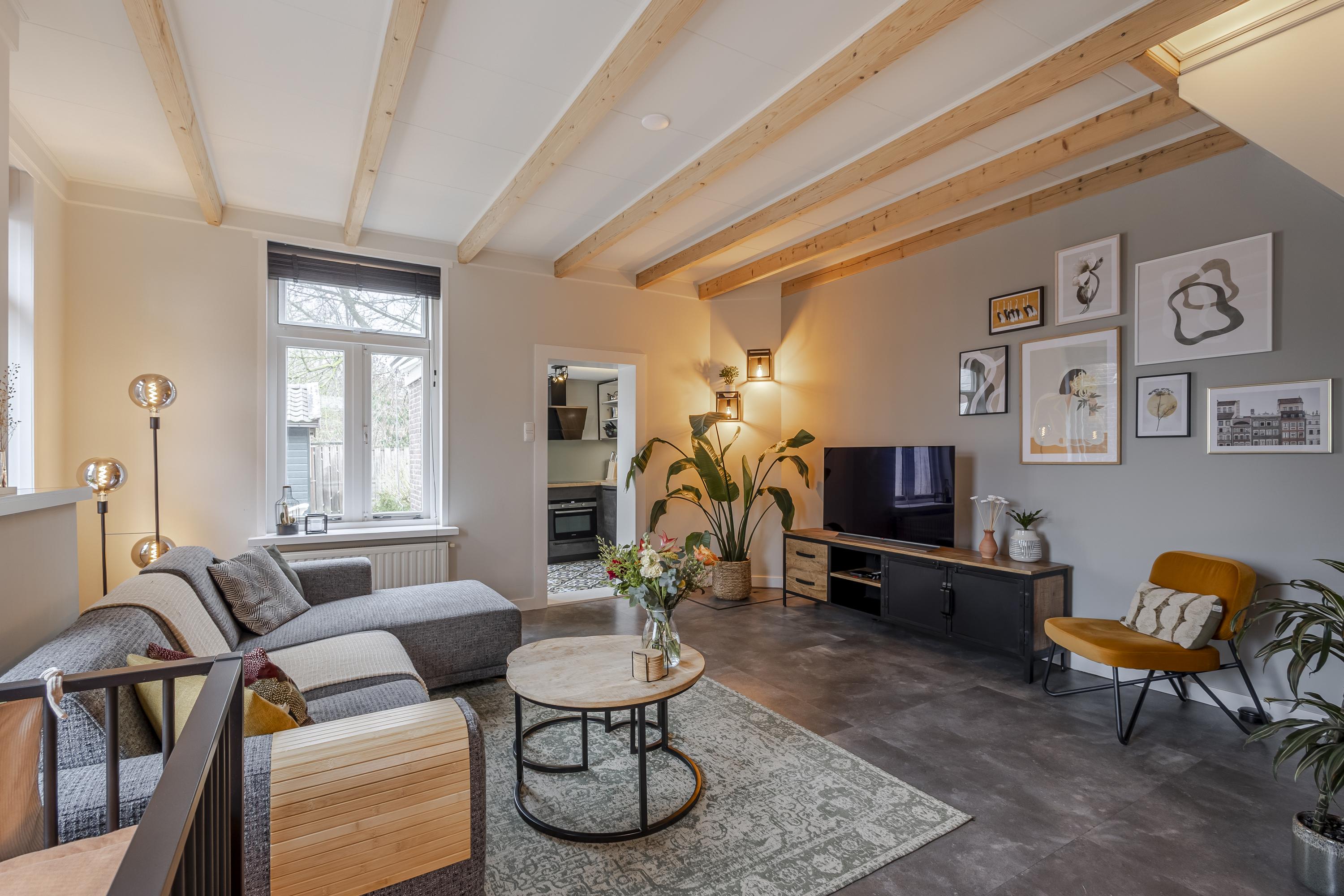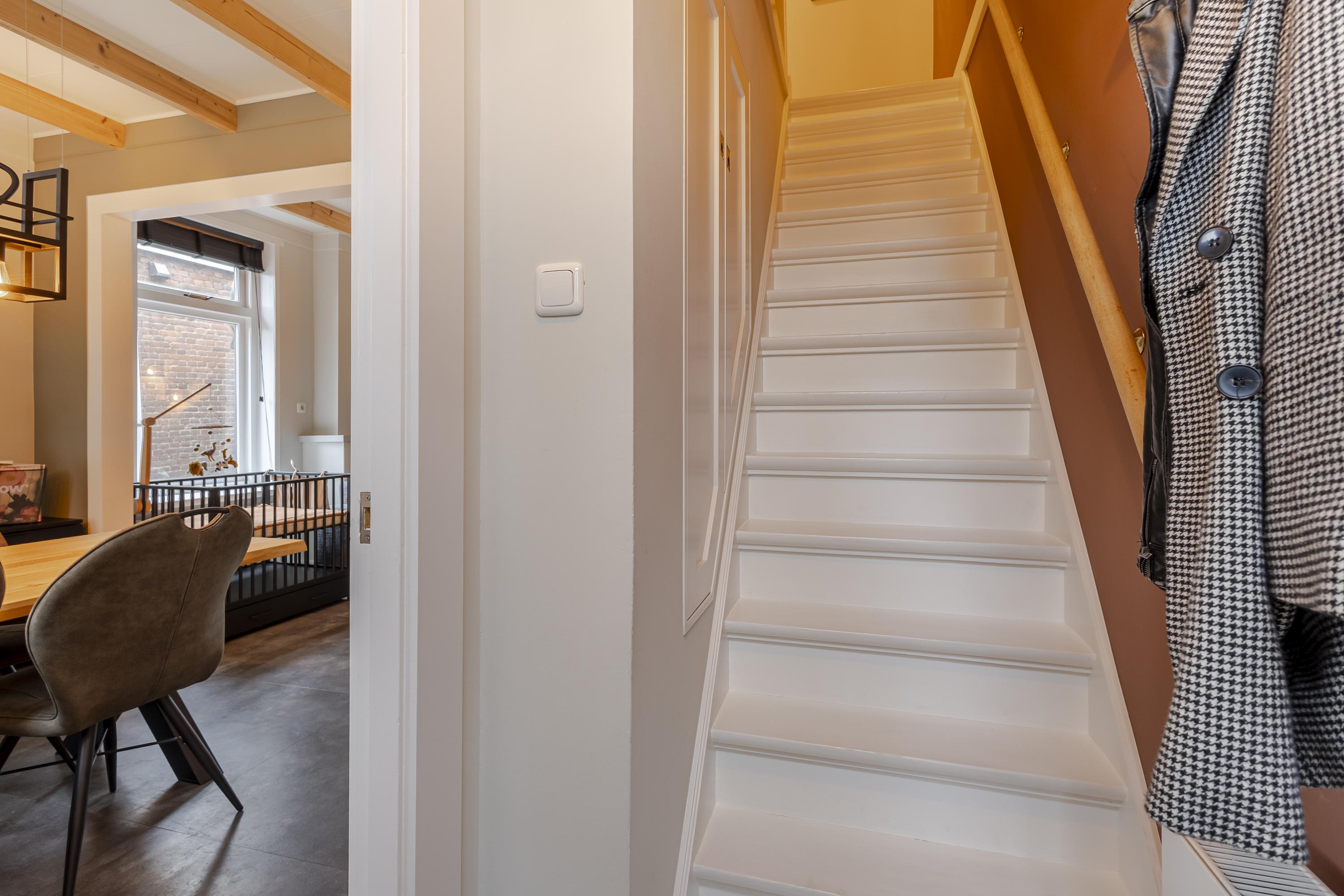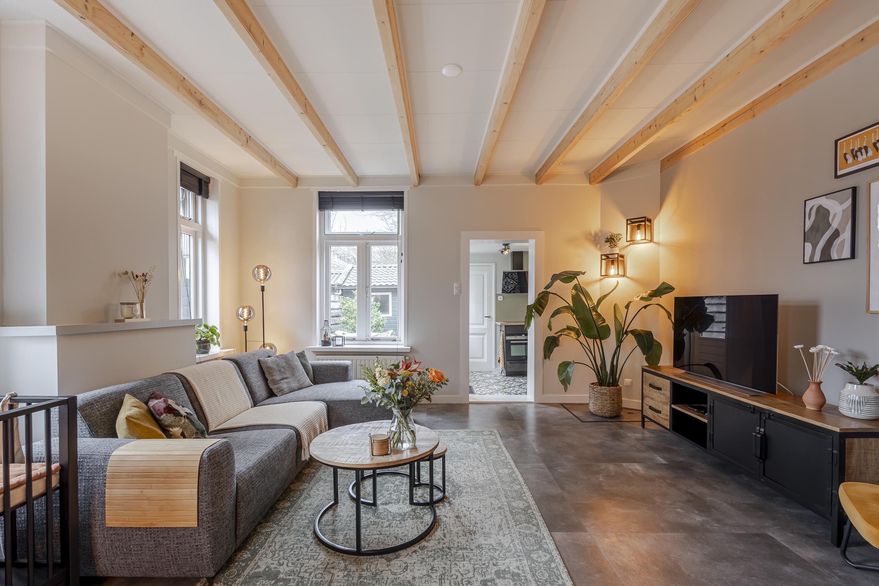 Je stapt een woning binnen met gezellige, huiselijke sferen. Je komt binnen in de hal met meterkast en trapopgang naar de eerste verdieping. De woonkamer vormt het hart van het huis, voorzien van diverse doorkijkjes waardoor er een fijne lichtinval is, maar ook een mooi balkenplafond en praktische trapkast. Een fijne plek om te ontspannen na een drukke werkdag of juist gezellig te dineren. Vanuit de woonkamer is er toegang naar de keuken. De mooie keuken is in een hoek opgesteld met diverse inbouwapparatuur. Vanuit de keuken is er toegang naar het achterportaal met het toilet. Vanuit de keuken is er ook toegang naar de achtertuin. Op de eerste verdieping bevinden zich 2 slaapkamers en een frisse badkamer welke is voorzien van een douche, wastafelmeubel, 2e toilet, wasmachineaansluiting en een designradiator. Zowel aan de voor- als achterzijde zorgen dakkapellen voor extra ruimte en licht. Via de overloop is bovendien de bergzolder (hoogte 1,45m) bereikbaar voor de niet-allerdaagse spullen. Hier is ook de cv-opstelling gevestigd.
