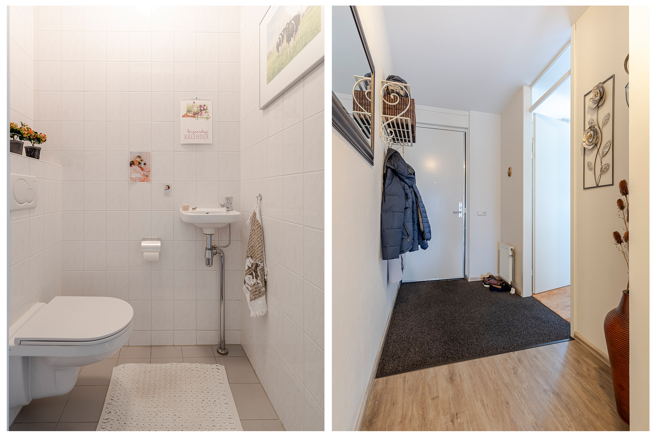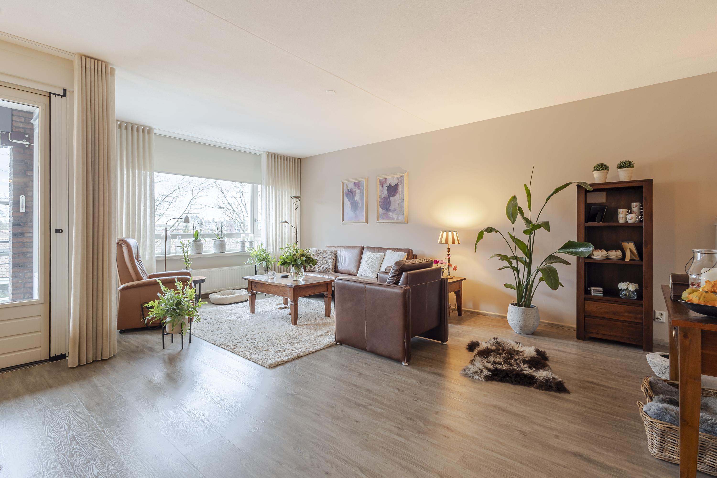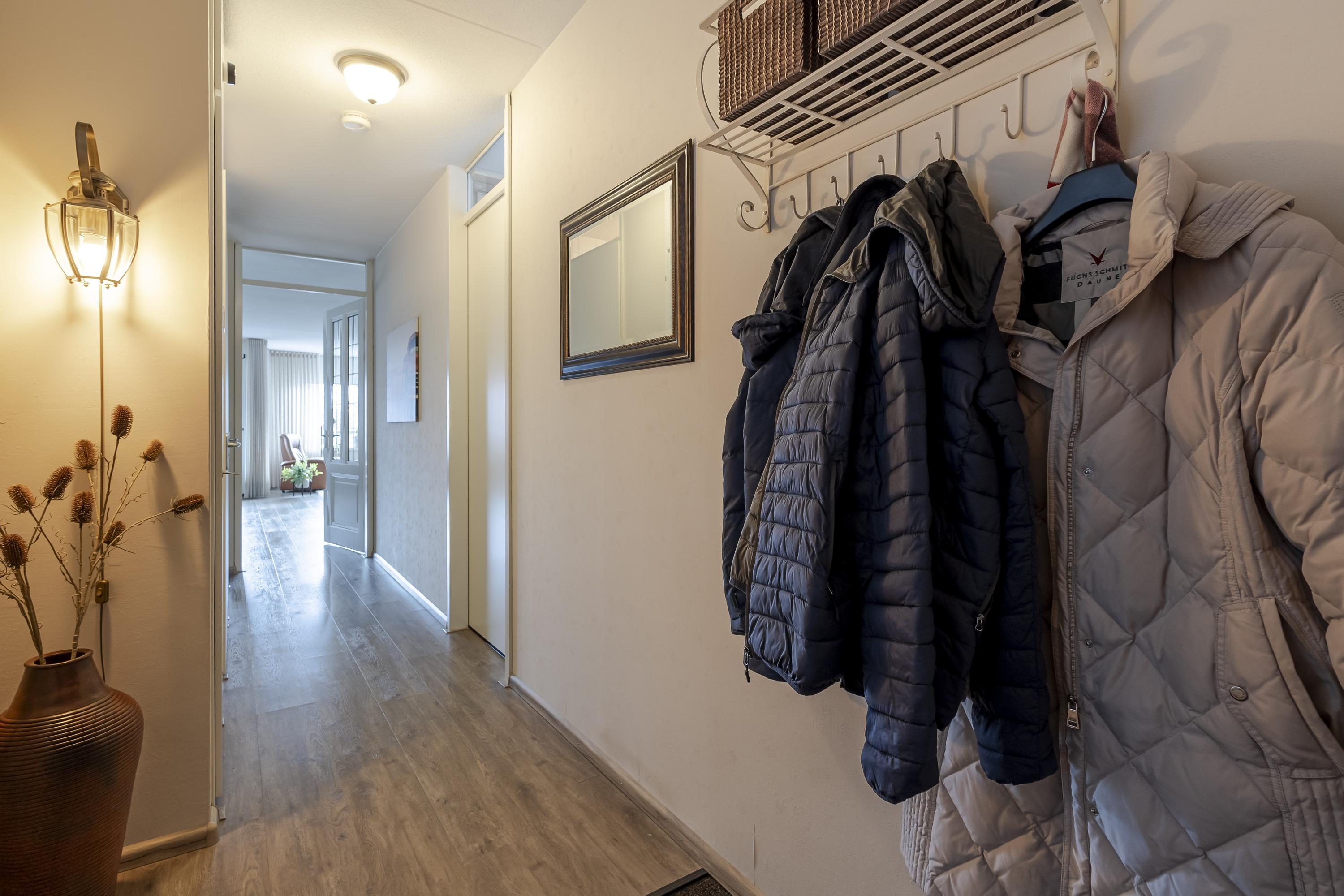 De centrale hal vormt het hart van de woning en biedt toegang tot vrijwel alle vertrekken. De ruime woonkamer nodigt direct uit: een fijne, lichte leefruimte dankzij de grote raampartijen op het zuiden. Vanuit de woonkamer stapt u zo het royale balkon op, waar u volop van de zon kunt genieten. De open keuken sluit hier naadloos op aan en is uitgevoerd in een hoekopstelling met diverse inbouwapparatuur. Aangrenzend bevindt zich de bijkeuken/technische ruimte met witgoedaansluitingen, de cv-ketel en extra bergruimte.