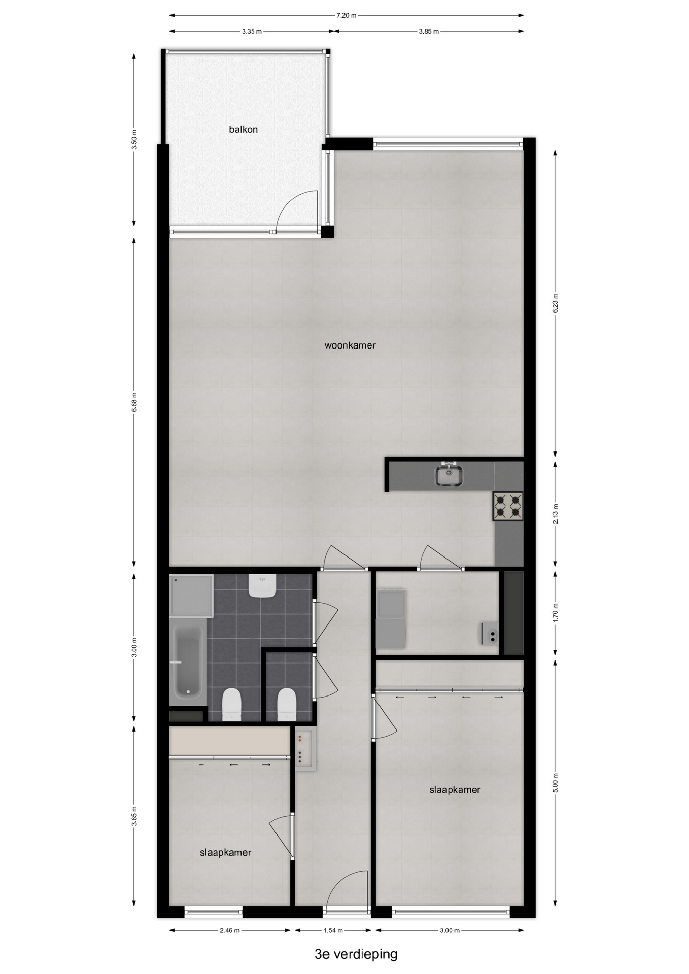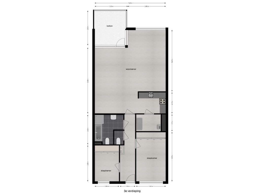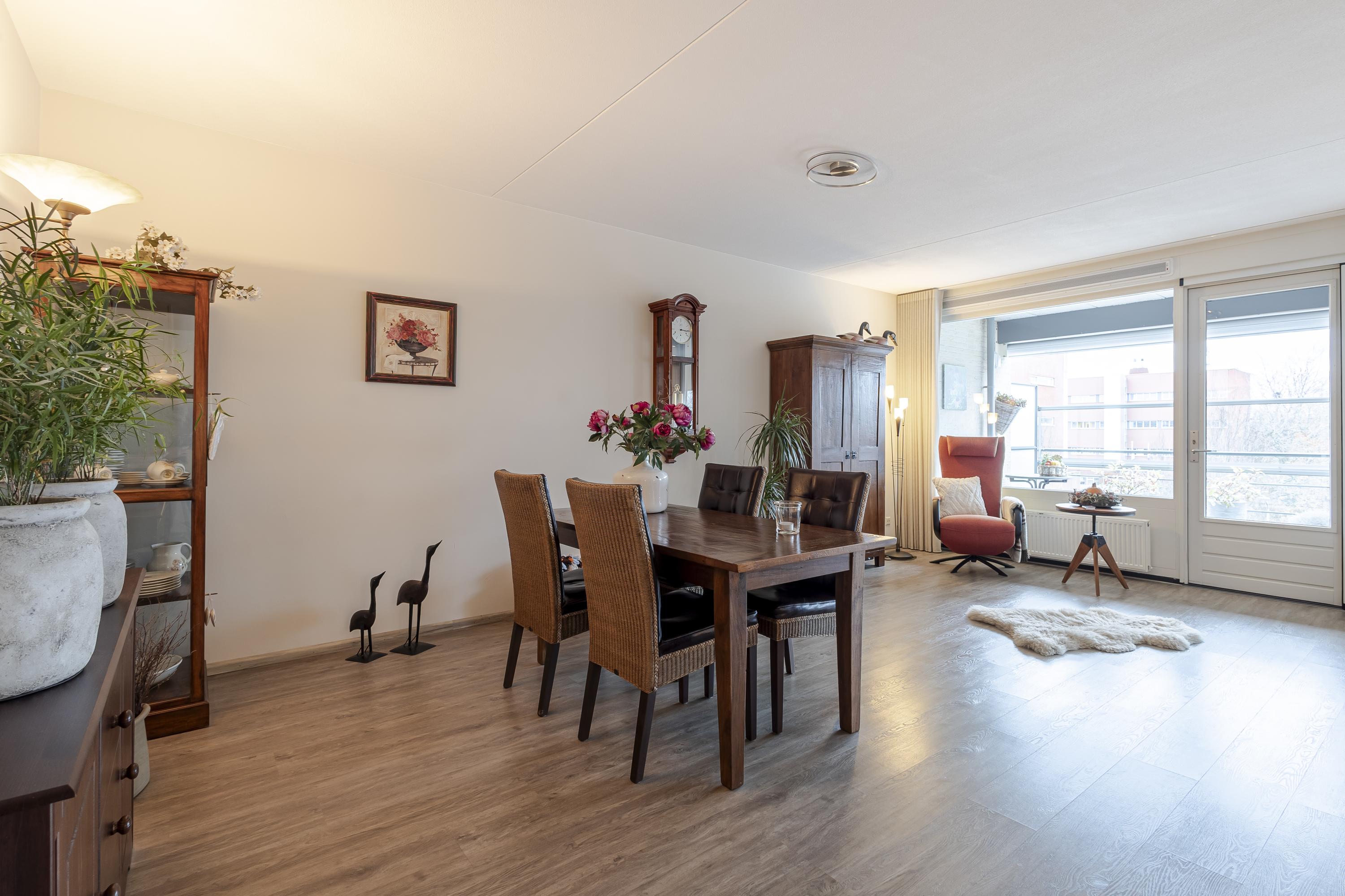 De centrale hal vormt het hart van de woning en biedt toegang tot vrijwel alle vertrekken. De ruime woonkamer nodigt direct uit: een fijne, lichte leefruimte dankzij de grote raampartijen op het zuiden. Vanuit de woonkamer stapt u zo het royale balkon op, waar u volop van de zon kunt genieten. De open keuken sluit hier naadloos op aan en is uitgevoerd in een hoekopstelling met diverse inbouwapparatuur. Aangrenzend bevindt zich de bijkeuken/technische ruimte met witgoedaansluitingen, de cv-ketel en extra bergruimte.