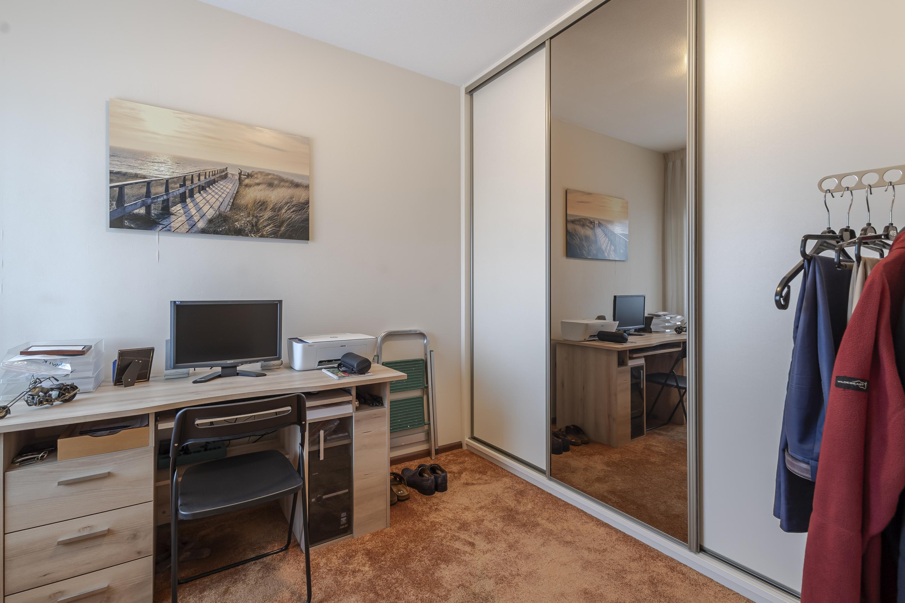 De twee slaapkamers zijn gelegen aan de galerijzijde en beschikken beide over grote schuifwandkasten. Naast het separate toilet is er in de ruime badkamer een tweede toilet aanwezig. De badkamer is compleet ingericht met een ligbad, een douche en een wastafelmeubel.