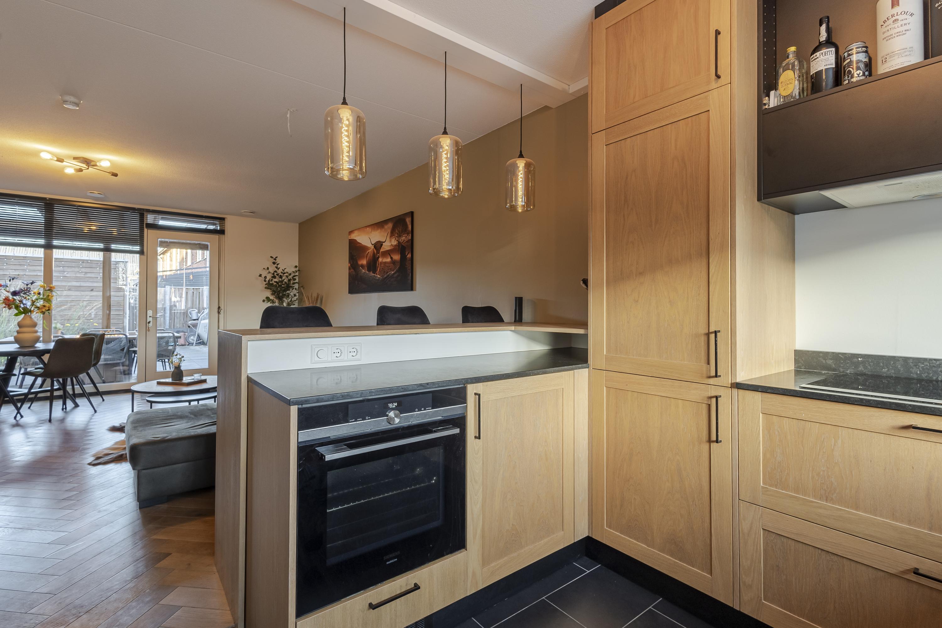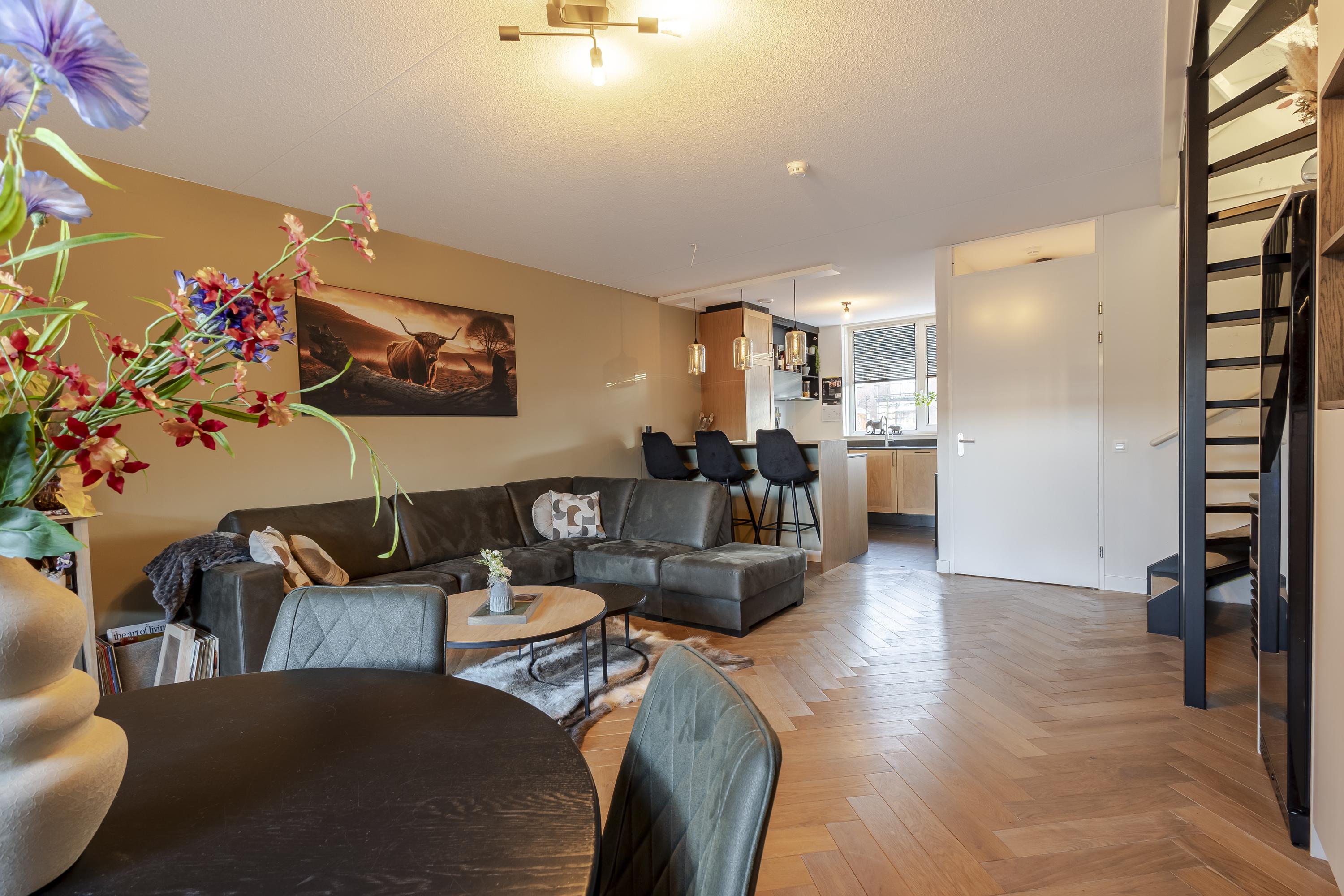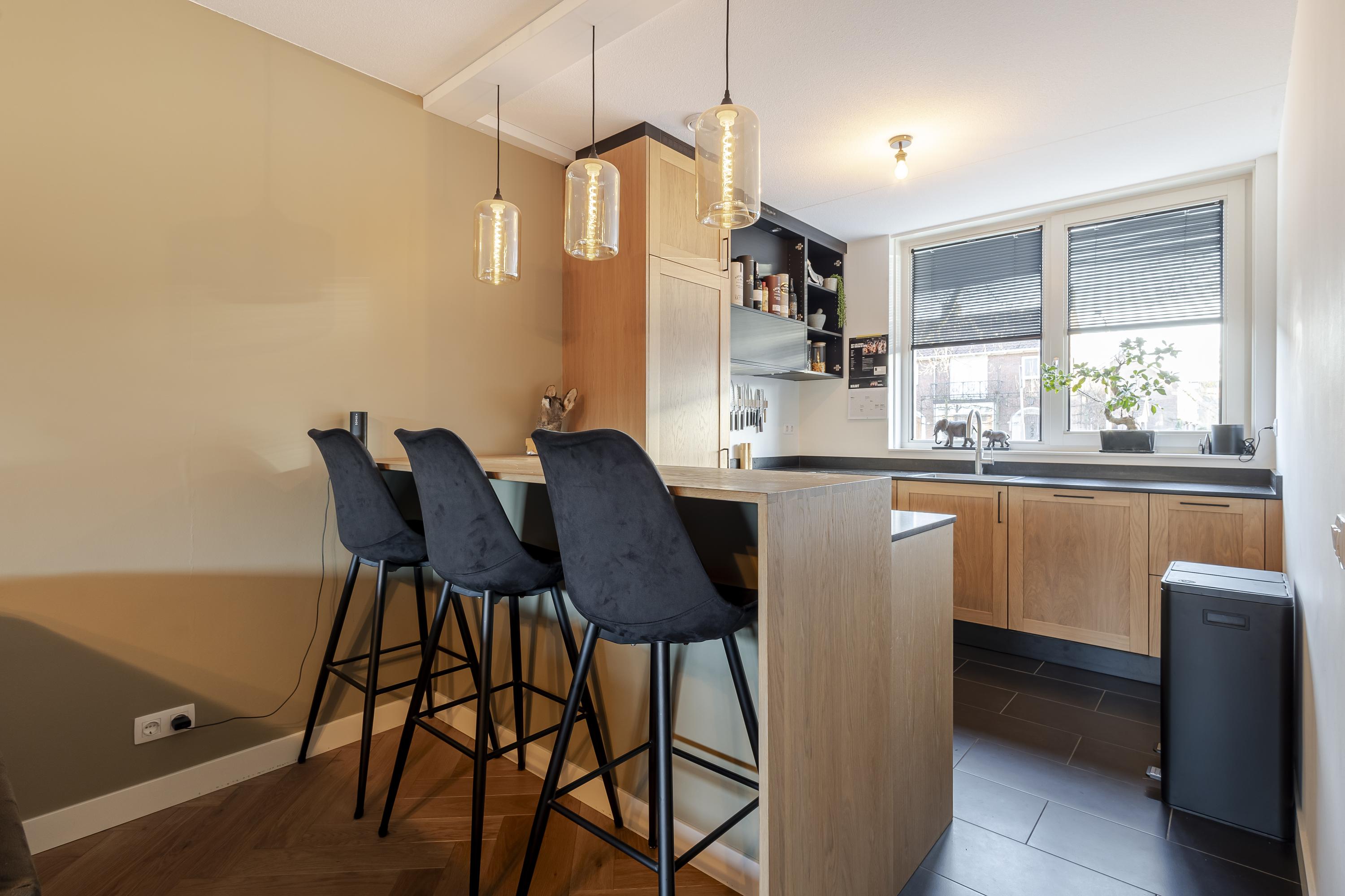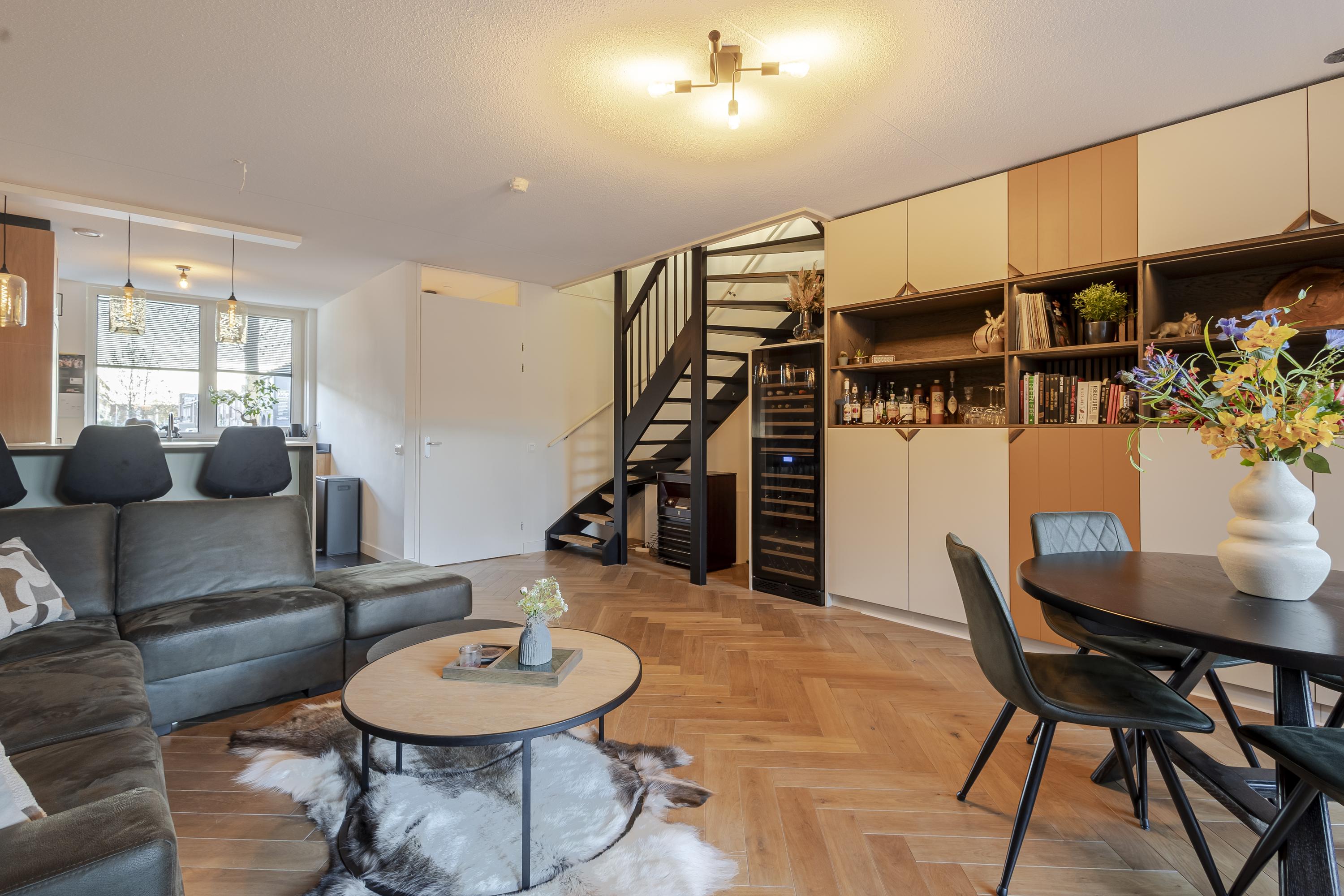 Via de aantrekkelijke entree loop je door naar binnen met de kast met warmtepomp + boiler, meterkast, het toilet en toegang tot de woonkamer. De woonkamer loopt vloeiend over in de open keuken mét bar en mooi uitzicht over de Thorbeckelaan. De woonkamer vormt het hart van het huis en staat in directe verbinding met de achtertuin waar een fraaie overkapping aan de woning grenst. Op de eerste verdieping bevinden zich 3 slaapkamers en een badkamer met alle gemakken van nu. Heb je meer ruimte nodig? Op zolder zijn nog méér mogelijkheden. Je kunt er bijv. 1 of 2 extra slaapkamers realiseren waardoor je van deze woning zonder al te veel moeite een volwaardige 6-kamerwoning maakt. In de techniekkast is er ruimte voor o.a. wasapparatuur, omvormer van 9 zonnepanelen en de WTW installatie.