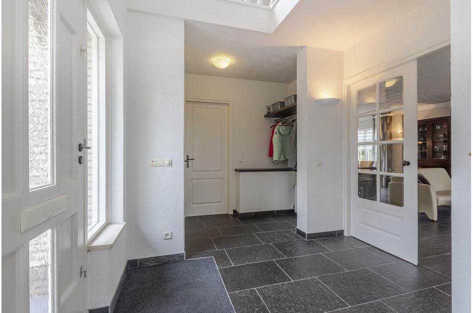 De villa is voorzien van een karakteristieke Belgisch leistenen dakbedekking, wat het geheel een luxe en tijdloze uitstraling geeft. De vrijstaande garage met bergzolder is multifunctioneel inzetbaar – denk aan werkruimte, hobbyruimte of extra opslag.