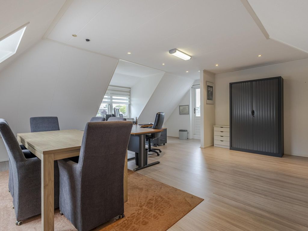 De woning zelf straalt klasse uit. Bij binnenkomst valt direct de royale, lichte hal met vide op – een uitnodigende binnenkomer. De ruime woonkamer is voorzien van een Noorse leistenen vloer met vloerverwarming, en dankzij de grote raampartijen is het hier heerlijk licht en open. Op de begane grond vindt u verder een ruime slaapkamer, een moderne badkamer, een luxe keuken én een praktische bijkeuken – ideaal voor gelijkvloers wonen of gastenverblijf.
