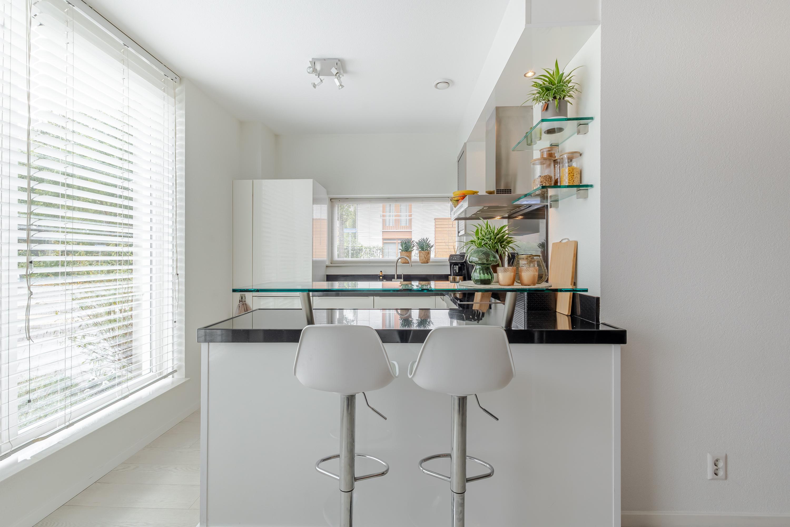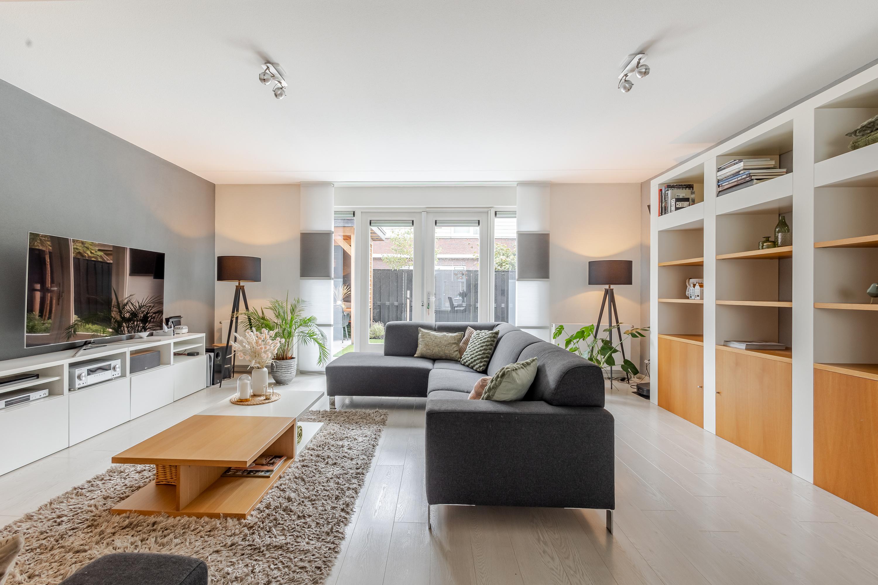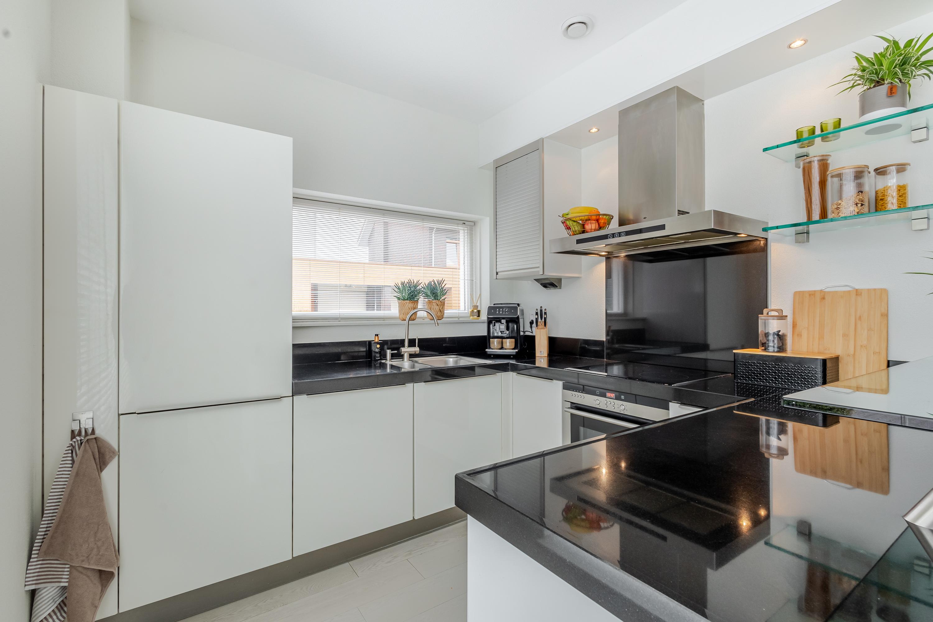 De begane grond biedt een ruime en praktische indeling met een open keuken die naadloos aansluit op de eet- en woonkamer. De woning is tijdens de bouw direct 2 meter uitgebouwd, wat zorgt voor extra leefruimte en een lichte, open sfeer. De tijdloze keuken is gelegen aan de voorzijde van de woning, is van alle gemakken voorzien en biedt genoeg ruimte voor een eetbar of een grote eettafel. De fikse raampartij zorgt voor heel veel lichtinval.