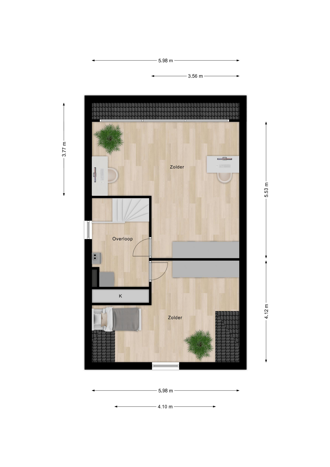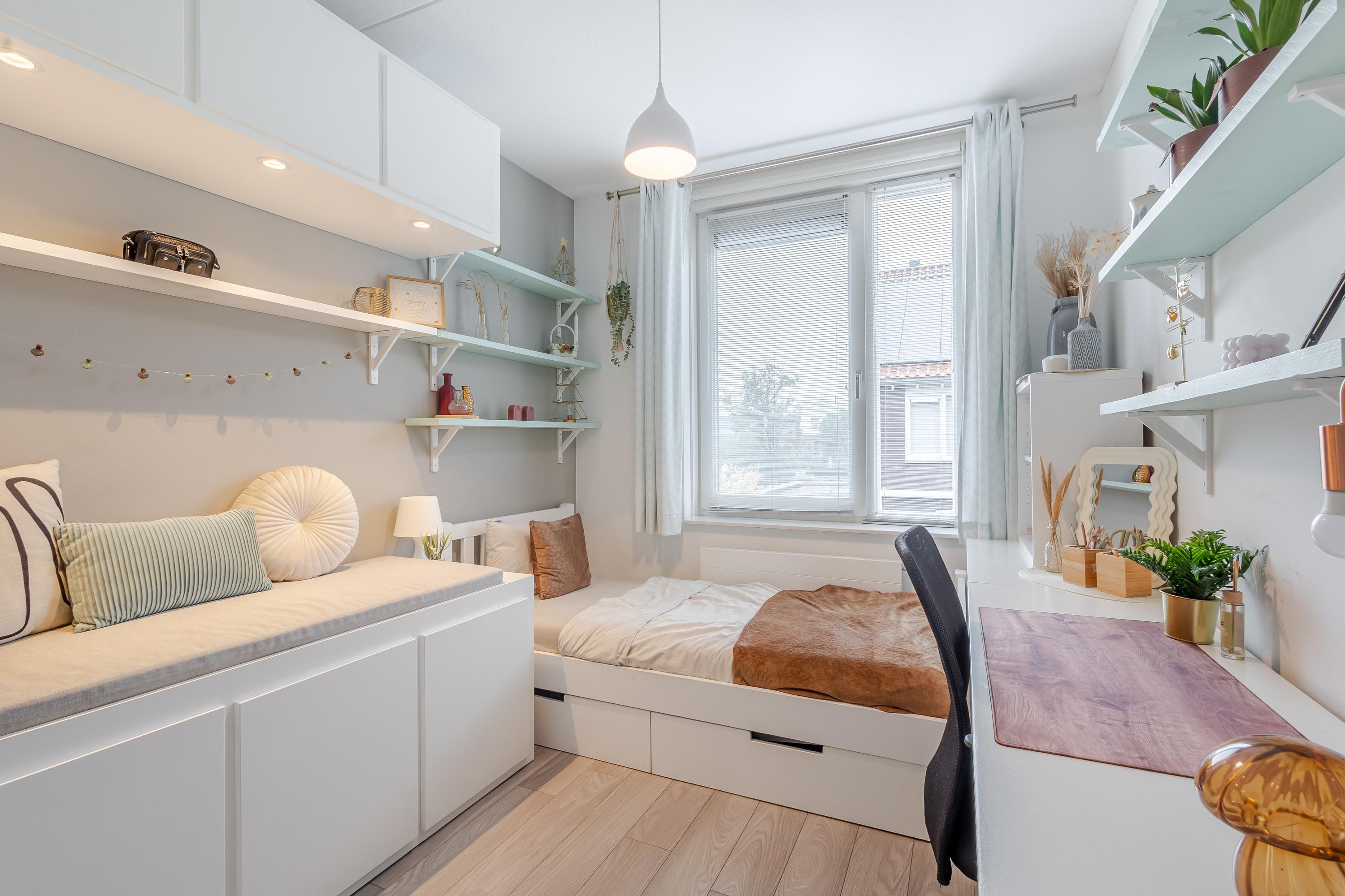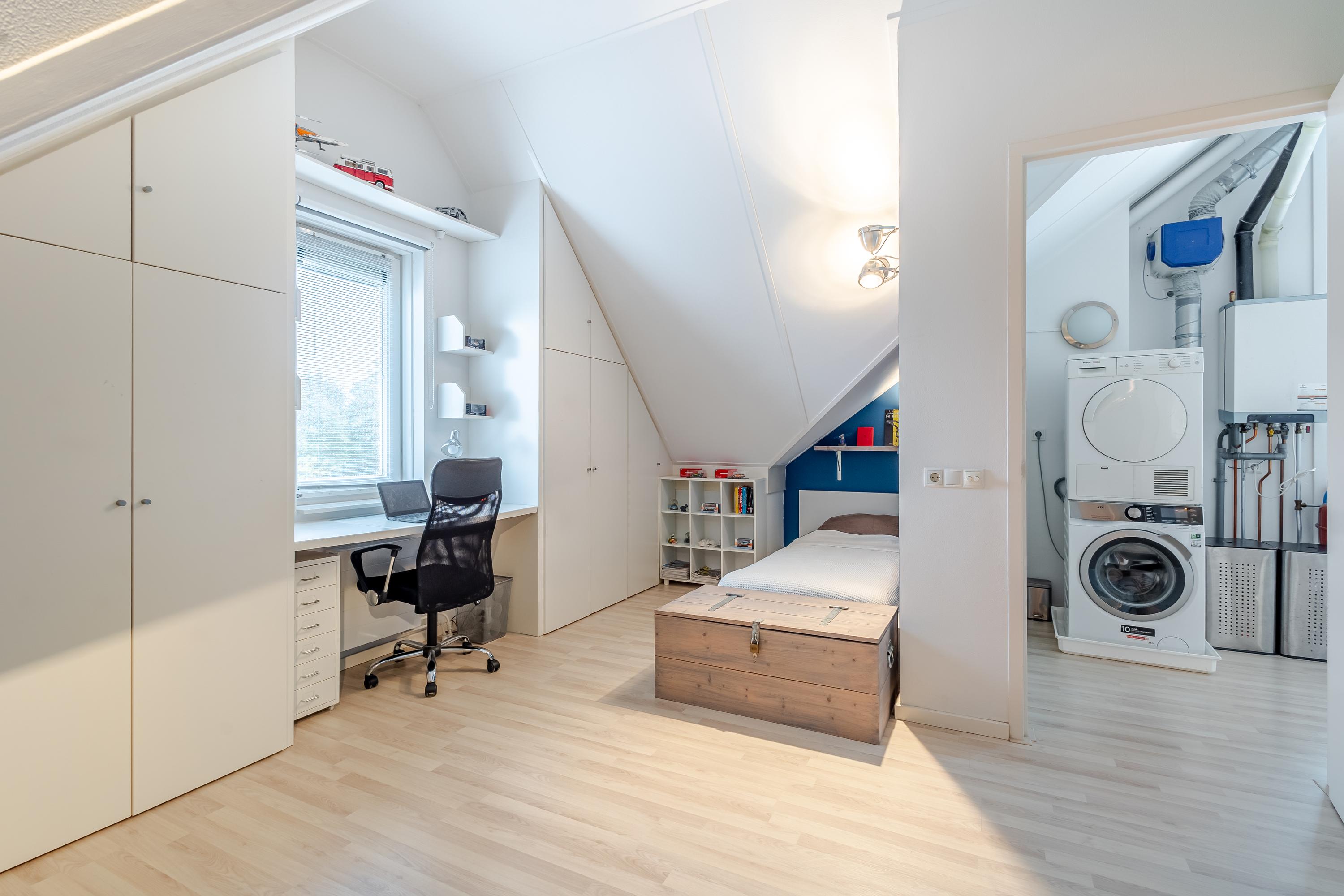 Op de tweede verdieping is er een nokhoog plafond, wat een extra gevoel van vrijheid en hoogte geeft. De ruime (voor)zolder is ideaal voor diverse doeleinden, zoals een kantoor, hobbyruimte of extra slaapkamer. Slaapkamer 4 ligt aan de voorzijde van de woning met een vaste kastenwand en een raampartij aan de straatzijde. De 5e (slaap)kamer aan de achterzijde is voorzien van een dakkapel en een vaste kastenwand die doorloopt tot in de nok van het dak. Dit biedt enorm veel (berg)ruimte en maakt deze kamer bijzonder praktisch.