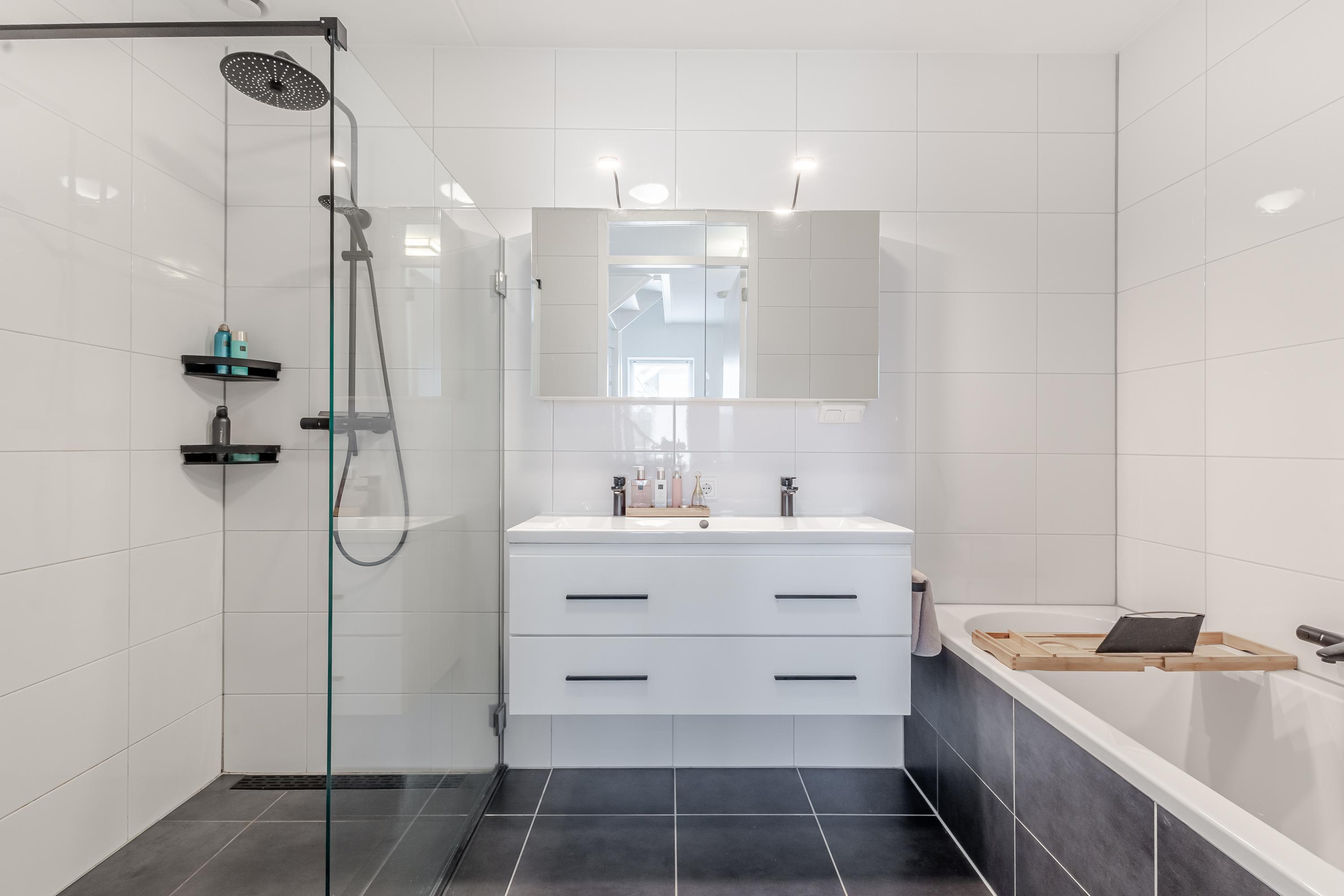 Op de eerste verdieping zijn drie ruime slaapkamers, een separaat toilet, en de badkamer. De masterbedroom heeft een slaapgedeelte en in een walk-in-closet. De badkamer is v.v. inloopdouche, ligbad en een dubbel wastafelmeubel.
