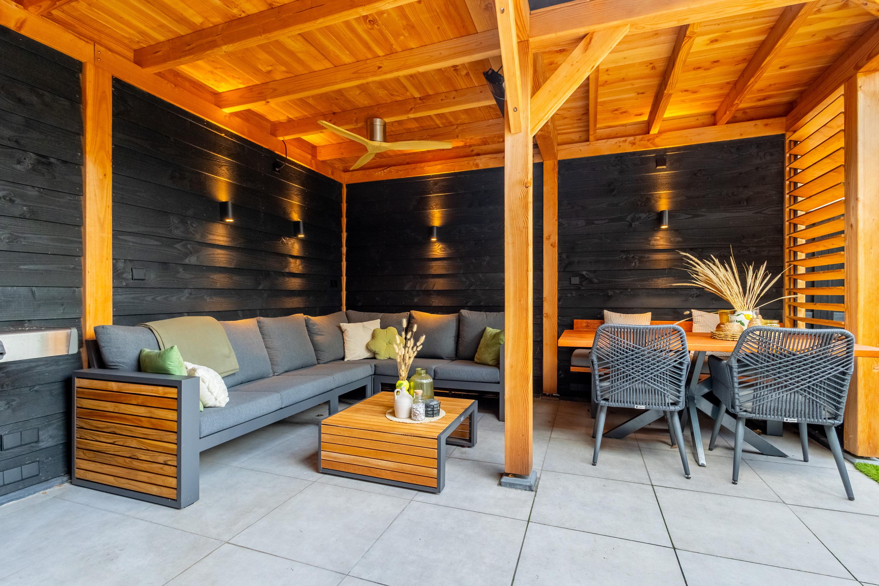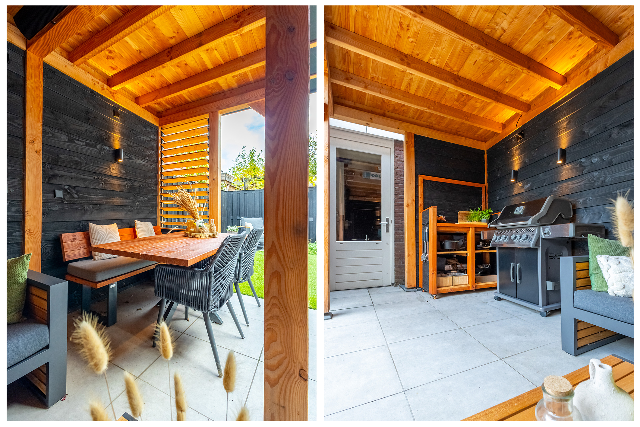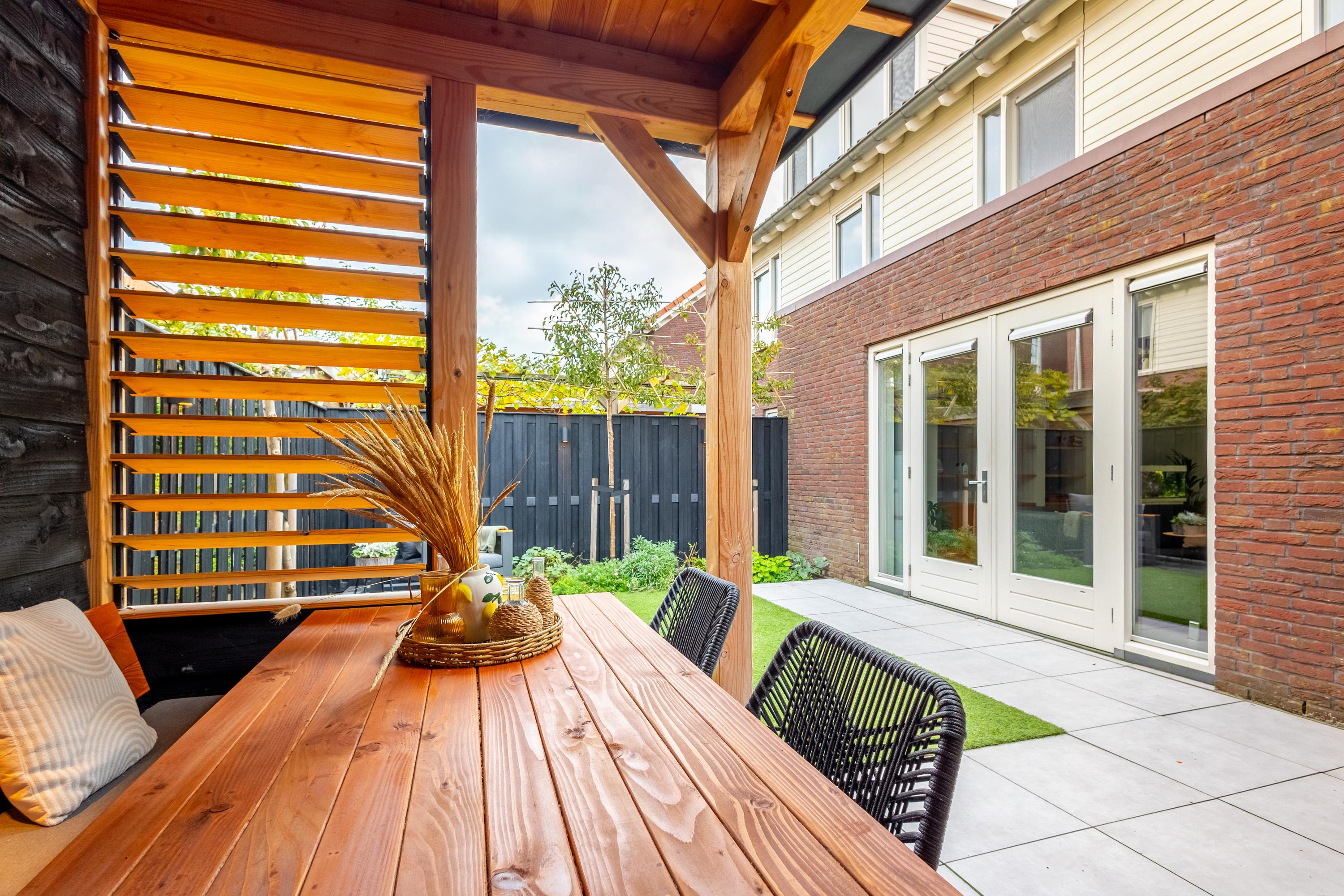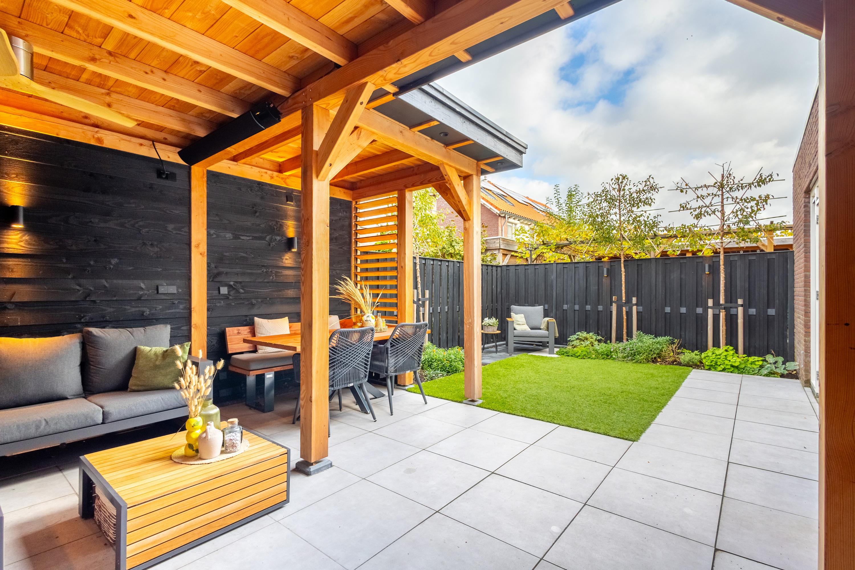 De woning beschikt over een garage, ideaal voor het parkeren van een auto of als extra opbergruimte. De tuin is een echte eyecatcher, met een overkapping die perfect geschikt is voor een buitenkeuken, lounge- en eetgedeelte. Deze overkapping zorgt ervoor dat je het hele jaar door van je tuin kunt genieten, of het nu voor een gezellige maaltijd of een ontspannen avond is.