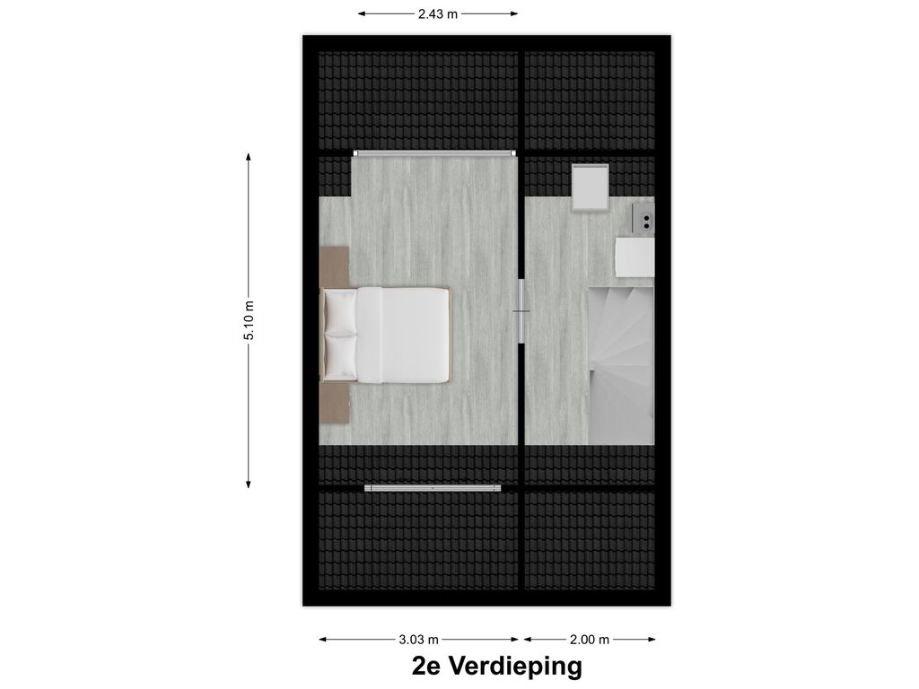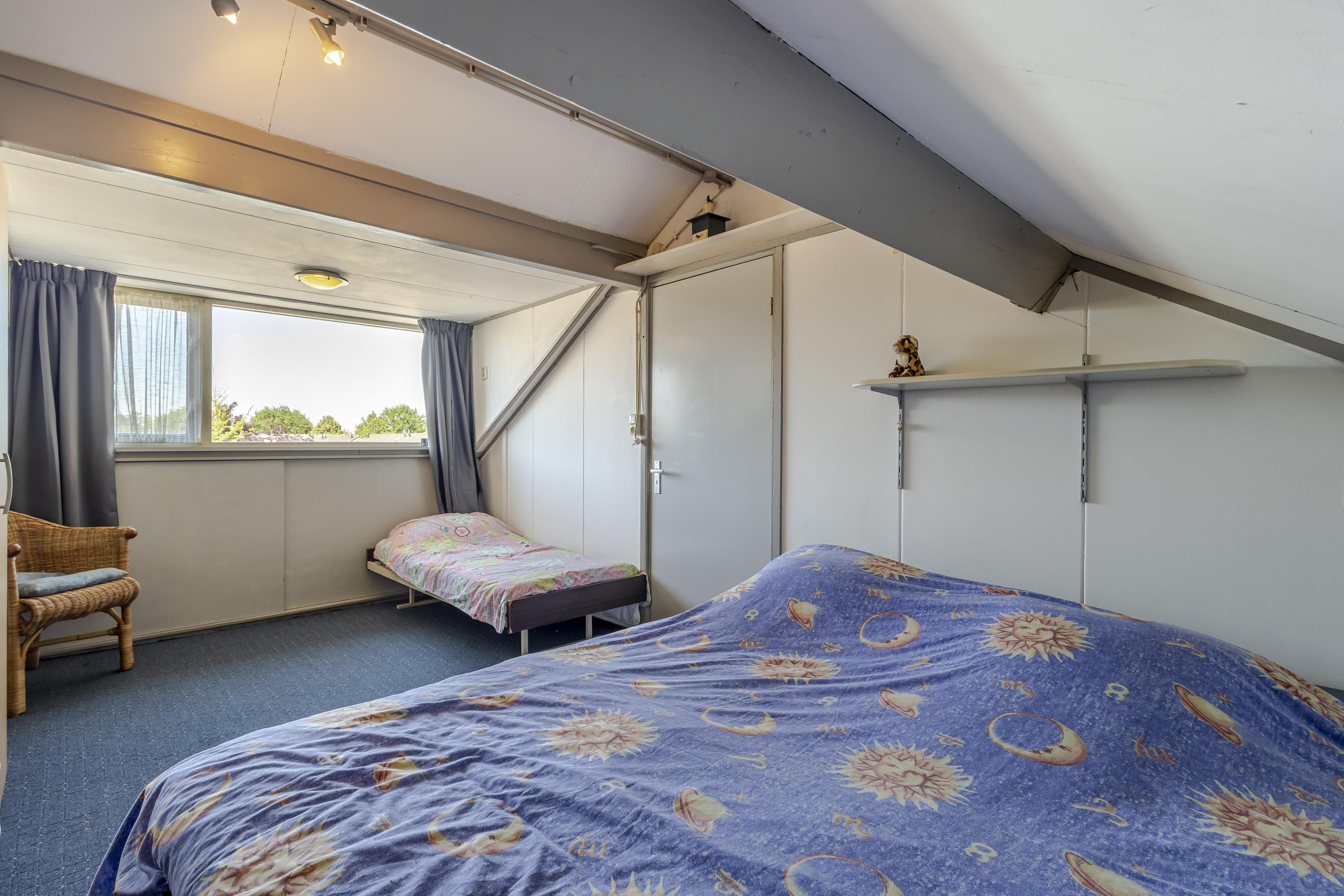 2e Verdieping: voorzolder, technische ruimte met de cv-opstelling en witgoedaansluitingen en toegang tot slaapkamer 4. Deze slaapkamer is middels een dakkapel aan de achterzijde vergroot en is v.v. bergruimte achter knieschotten.