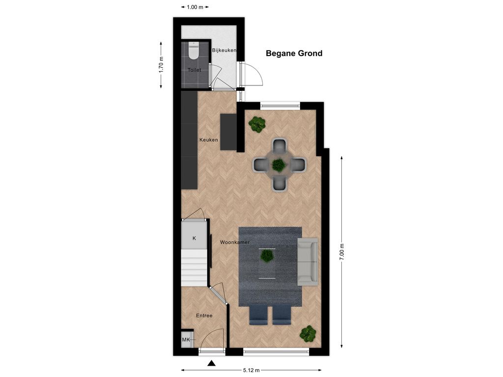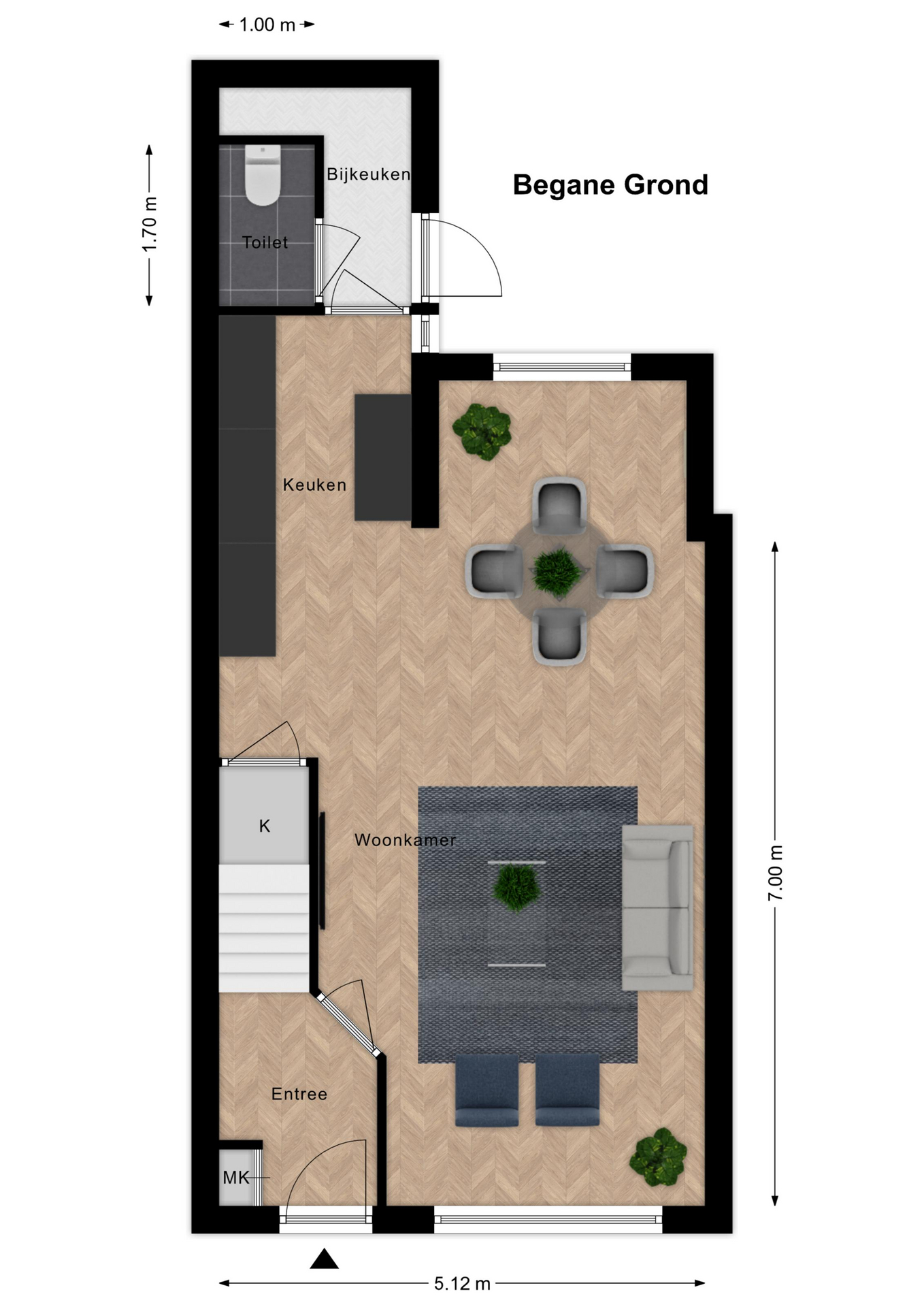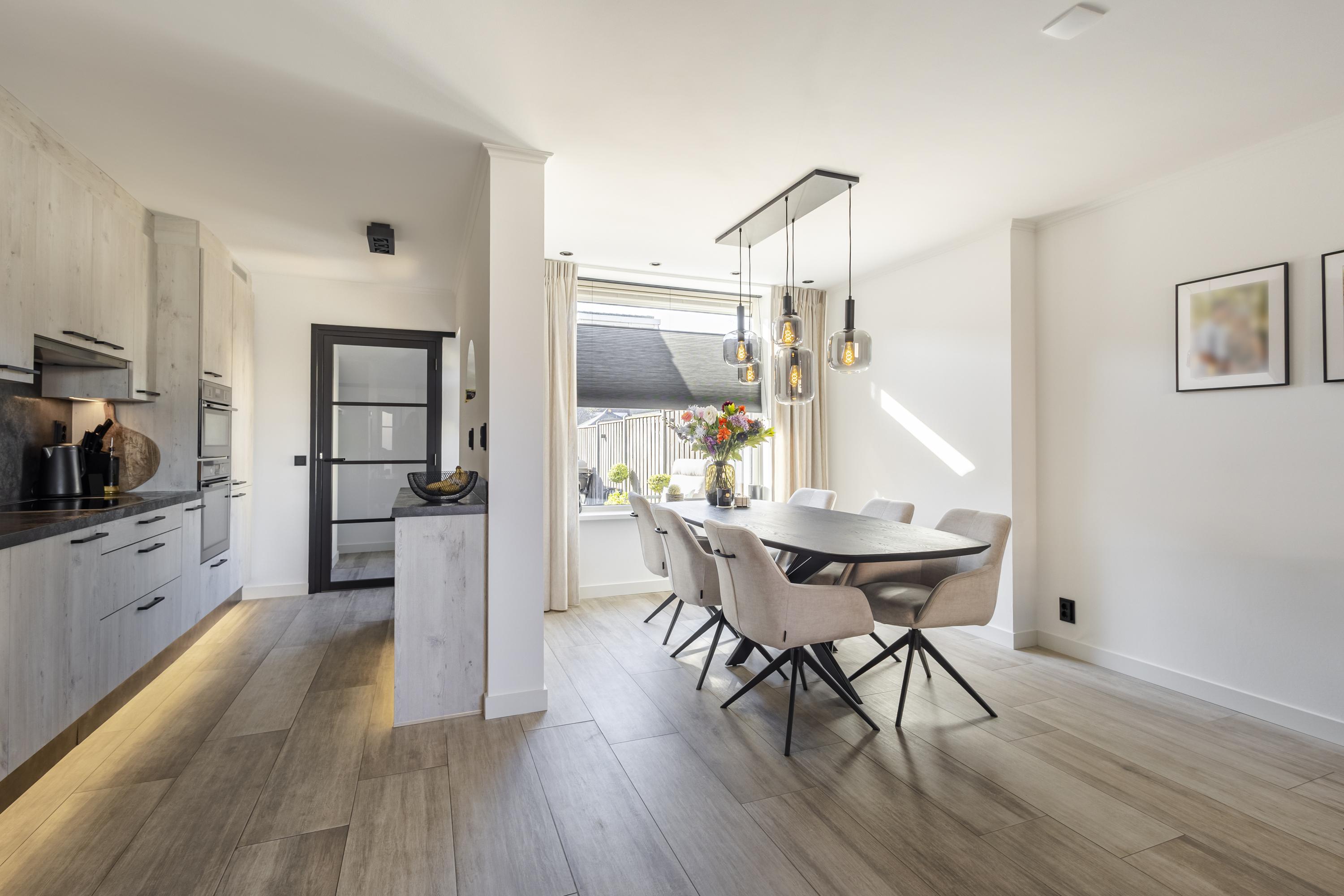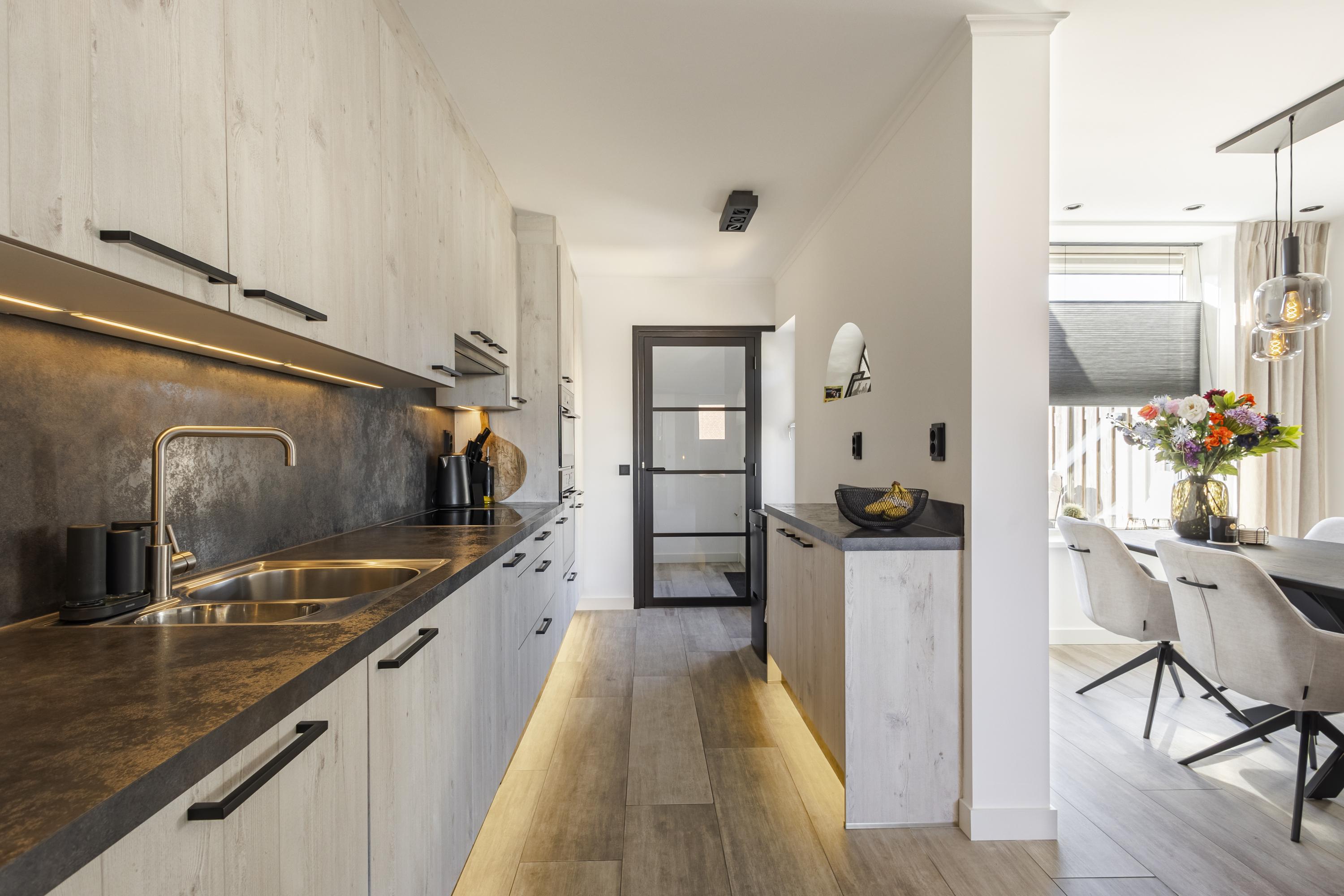 Je komt binnen in de hal met meterkast en trapopgang, waarna de woning zich opent naar een lichte, uitgebouwde woonkamer. De vloerverwarming zorgt voor extra comfort en de open keuken sluit hier naadloos op aan. Met de strakke, rechte opstelling en diverse inbouwapparatuur is dit een fijne plek om te koken én te leven.