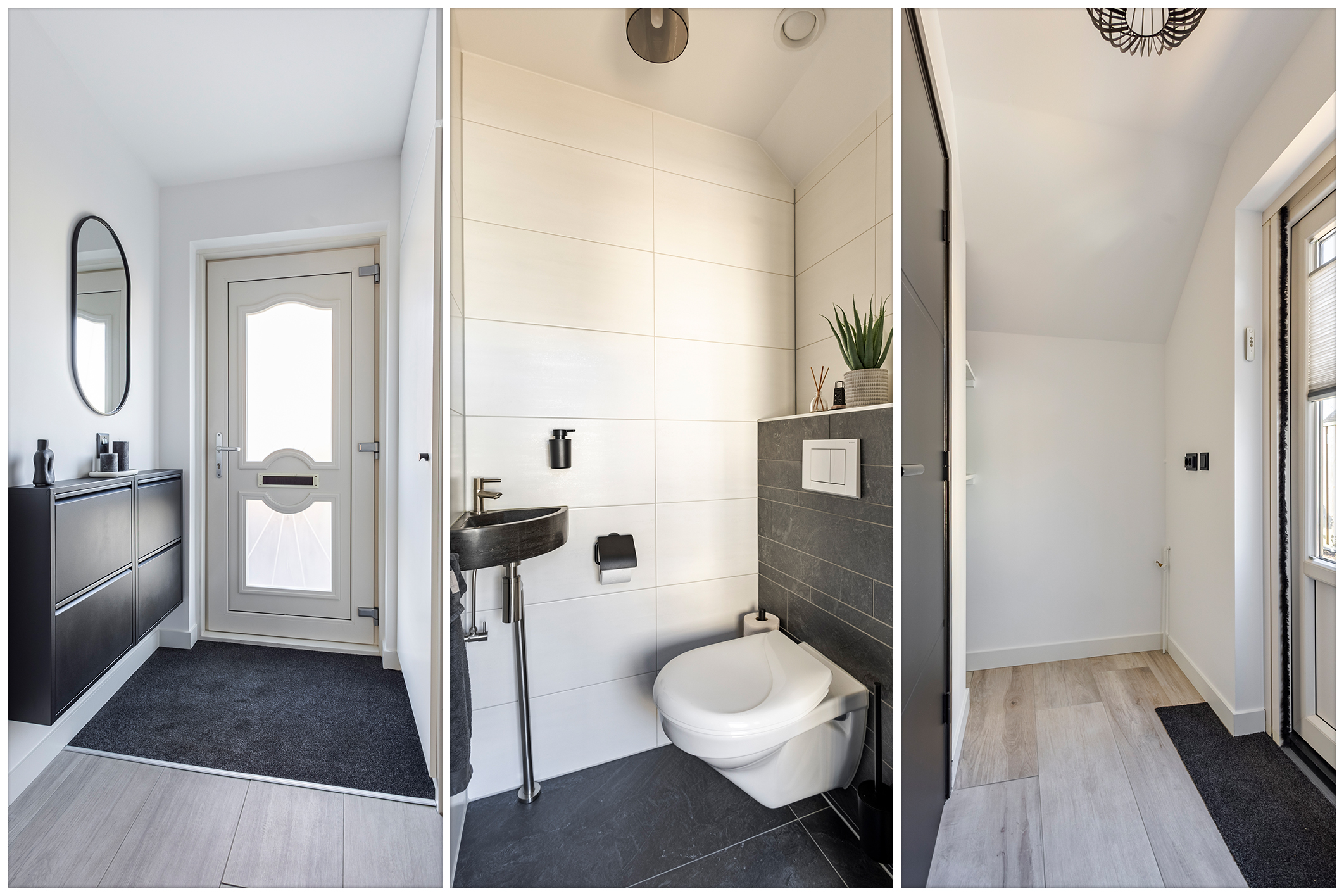 Via het achterportaal, met toilet en praktische kastruimte, bereik je de tuin.