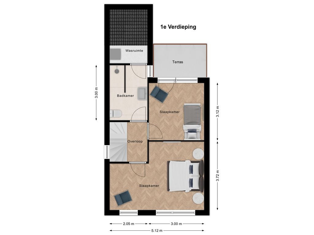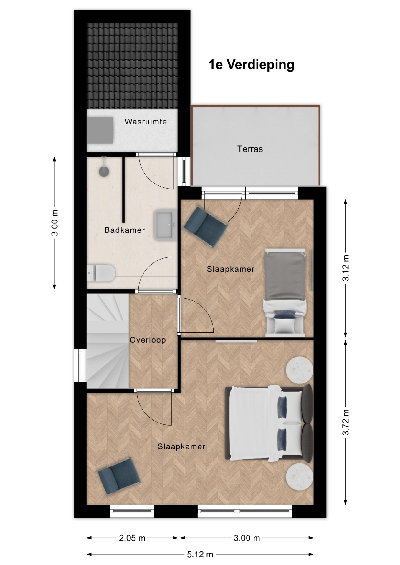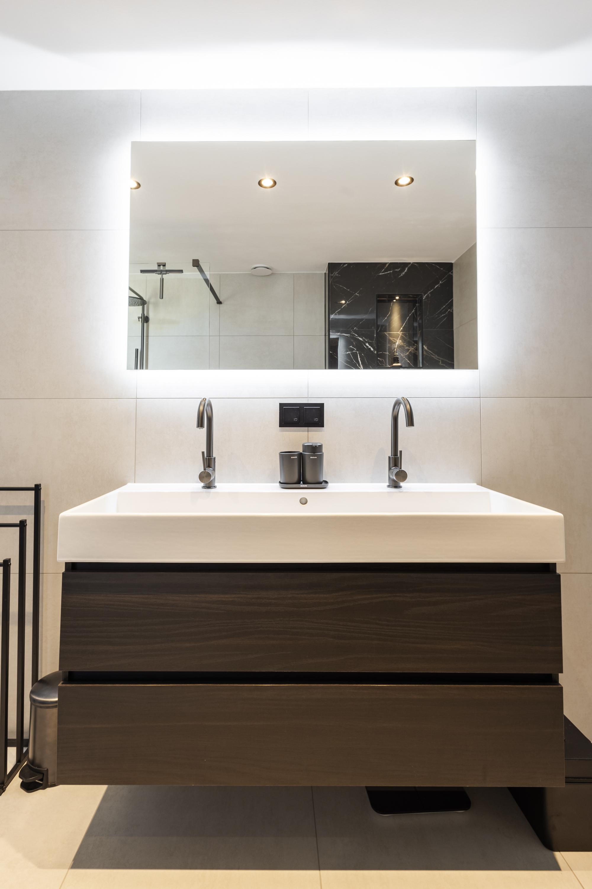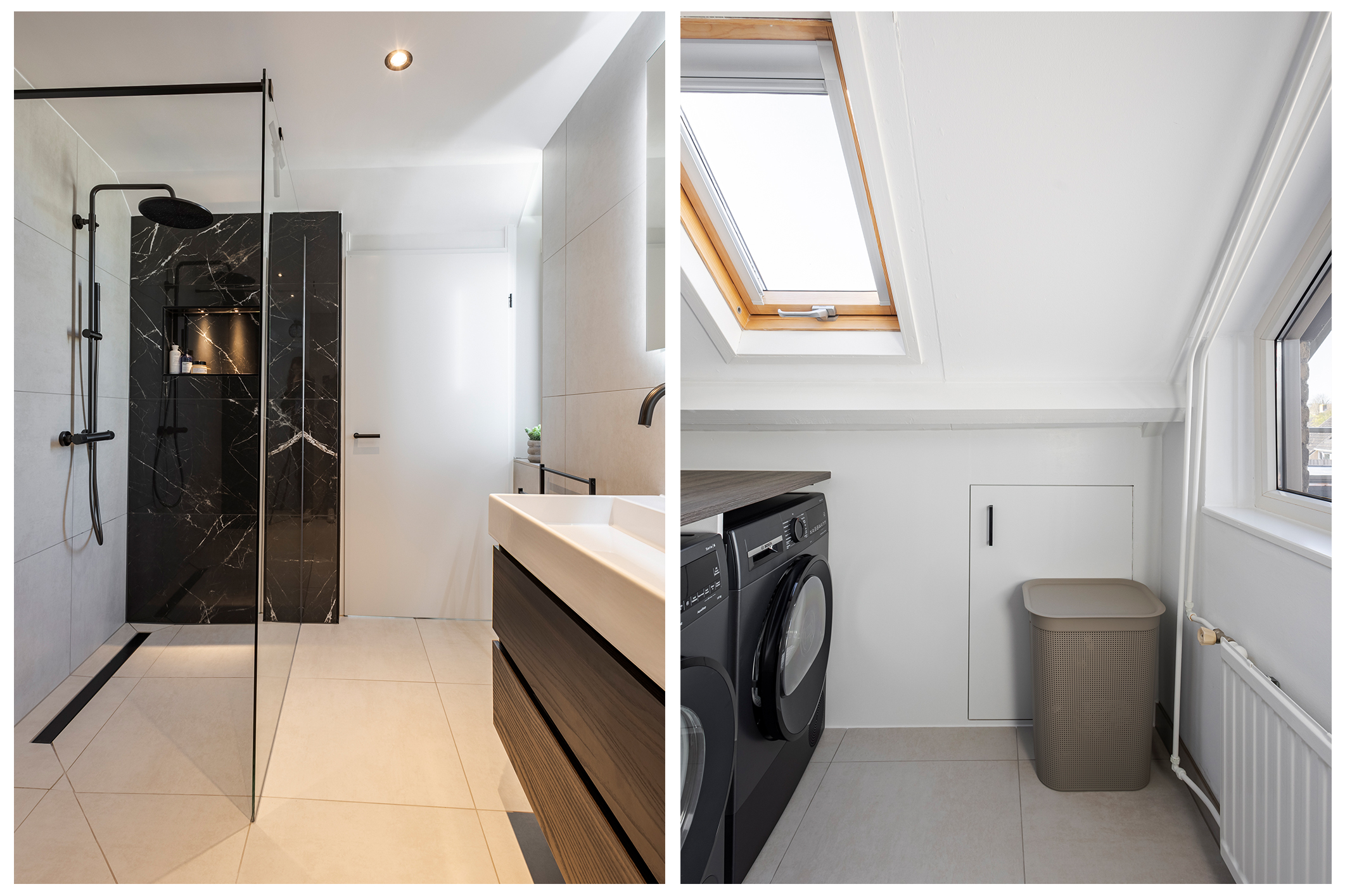 Hier vind je twee royale slaapkamers (voorheen drie) en een moderne, recent vernieuwde badkamer met een luxe uitstraling. Denk aan een ruime inloopdouche, dubbel wastafelmeubel, tweede toilet en elektrische vloerverwarming. Aansluitend is de praktische wasruimte met witgoedaansluitingen.