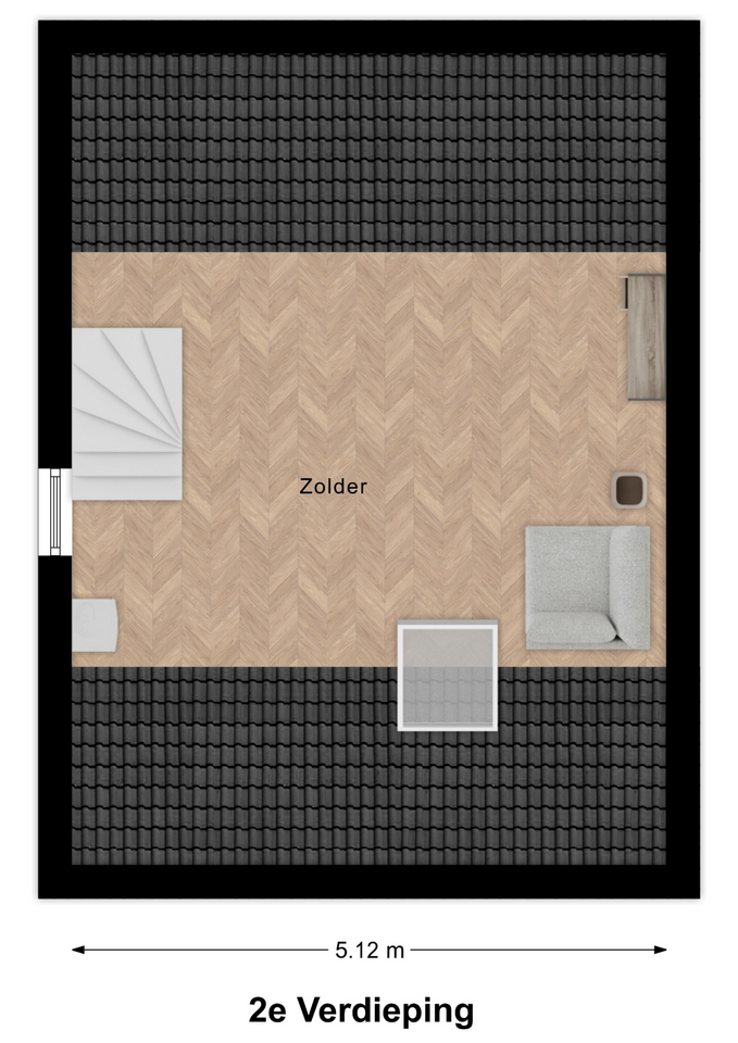 De open zolder met dakvensters biedt volop mogelijkheden. Of je nu een extra slaapkamer, werkplek of hobbyruimte wilt creëren: hier kan het. De technische installaties, waaronder de cv-ketel, mechanische ventilatie en pv-omvormer, zijn ook hier te vinden.