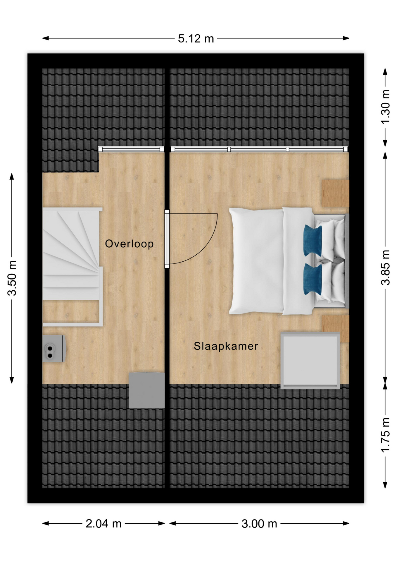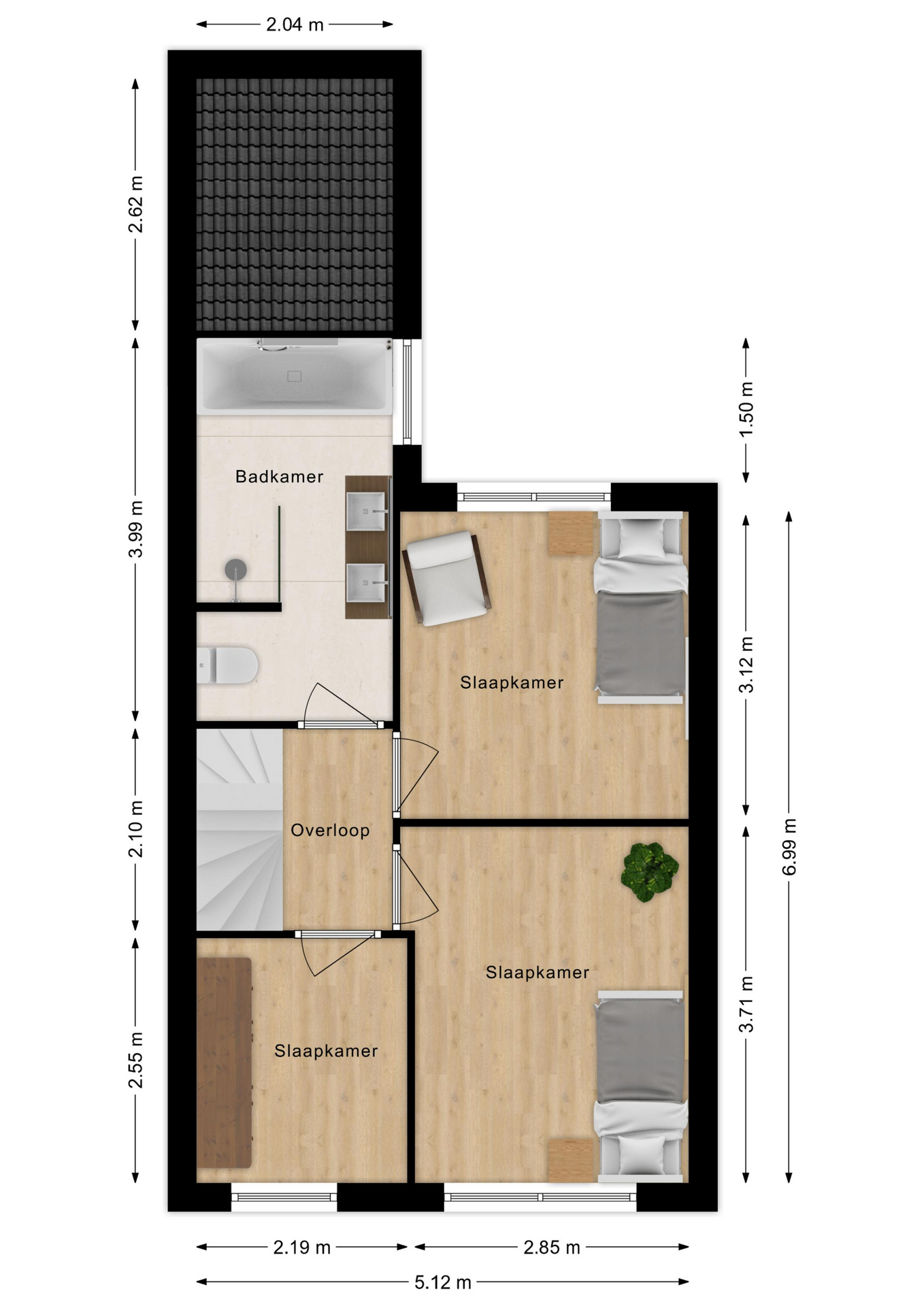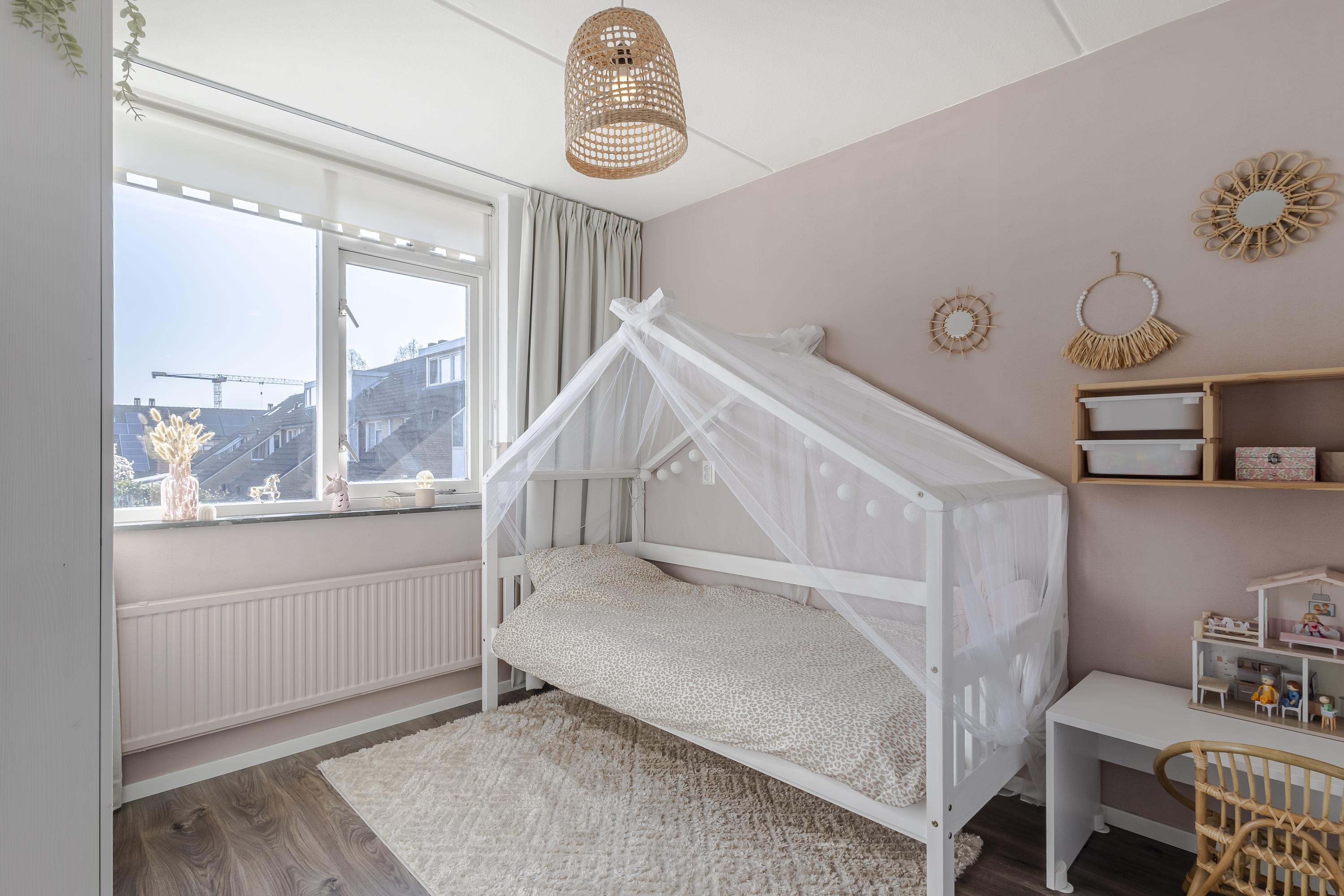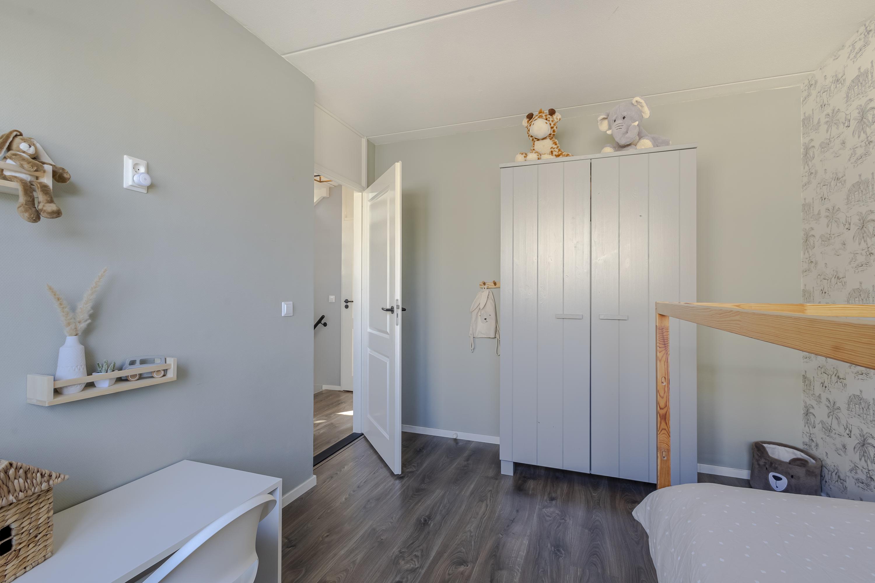 De 2e verdieping is grondig aangepakt en voorzien van de ouderslaapkamer. Deze slaapkamer is keurig afgetimmerd met rondom kast-/bergruimte. Op de overloop zijn de aansluitingen voor het witgoed en de cv-ketel geplaatst. Aan de achterzijde is een dakkapel geplaatst voor extra licht en ruimte.