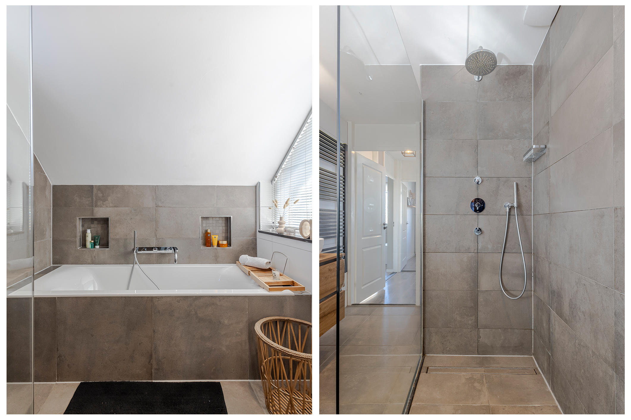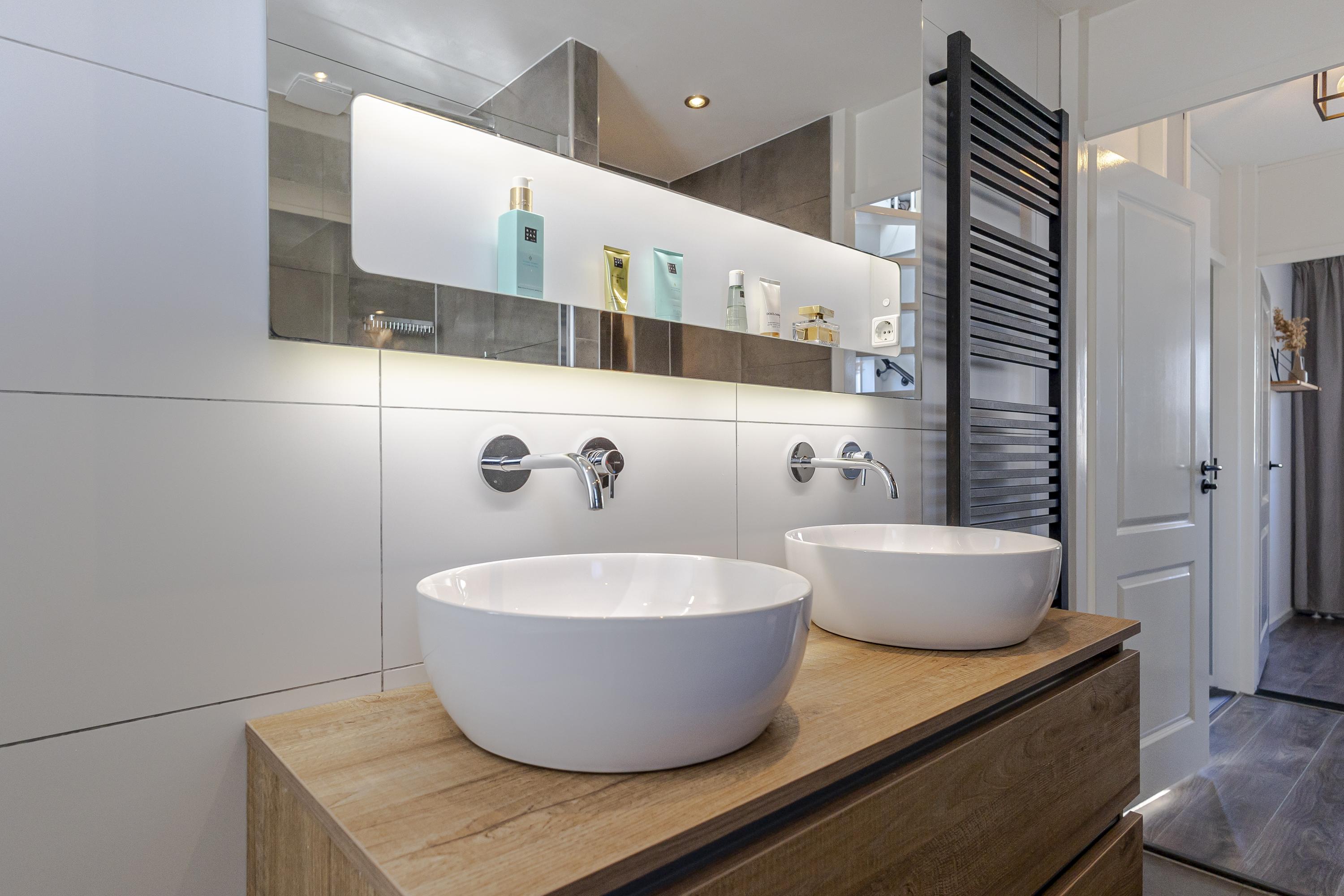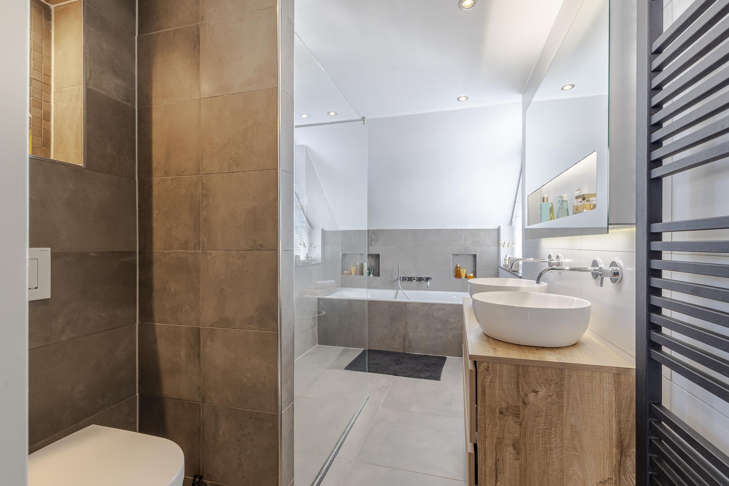 Op de 1e verdieping vinden we 3 slaapkamers en de complete badkamer met douchegelegenheid, dubbel wastafelmeubel, een ligbad en een 2e toilet.