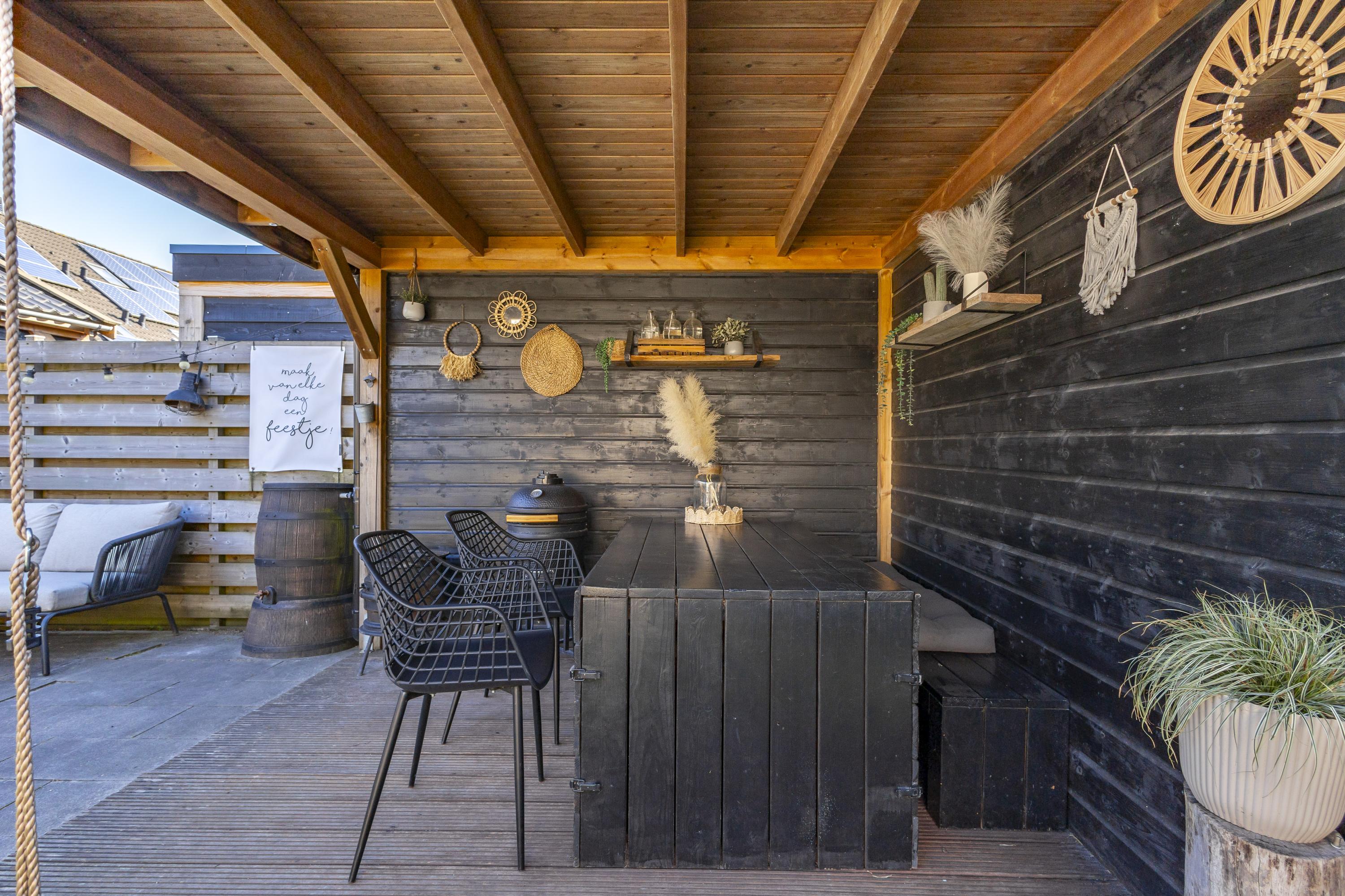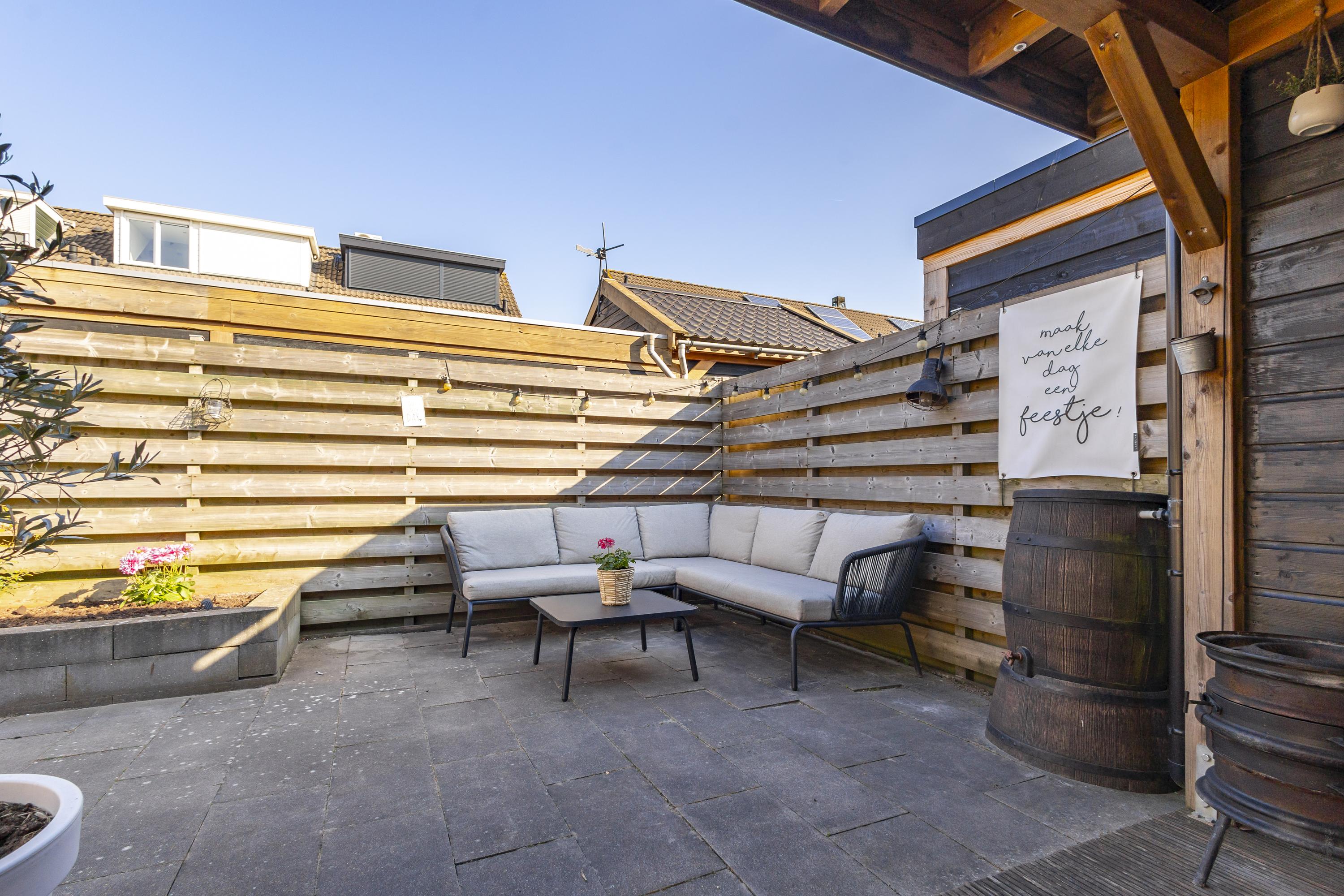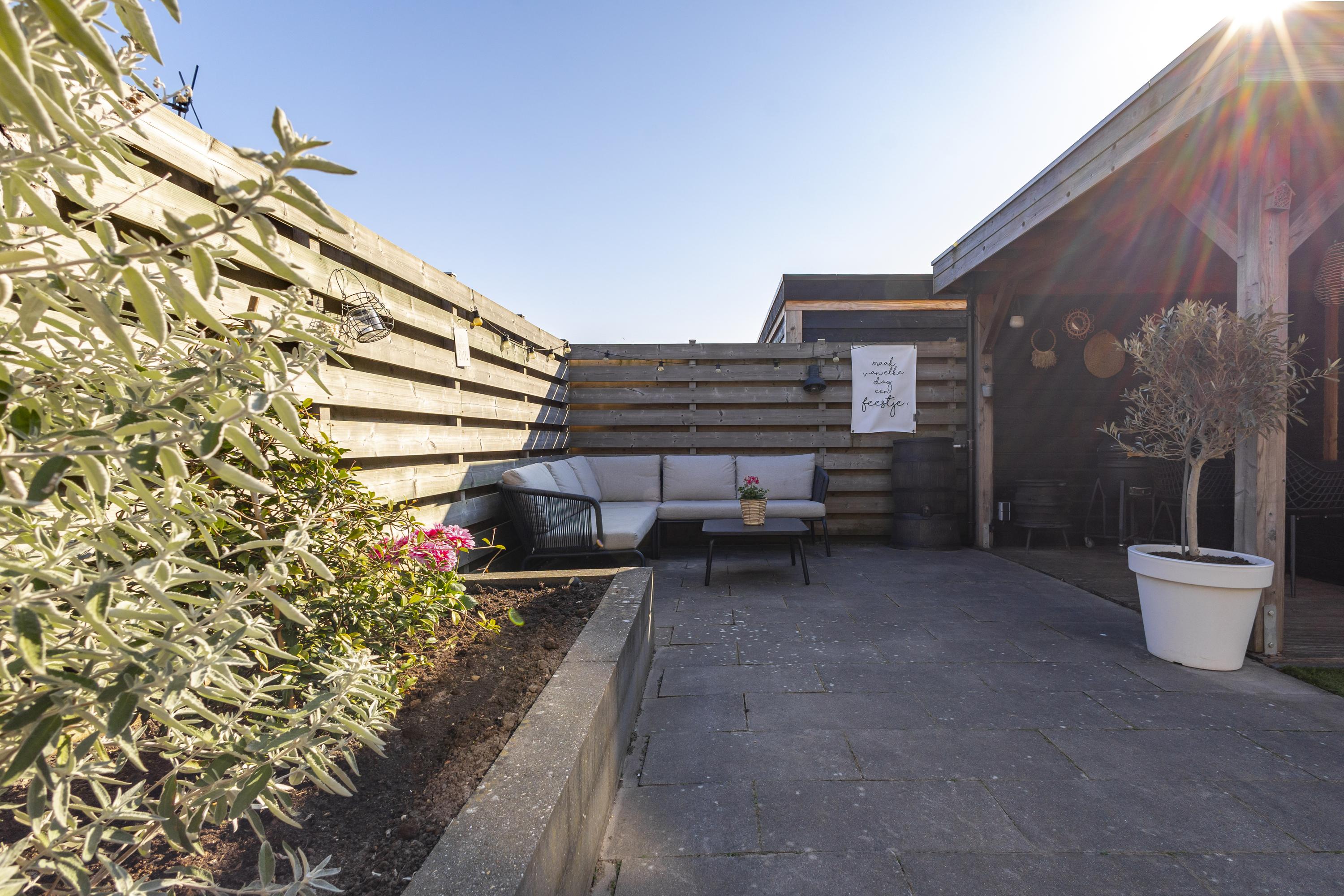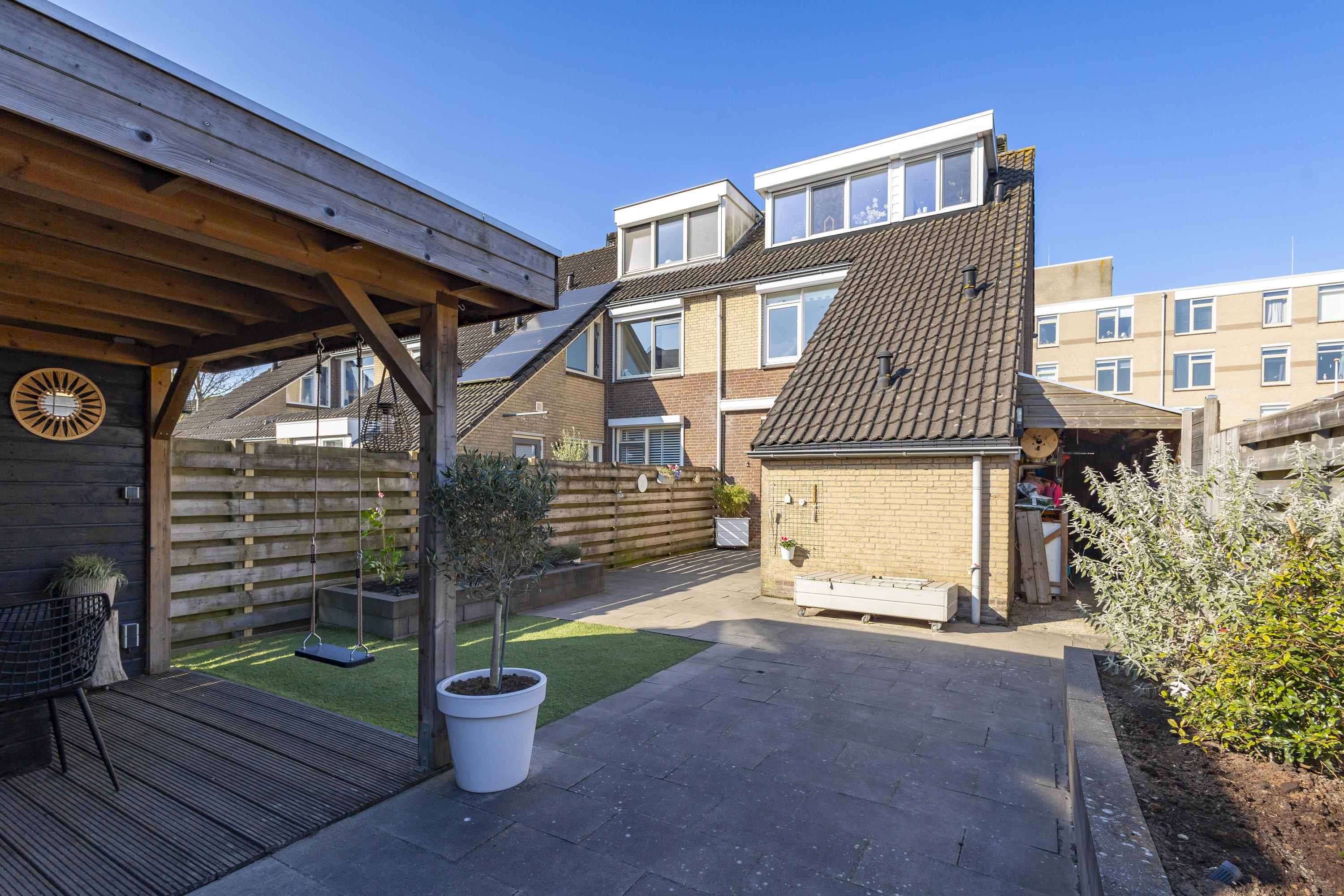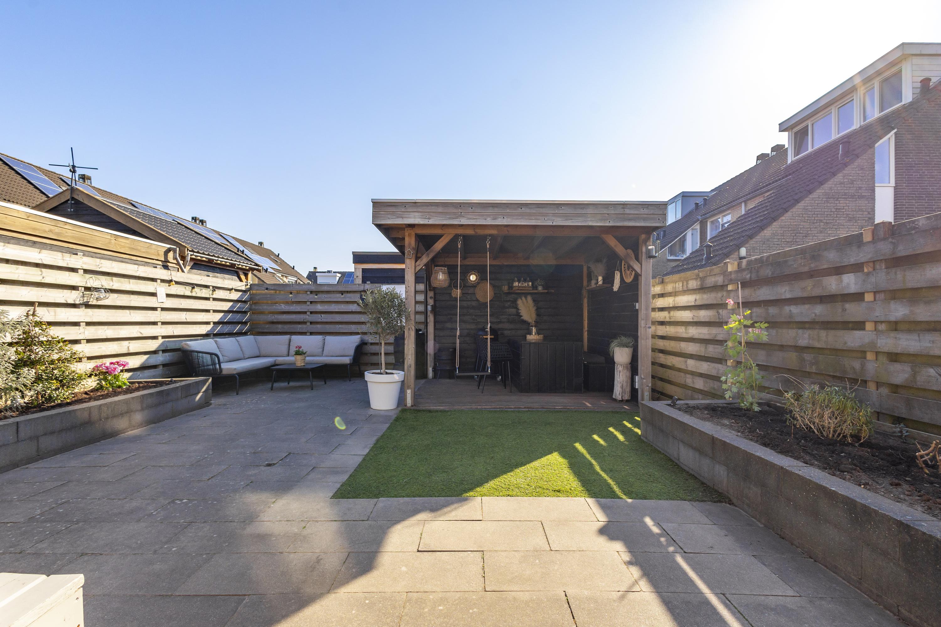 De stenen berging is aangebouwd en sluit naadloos aan op de achteringang. In de verzorgde achtertuin met een overkapping en lounge-gedeelte is het heerlijk genieten geblazen. Naast de woning is nog extra berg- of speelruimte. De meterkast is gemoderniseerd en er liggen maar liefst 8 zonnepanelen op het dak. Wedden dat je na afloop van de bezichtiging gaat roepen…..WOWWWW.