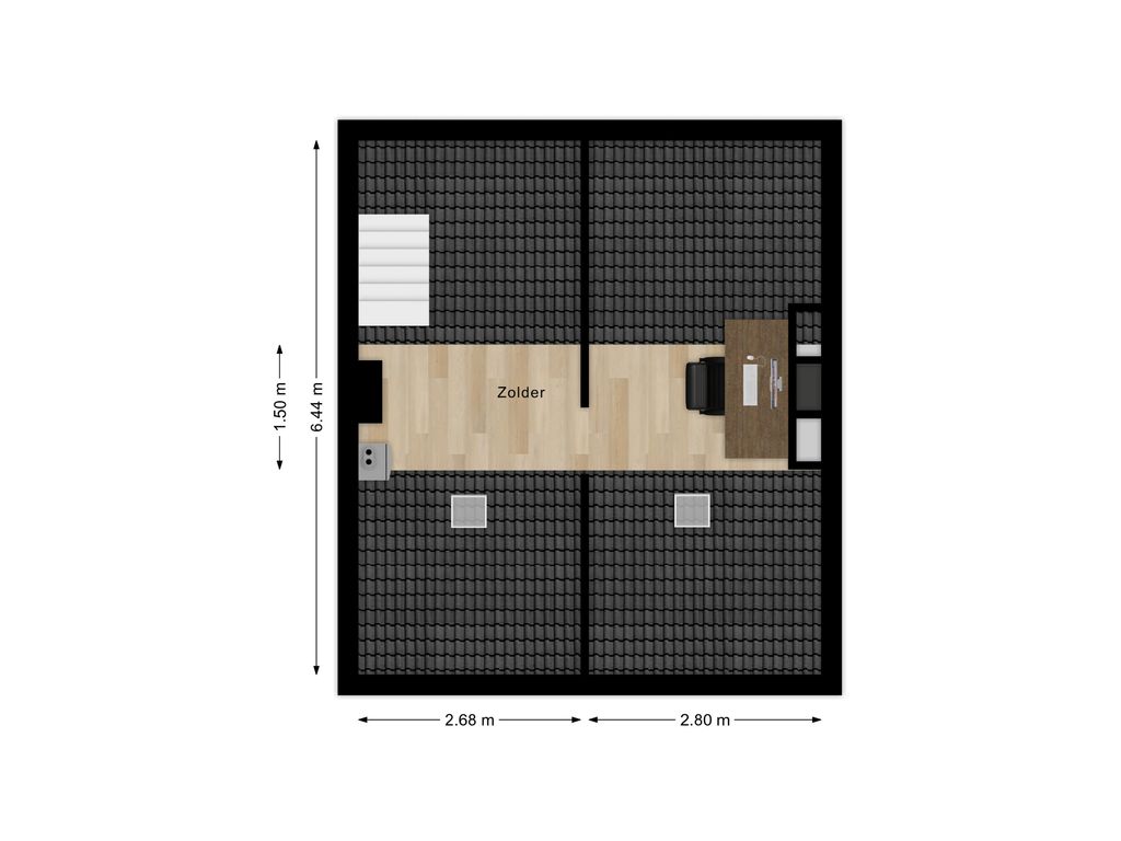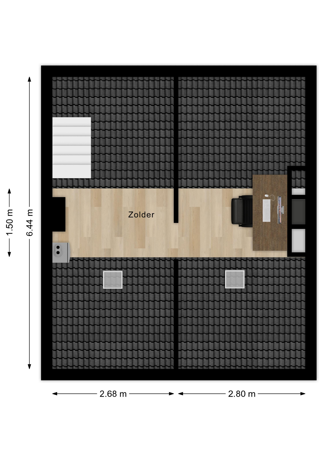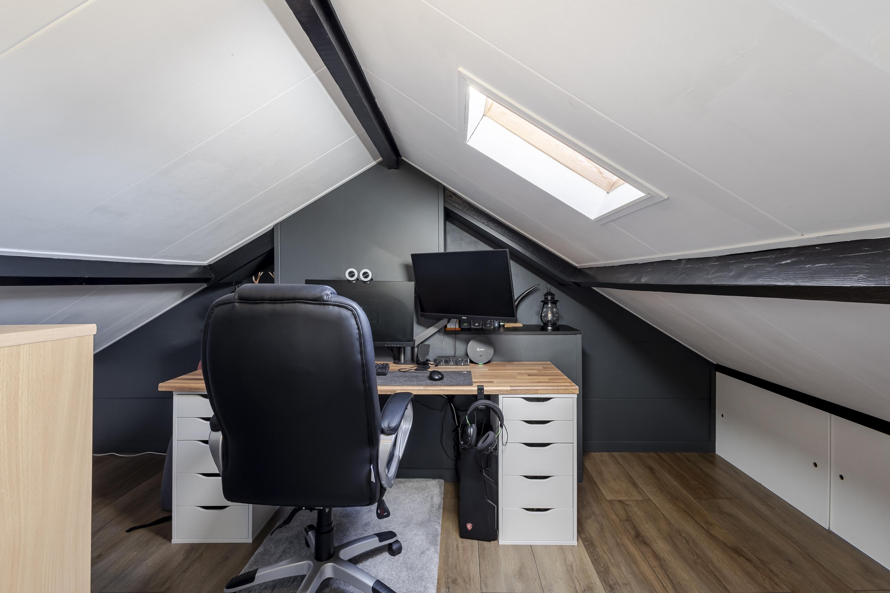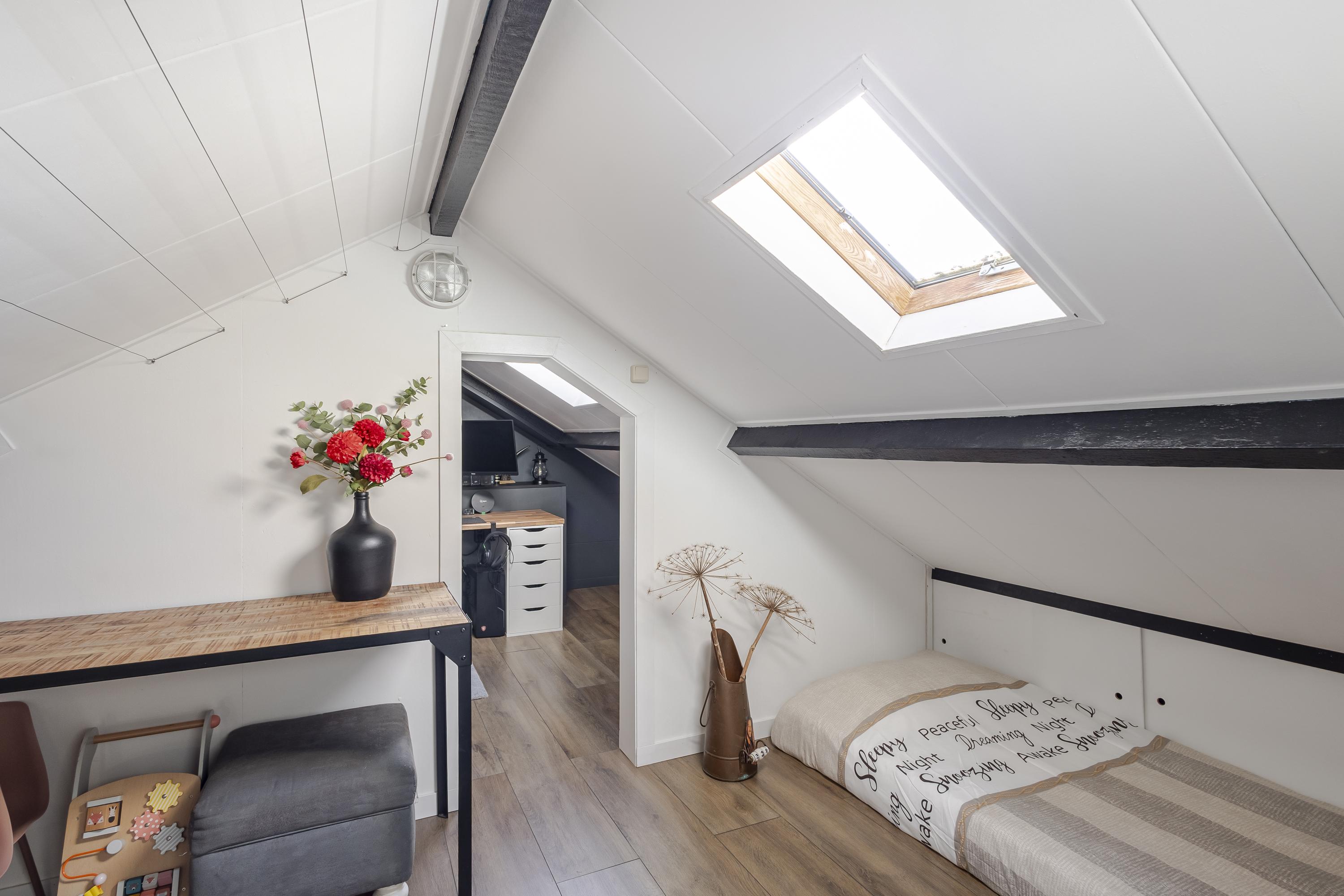 Ook de tweede verdieping is bereikbaar via een vaste trap. Met een nokhoogte van 1,86 meter en twee dakramen is deze etage verrassend licht en goed bruikbaar als speelkamer, werkkamer of creatieve hobbyruimte.