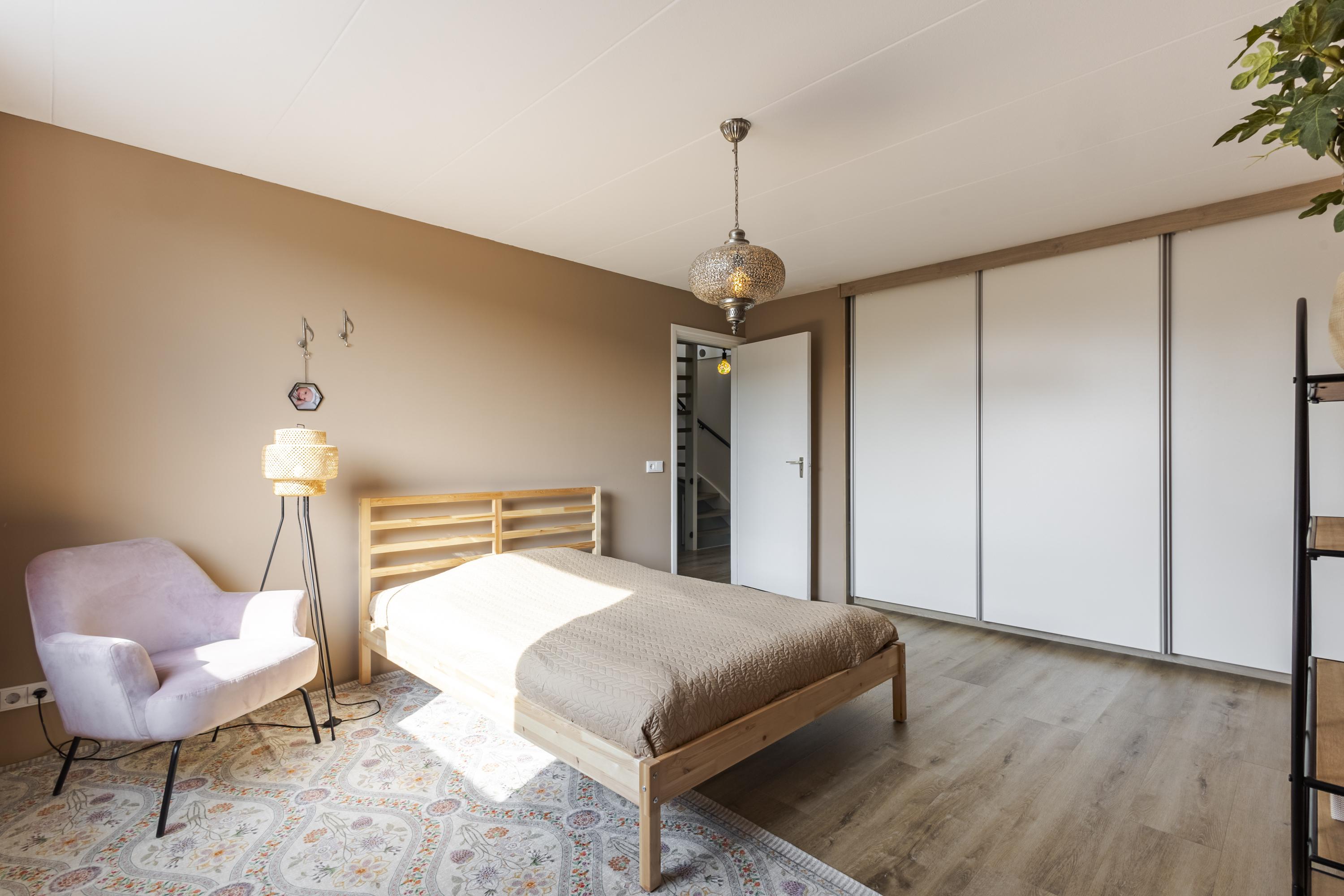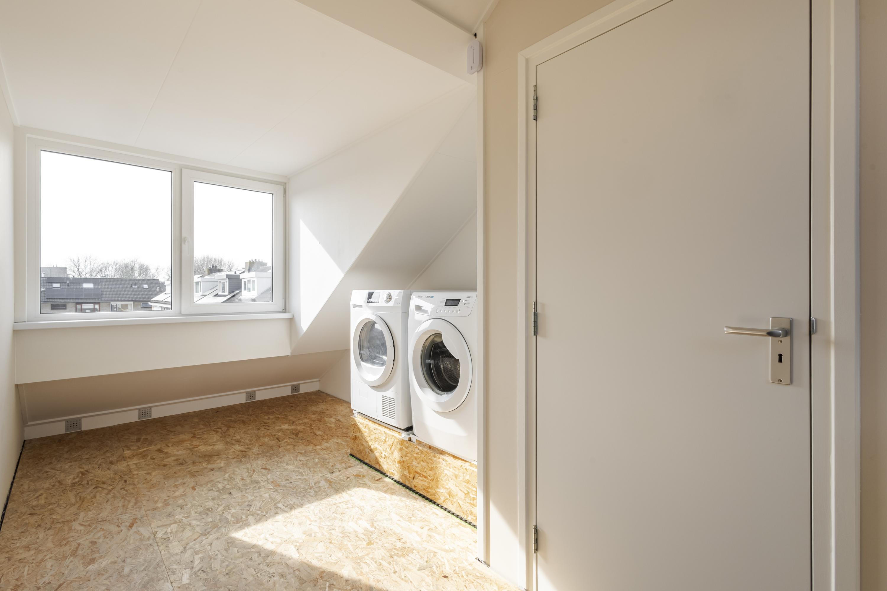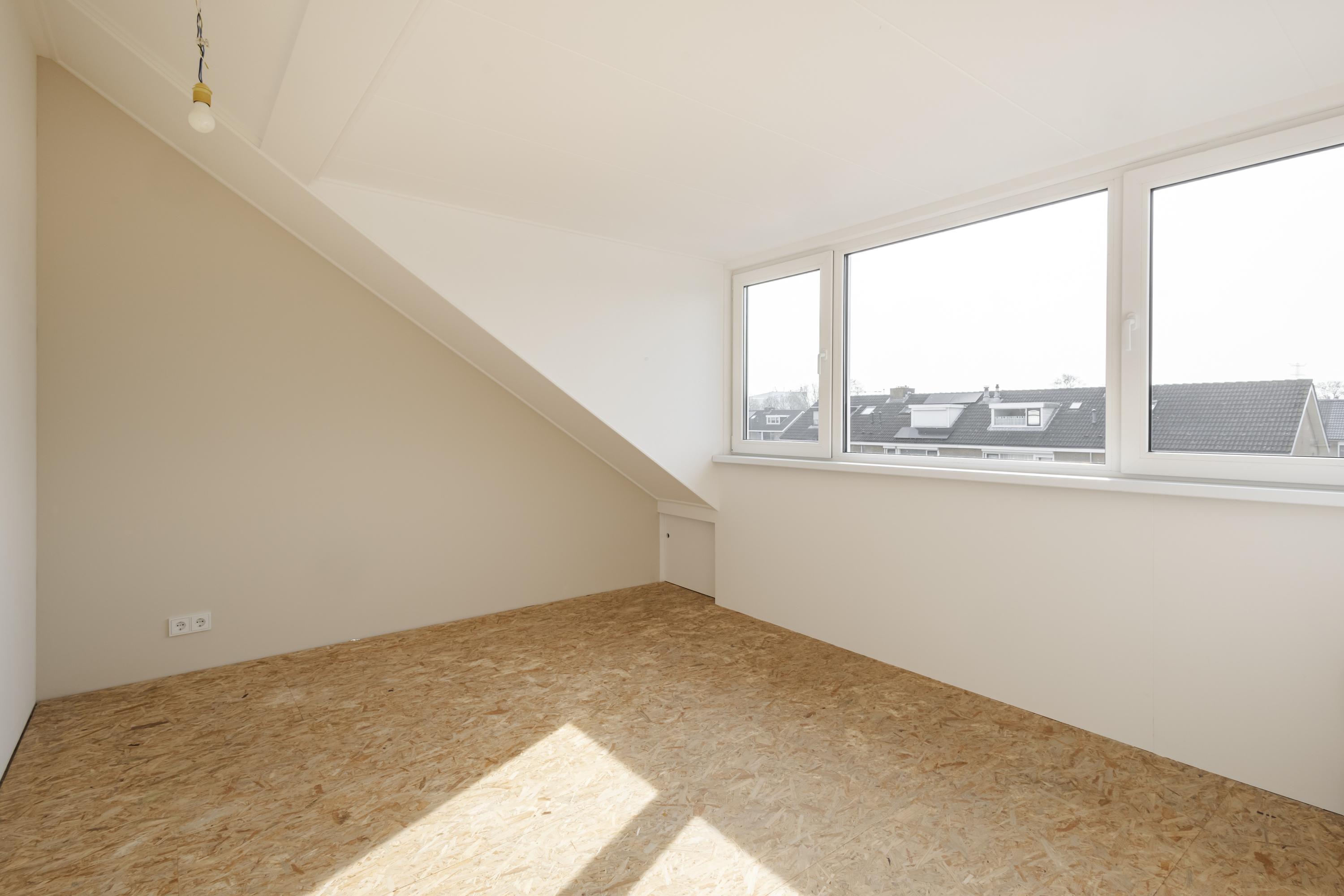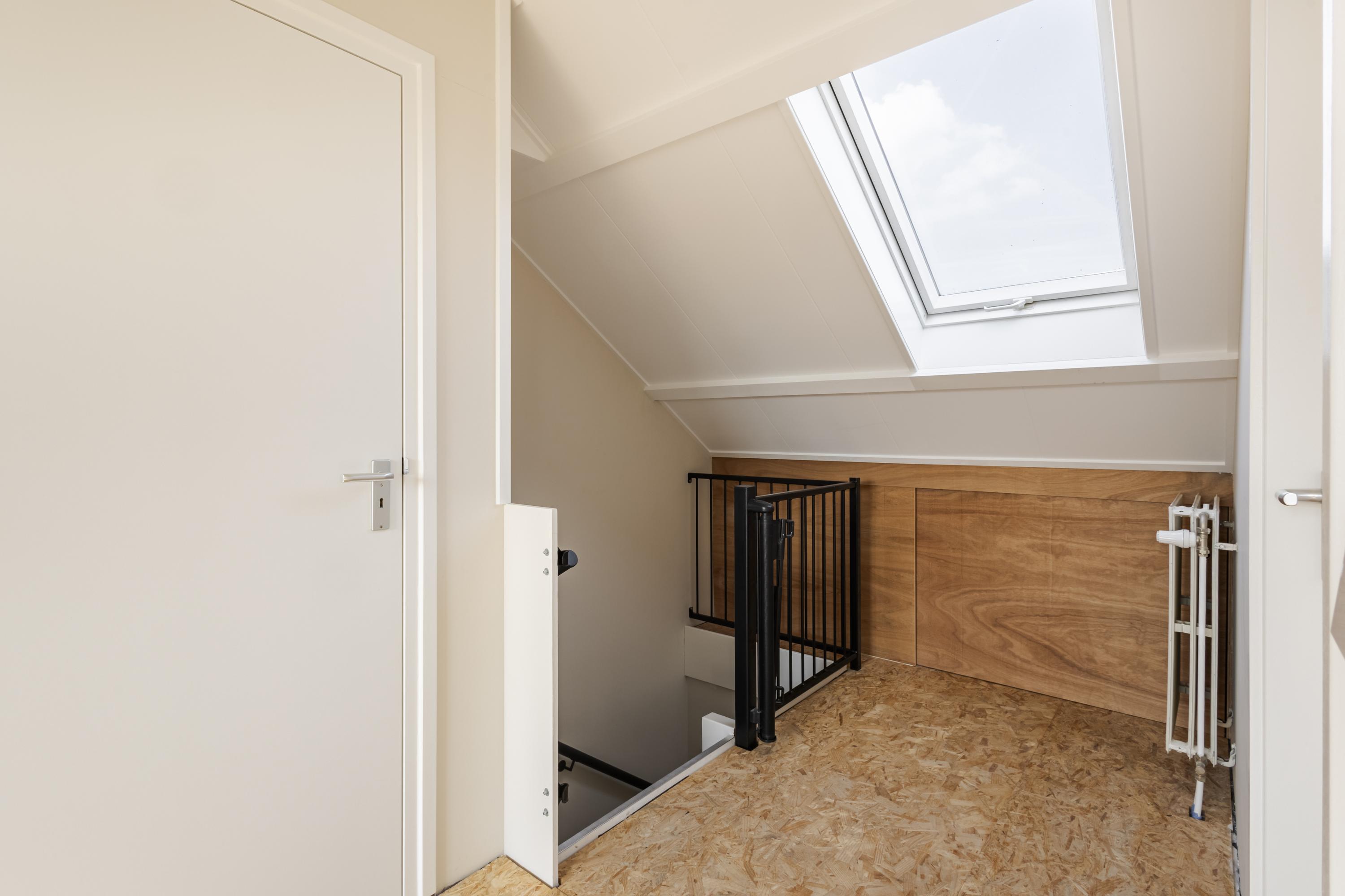 Op de tweede verdieping vind je een ruime overloop met witgoedopstelling. De grote dakkapel aan de achterzijde zorgt voor veel licht en extra ruimte, zowel op de overloop als in de slaapkamer. De extra kamer aan de voorzijde is met het plaatsen van een dakraam eenvoudig om te toveren tot een volwaardige slaapkamer.